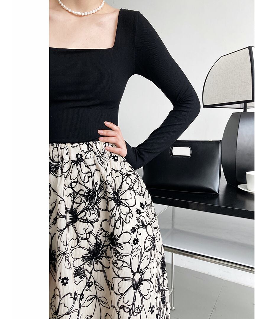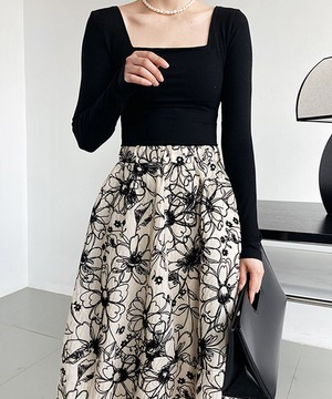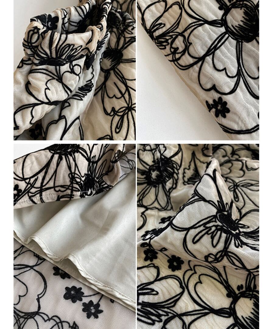 フローラル刺しゅうAラインフレアスカート【s-60308】