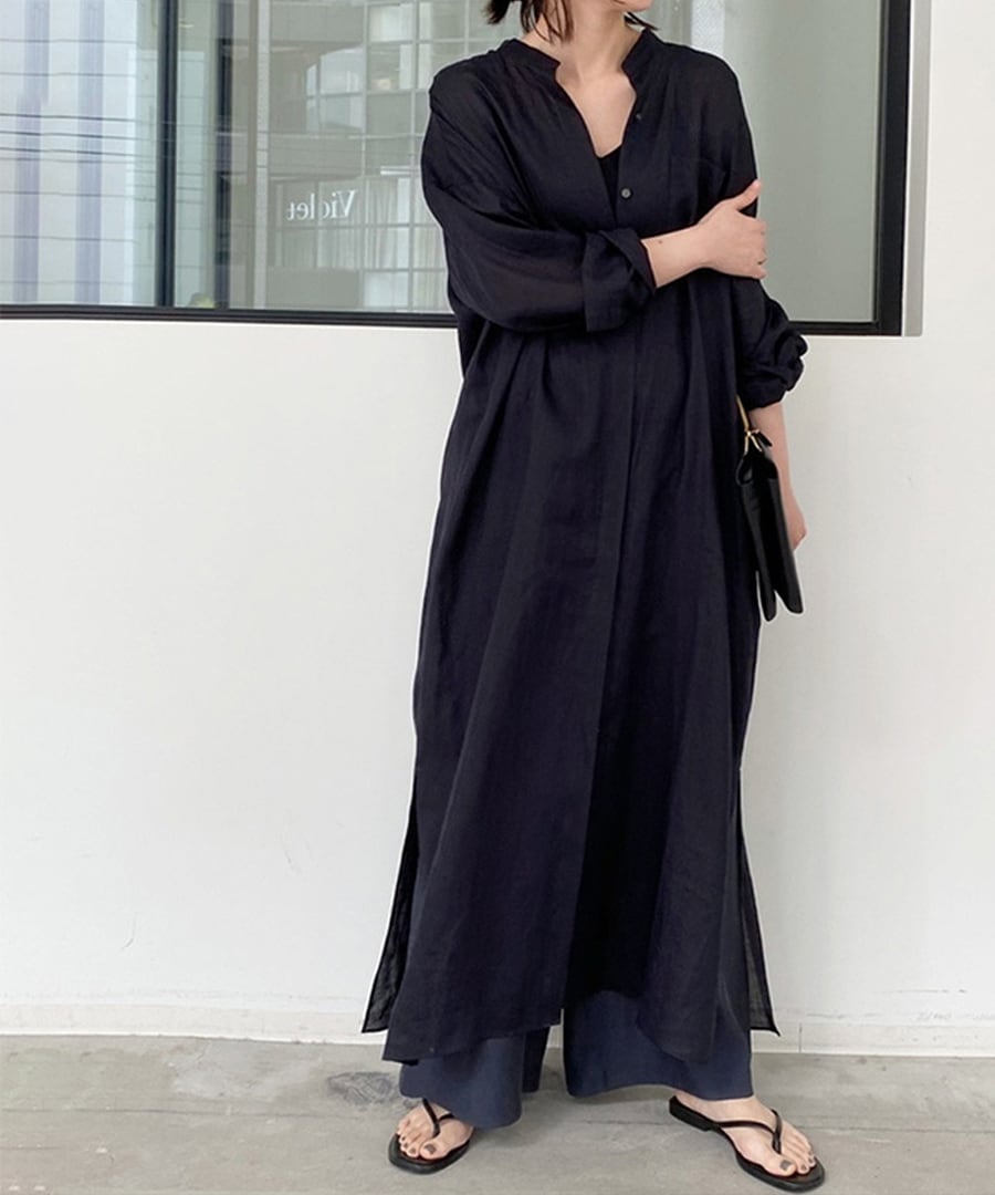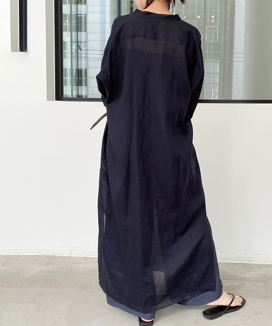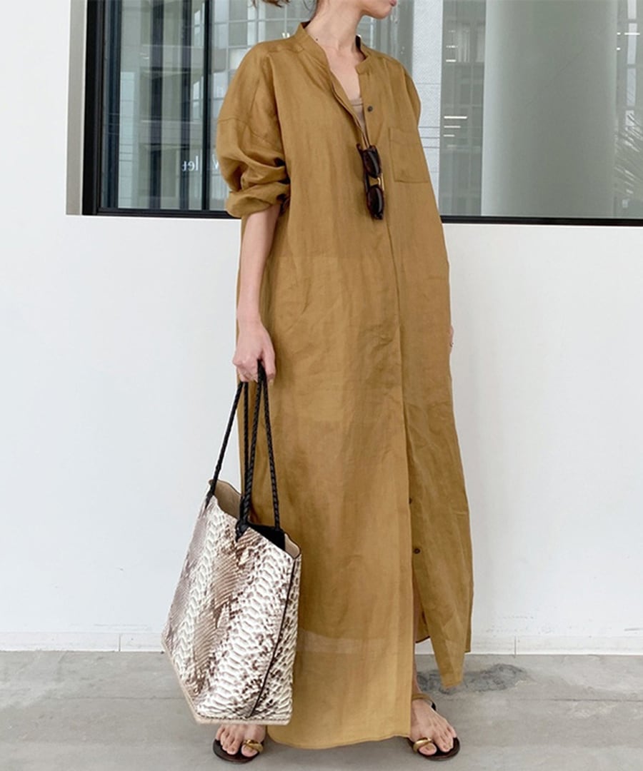 リネン混シャツワンピース◆マキシ丈【w-30130】