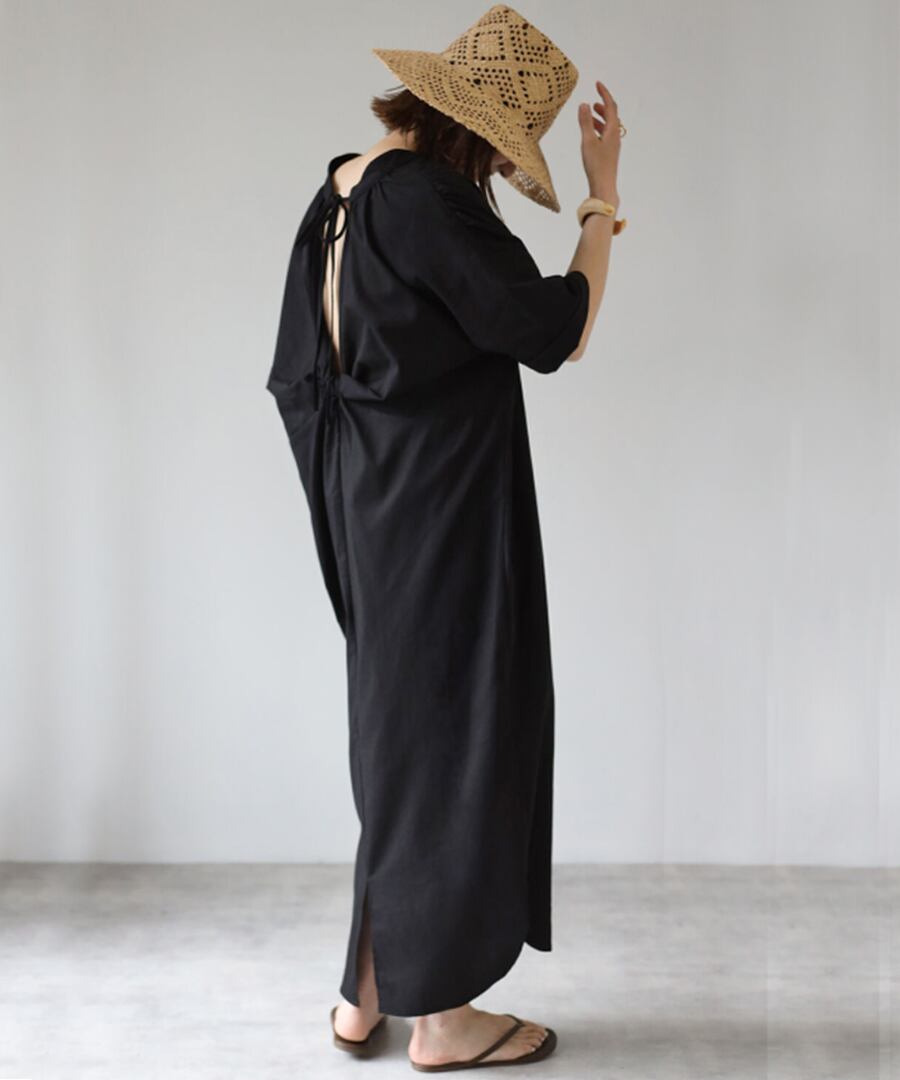 バックデザインVネックワンピース【w-30134】.