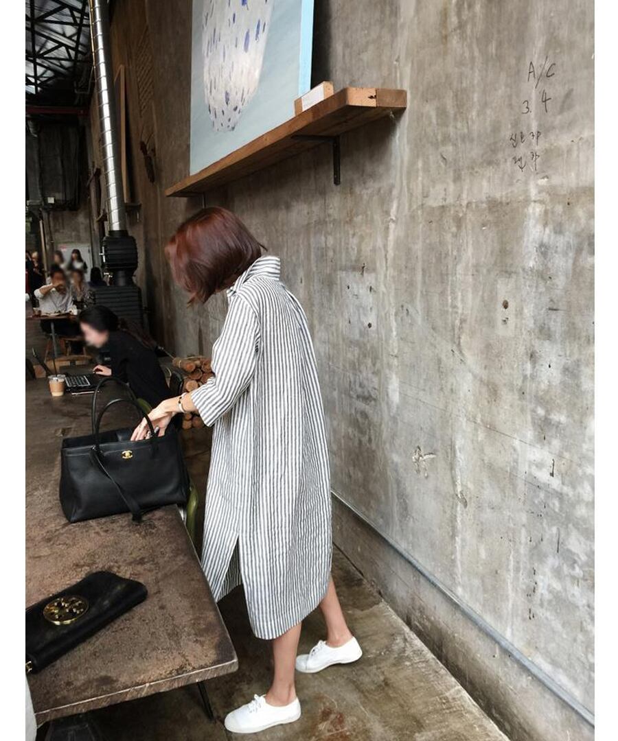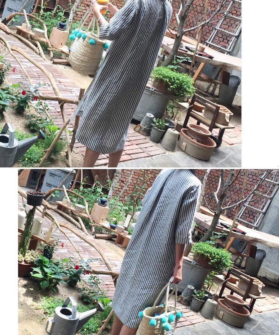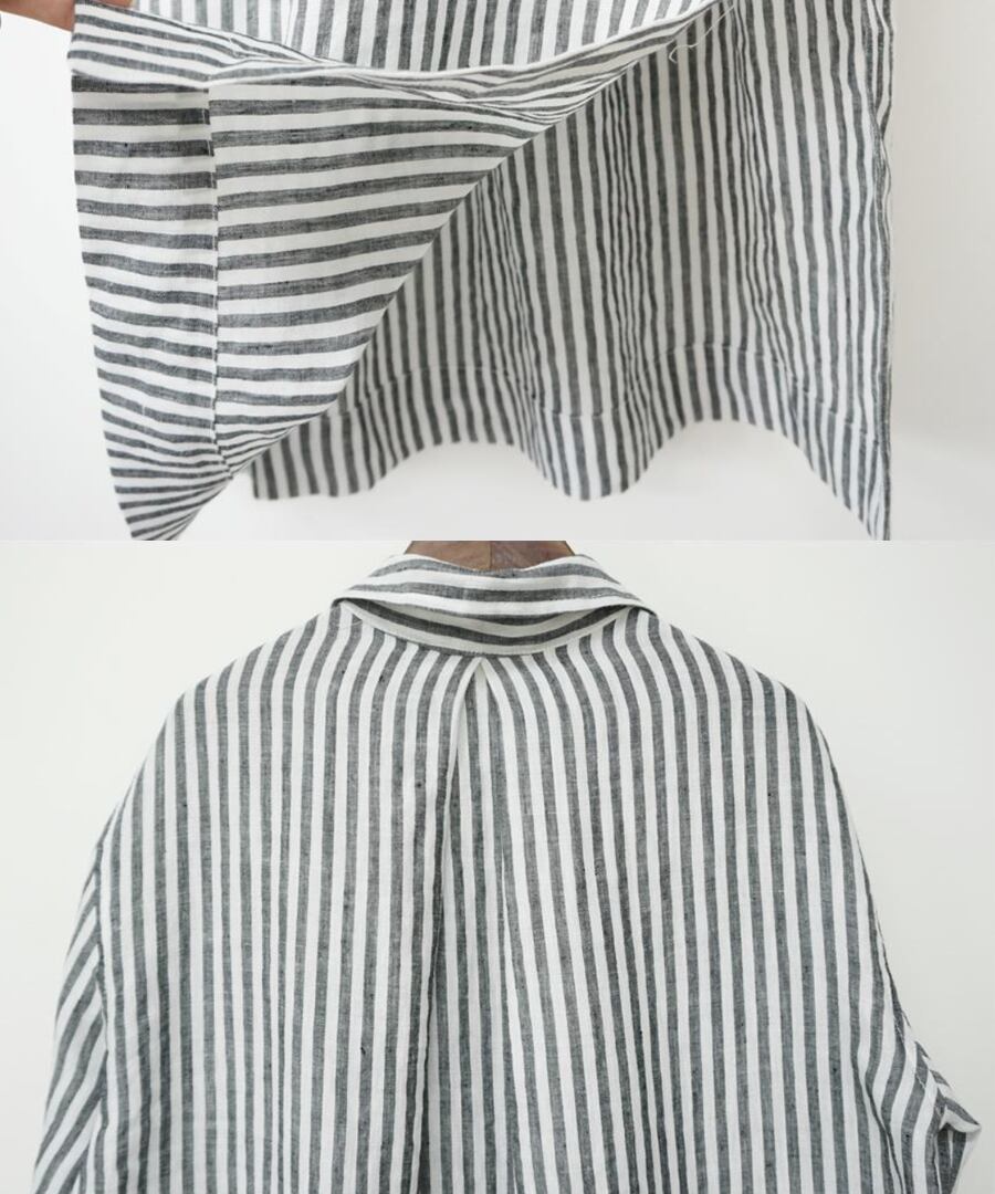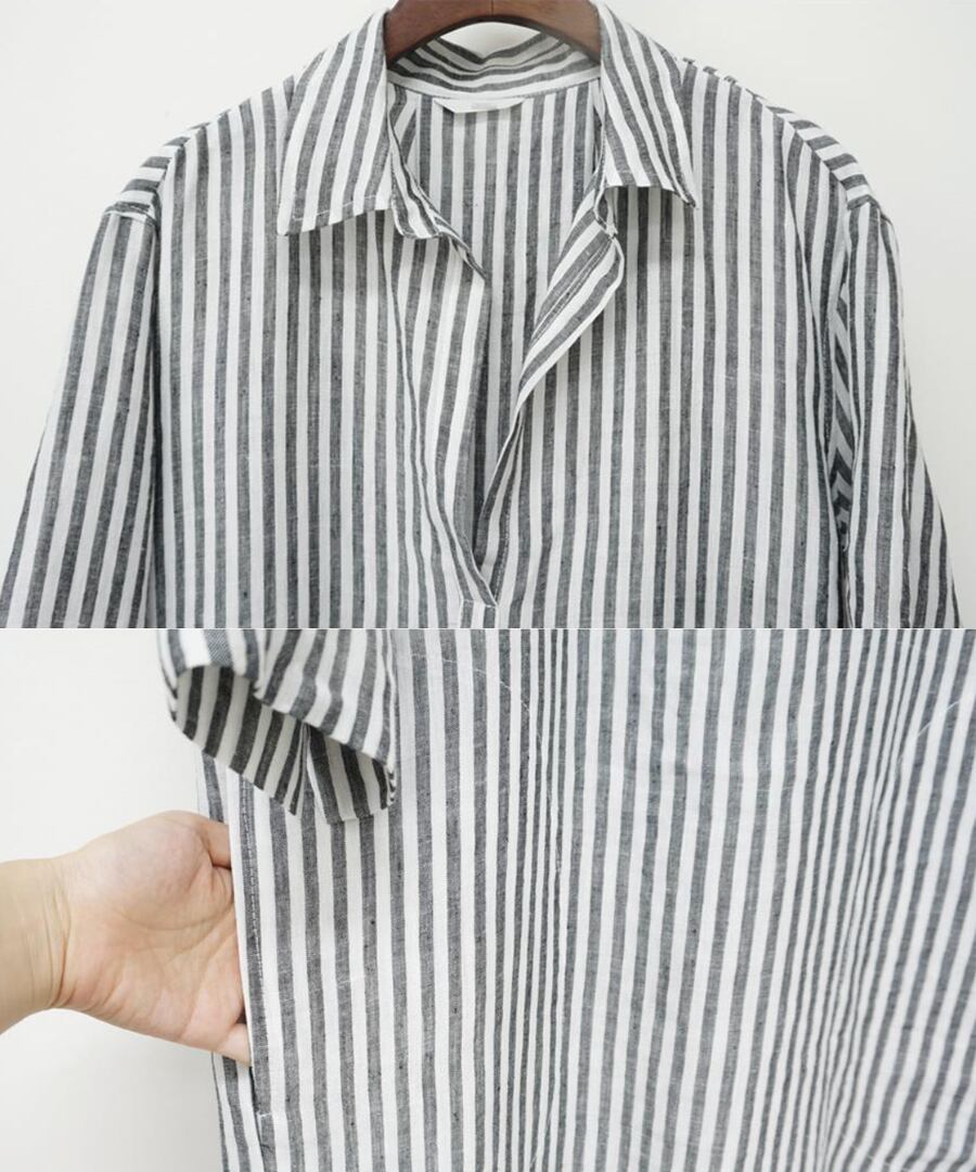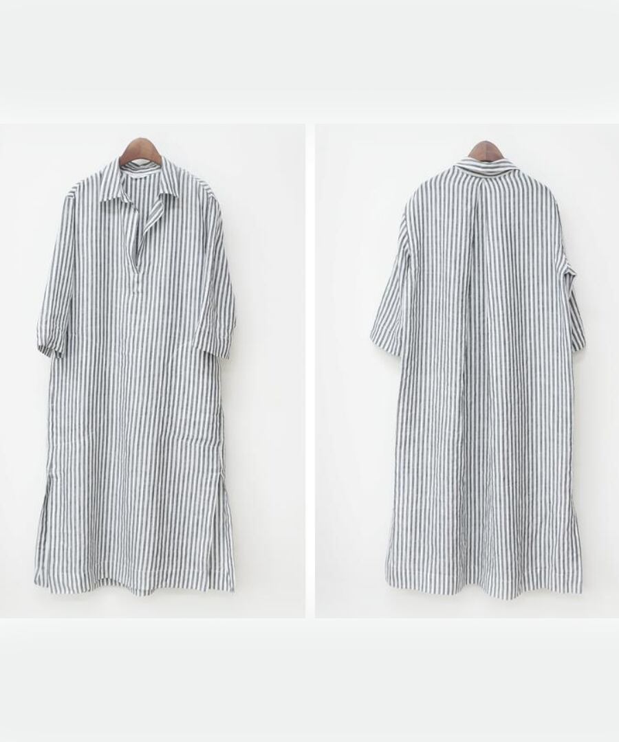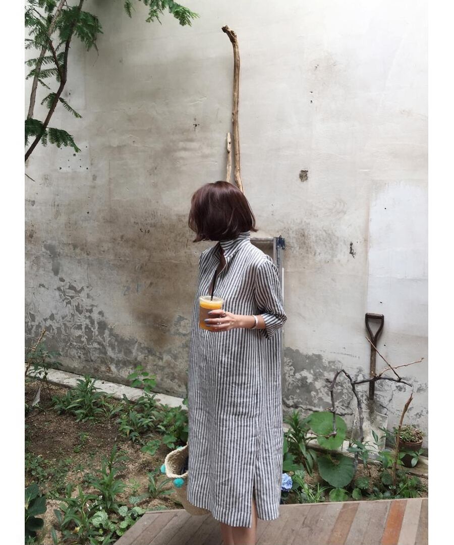 リネン混シャツワンピ◆ストライプ【w-30156】