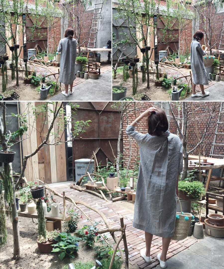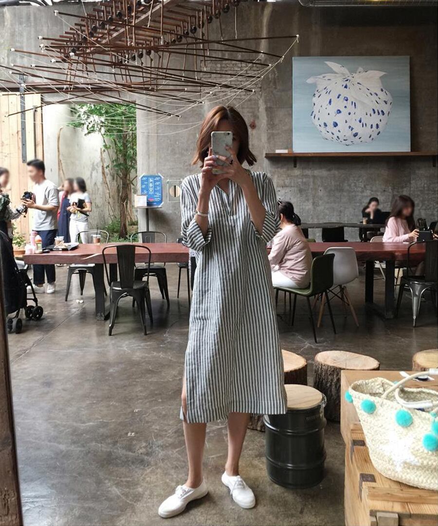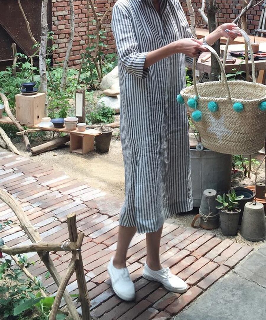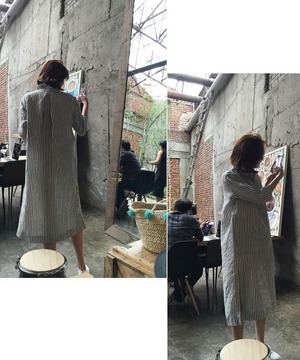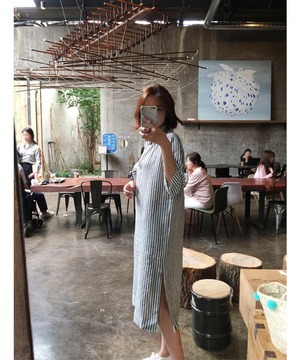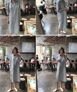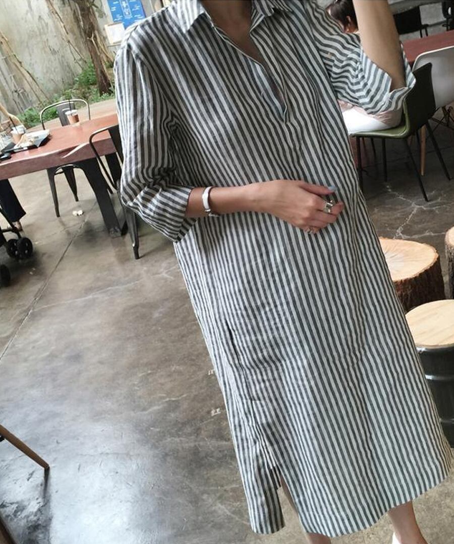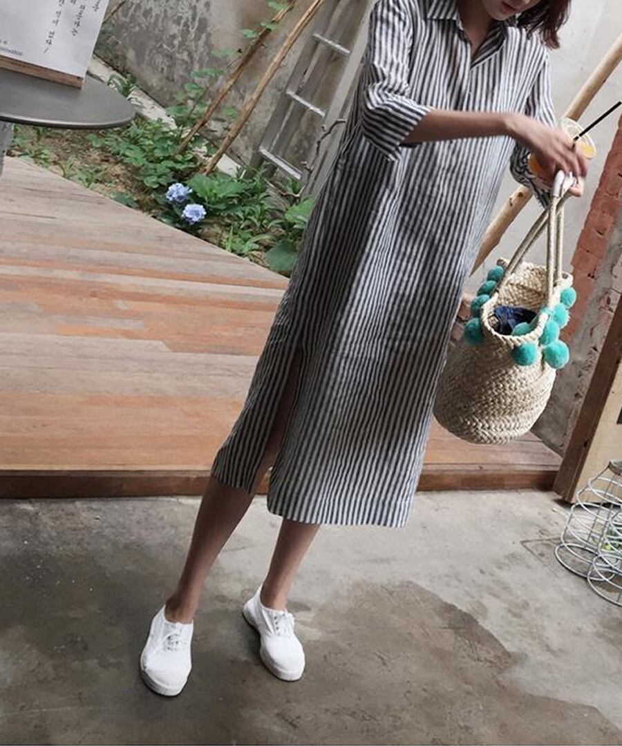 リネン混シャツワンピ◆ストライプ【w-30156】