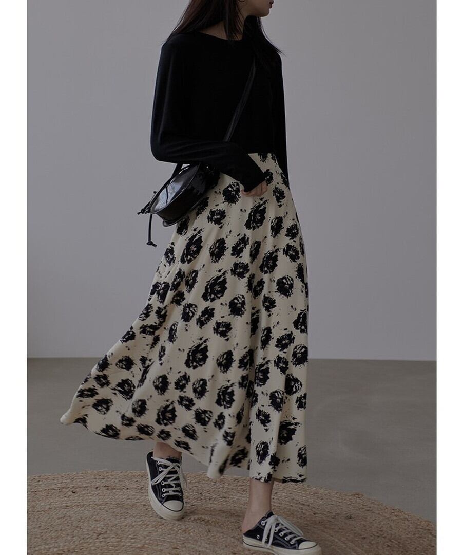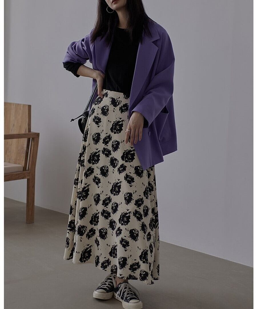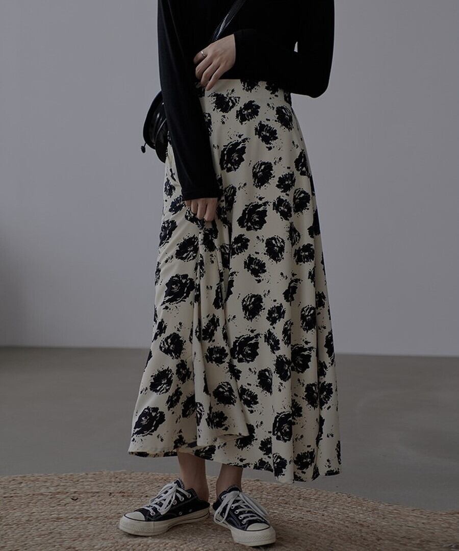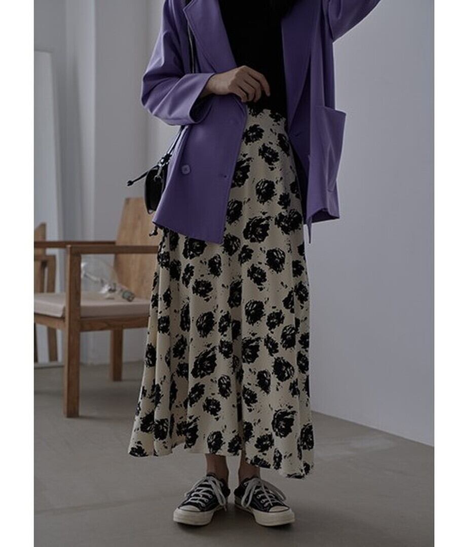 華やかなフラワープリントが映える、女性らしさを引き立てるフレアスカート。