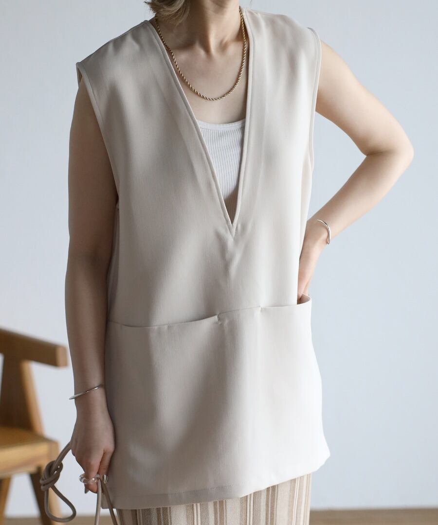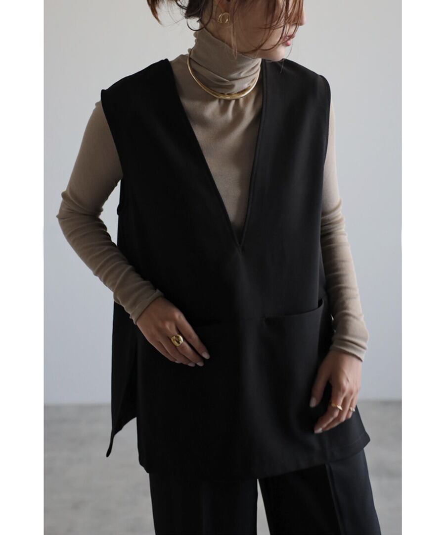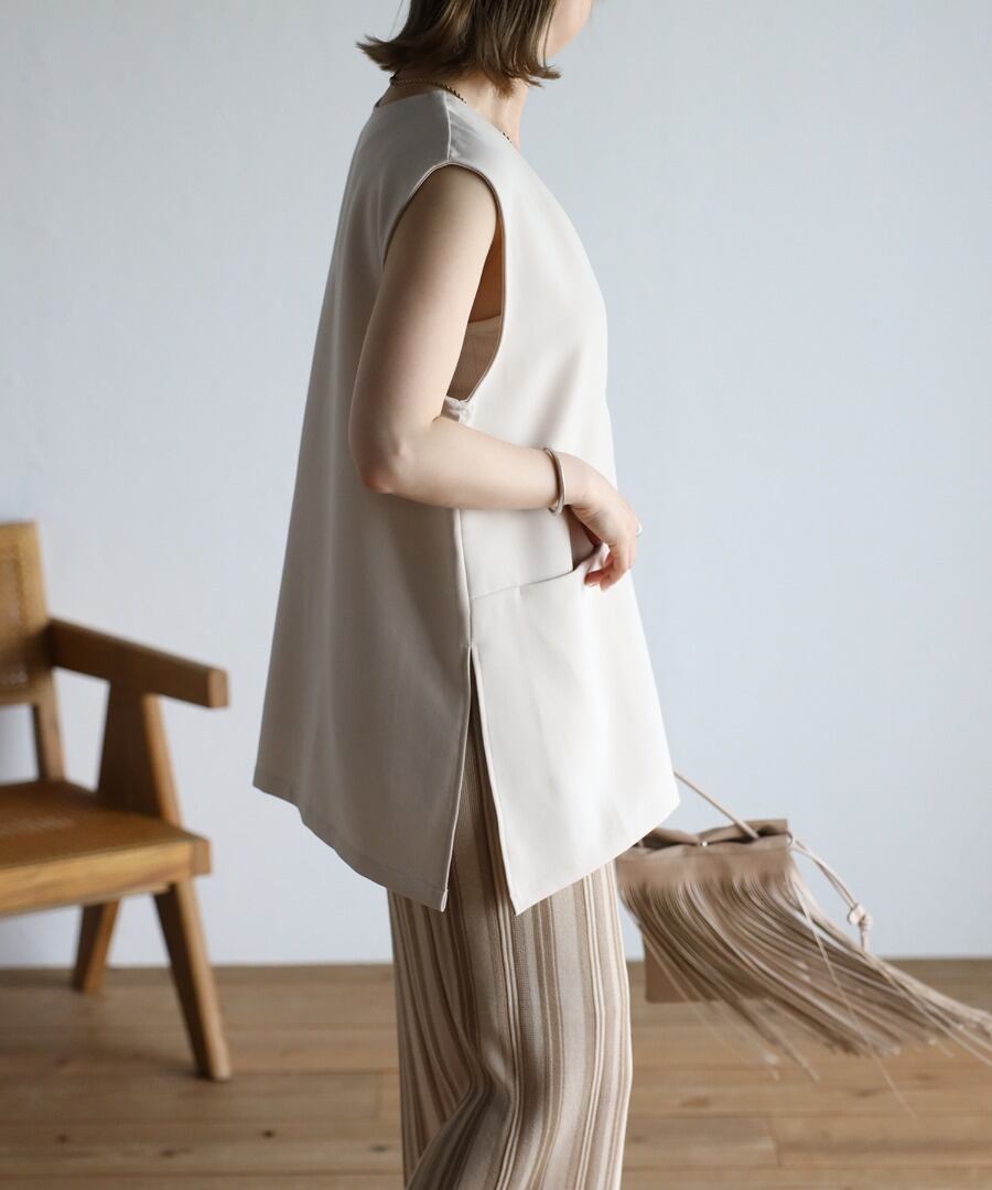 スッキリとした深Vネックに脇スリットで抜け感をプラス。