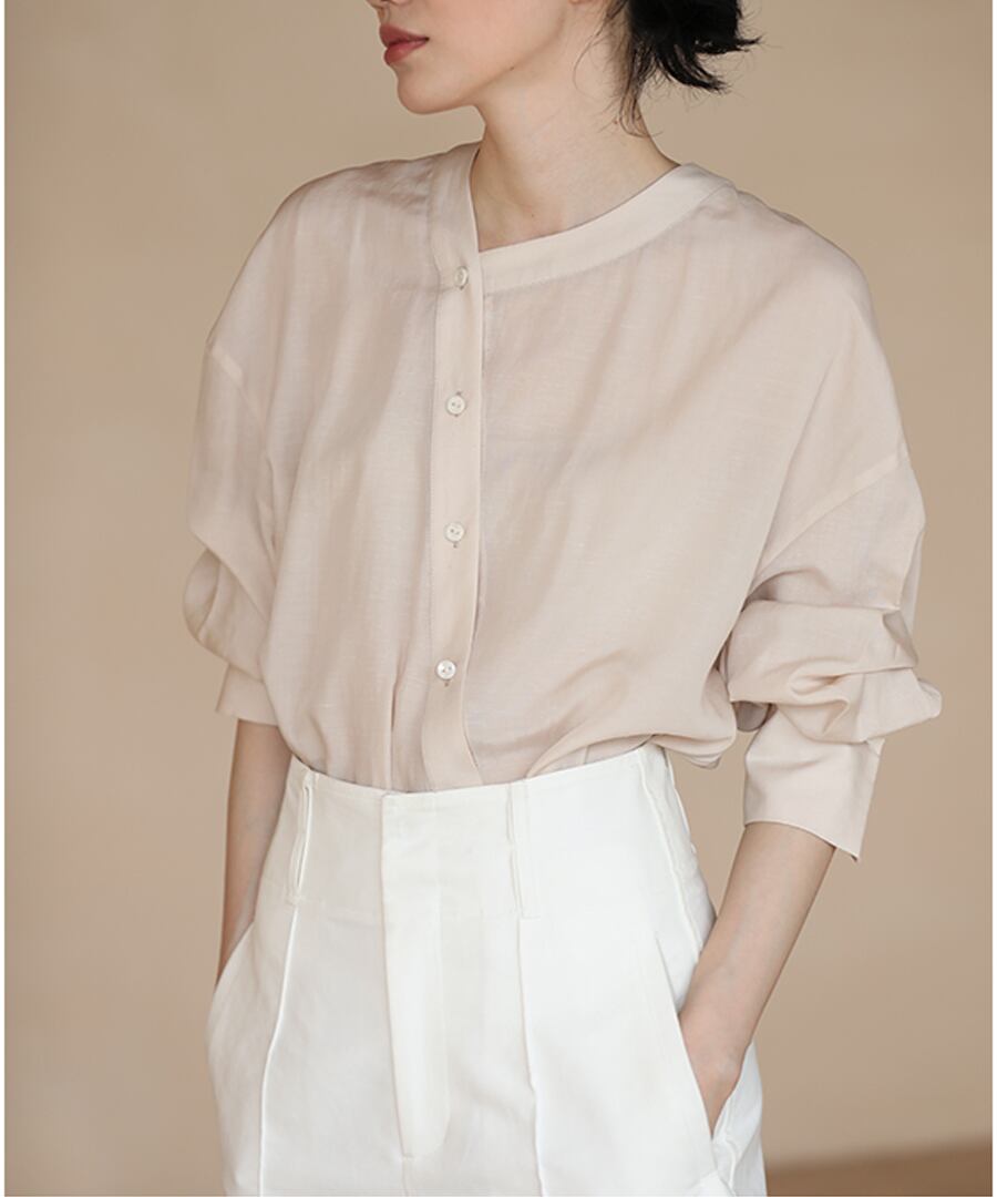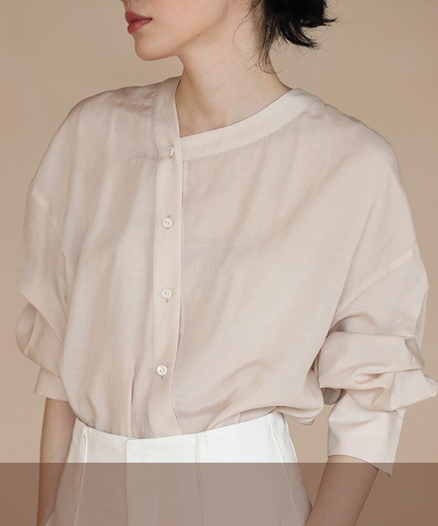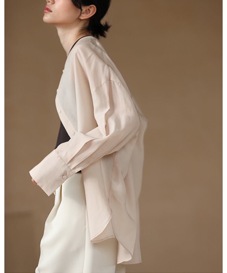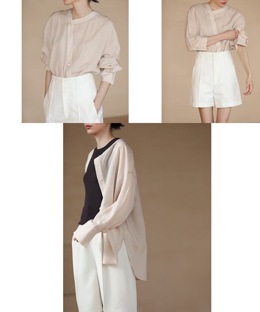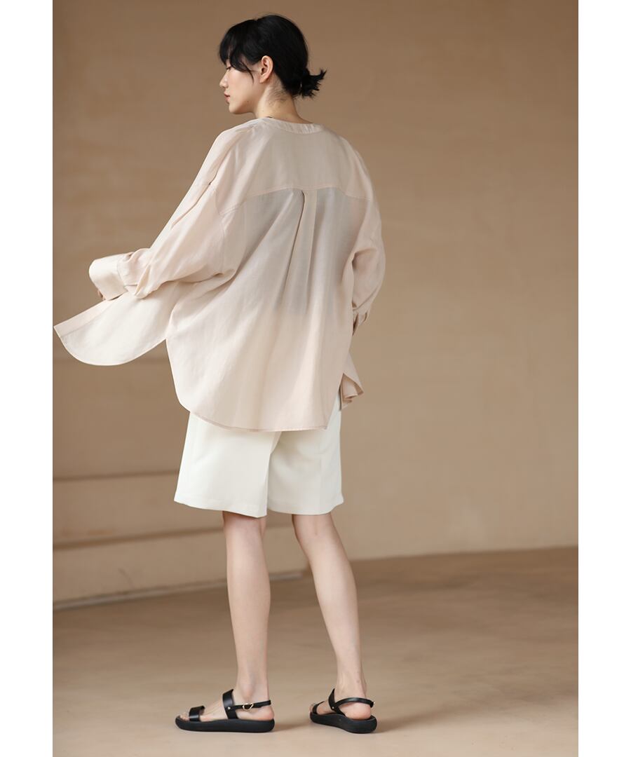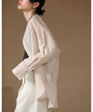 デザインバンドカラー◆シアーシャツ【t-10389】
