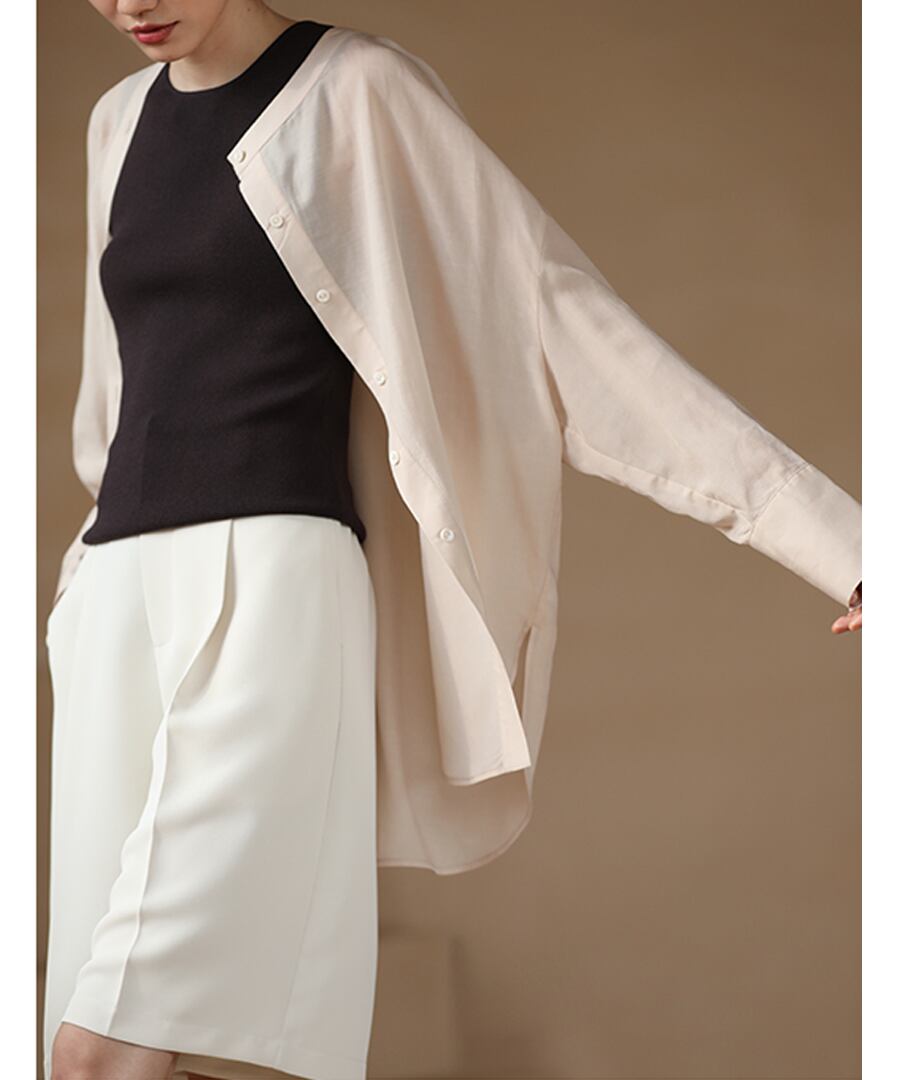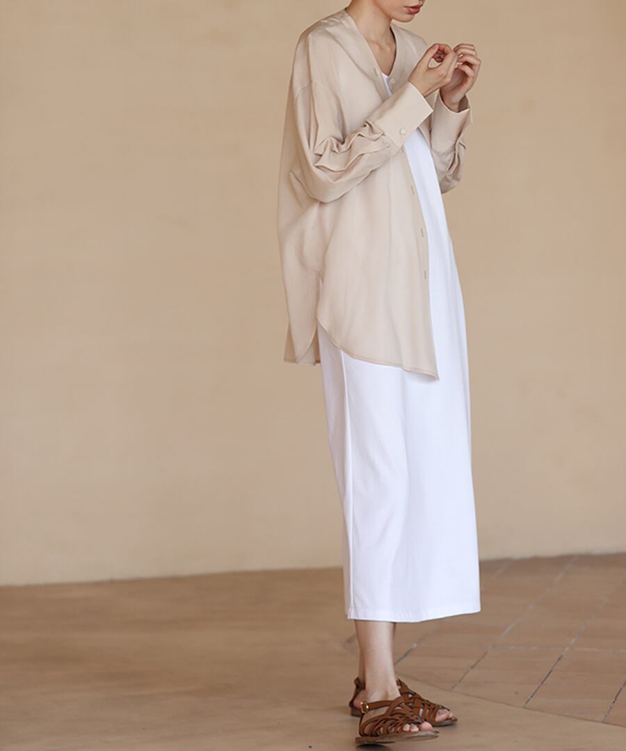 トレンドライクなロング丈で、トップス感覚で着たり、羽織りや、レイヤードスタイルで合わせたり、様々な着こなしが楽しめます。