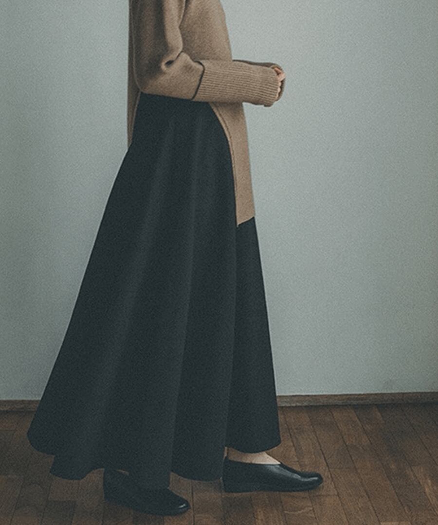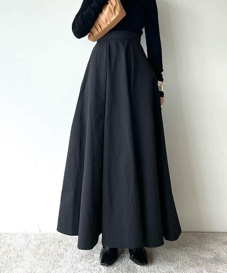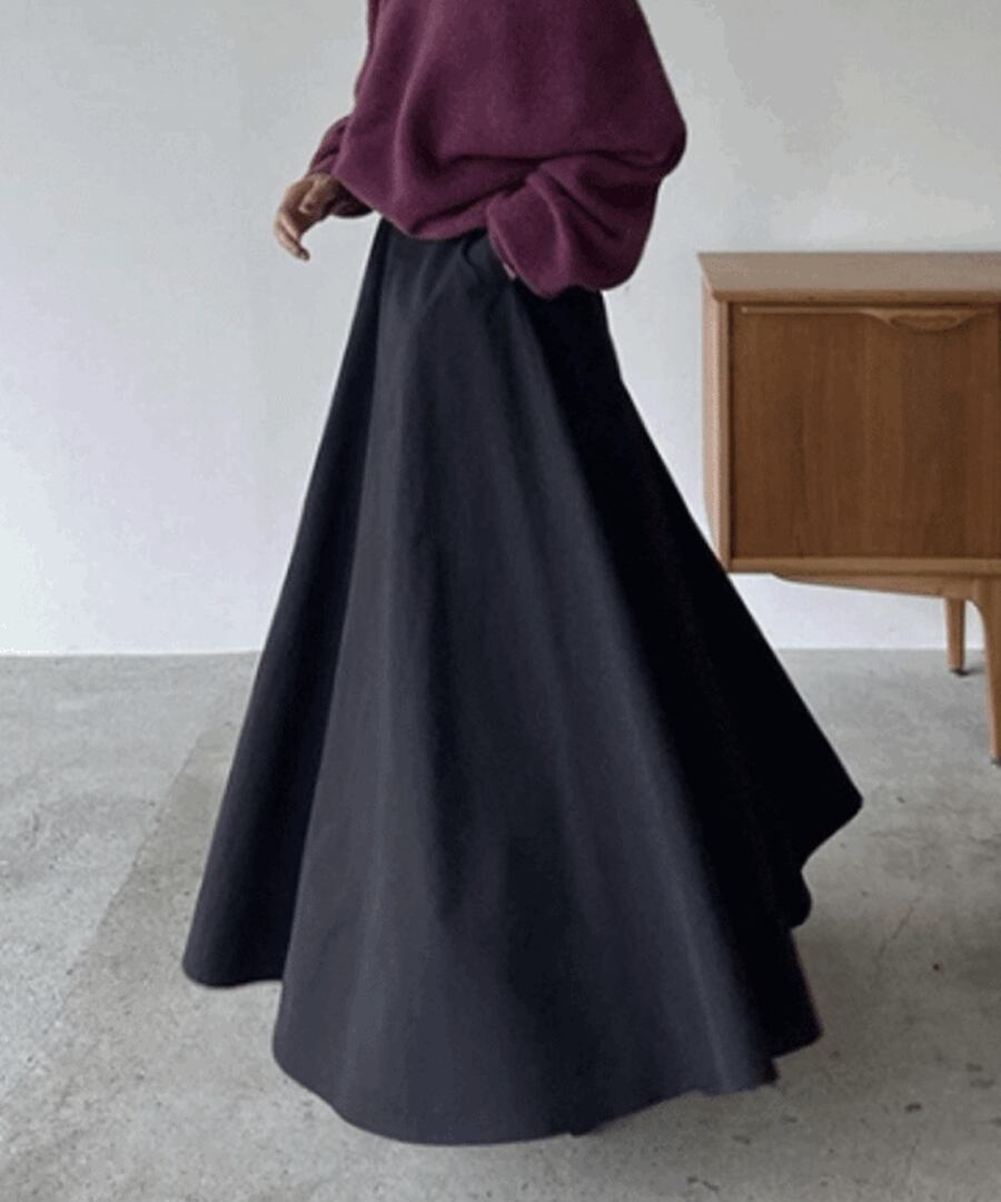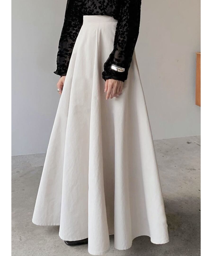 たっぷりのフレアが動くたびに揺れる、Aラインロングスカート