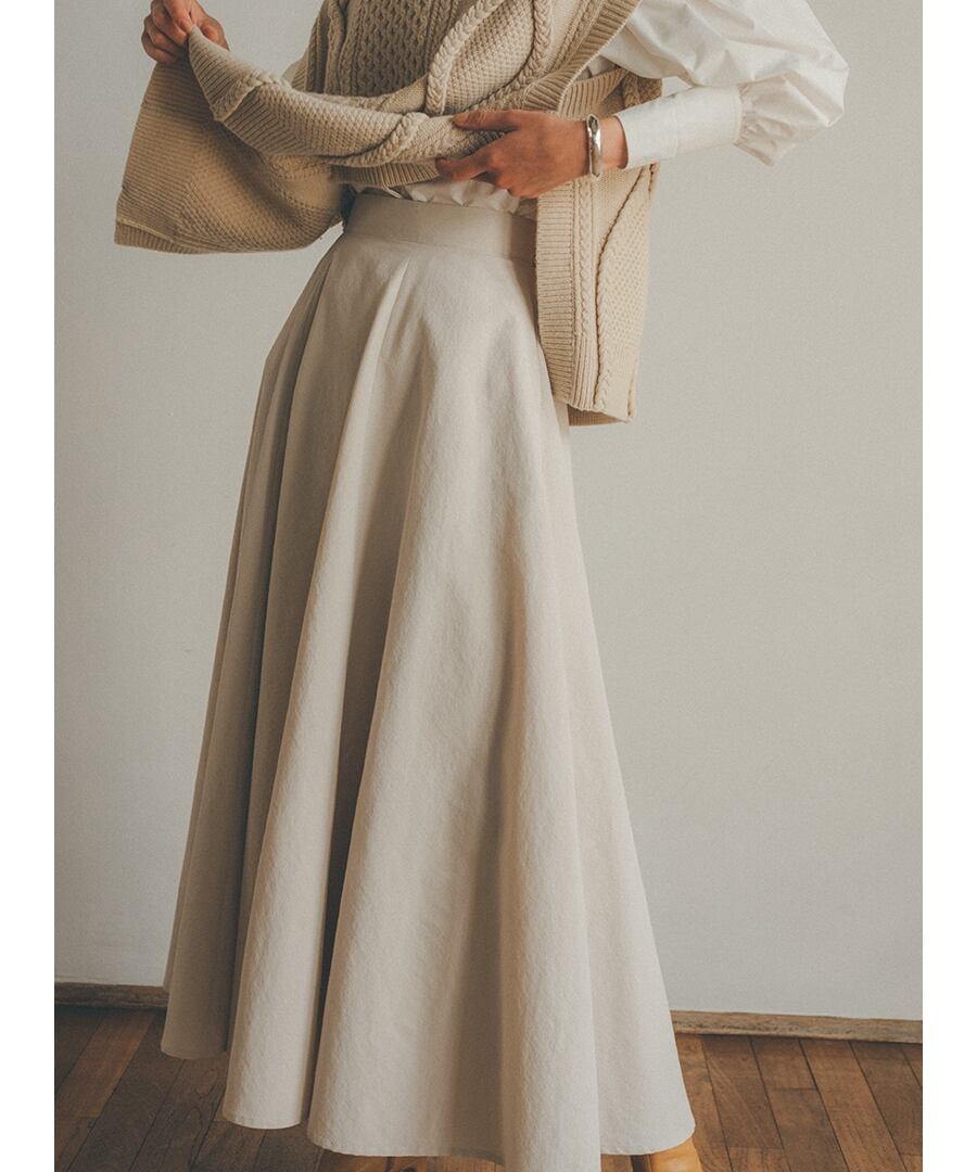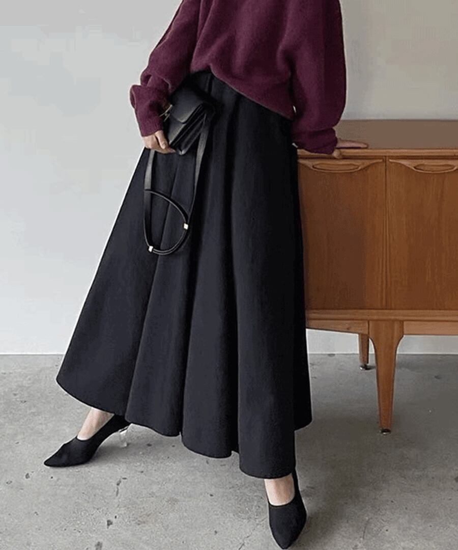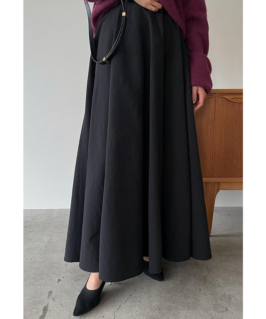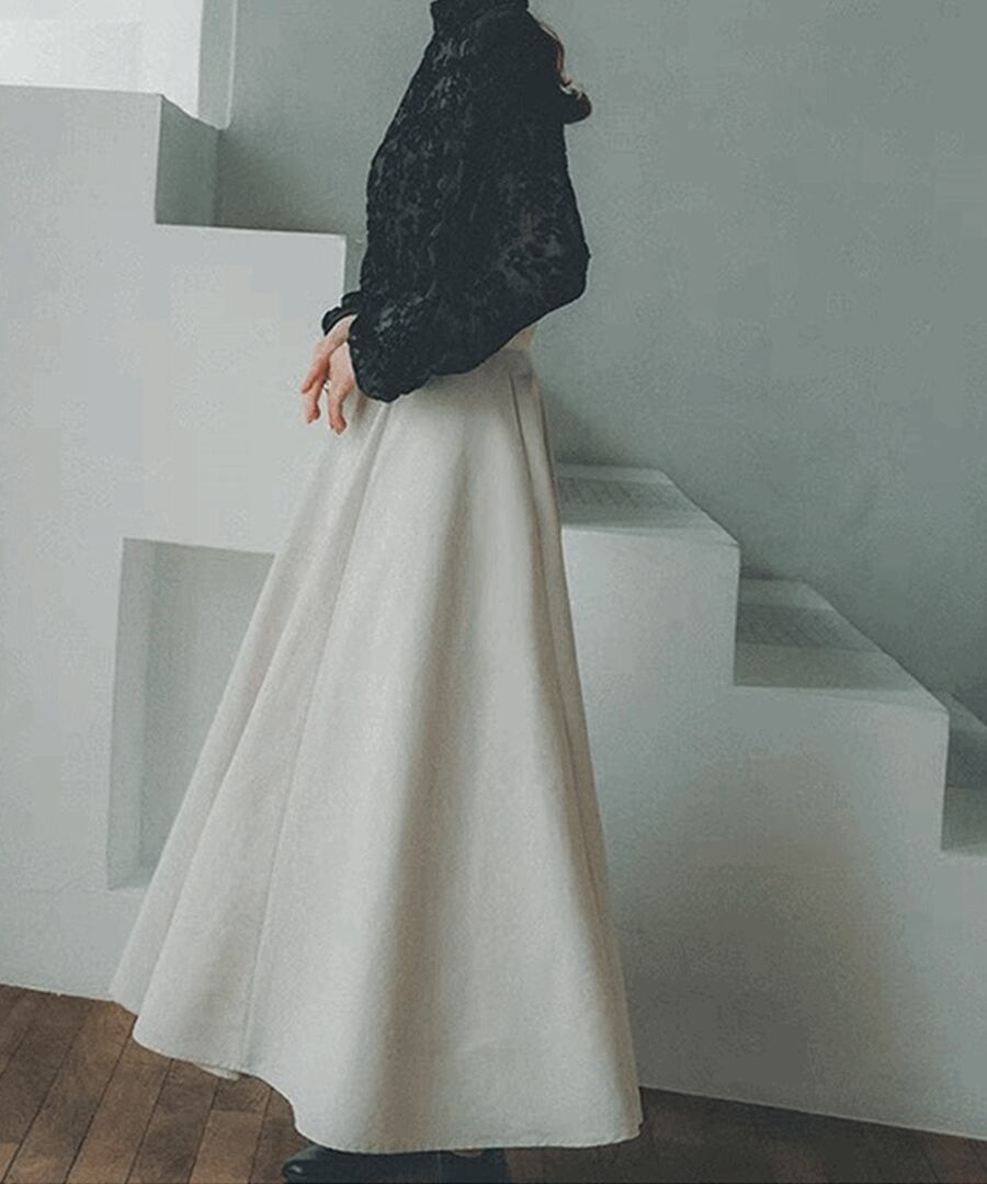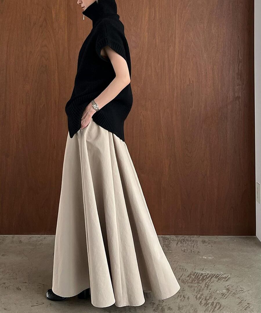 たっぷりのフレアが動くたびに揺れる、Aラインロングスカート