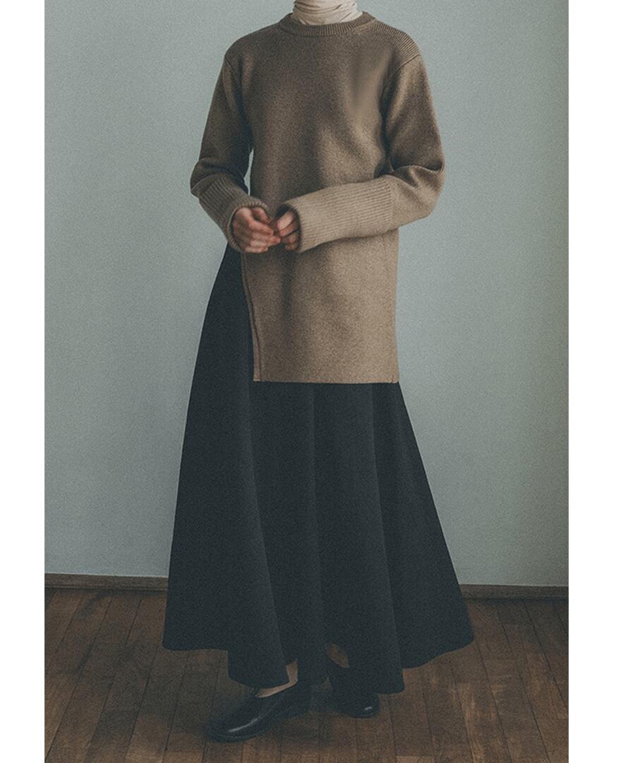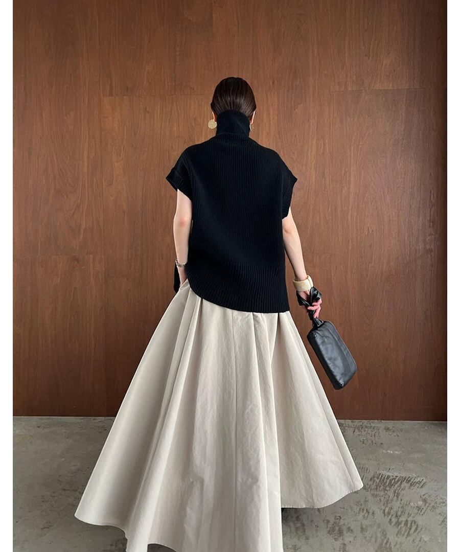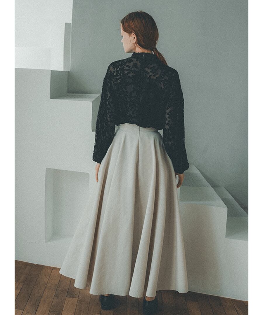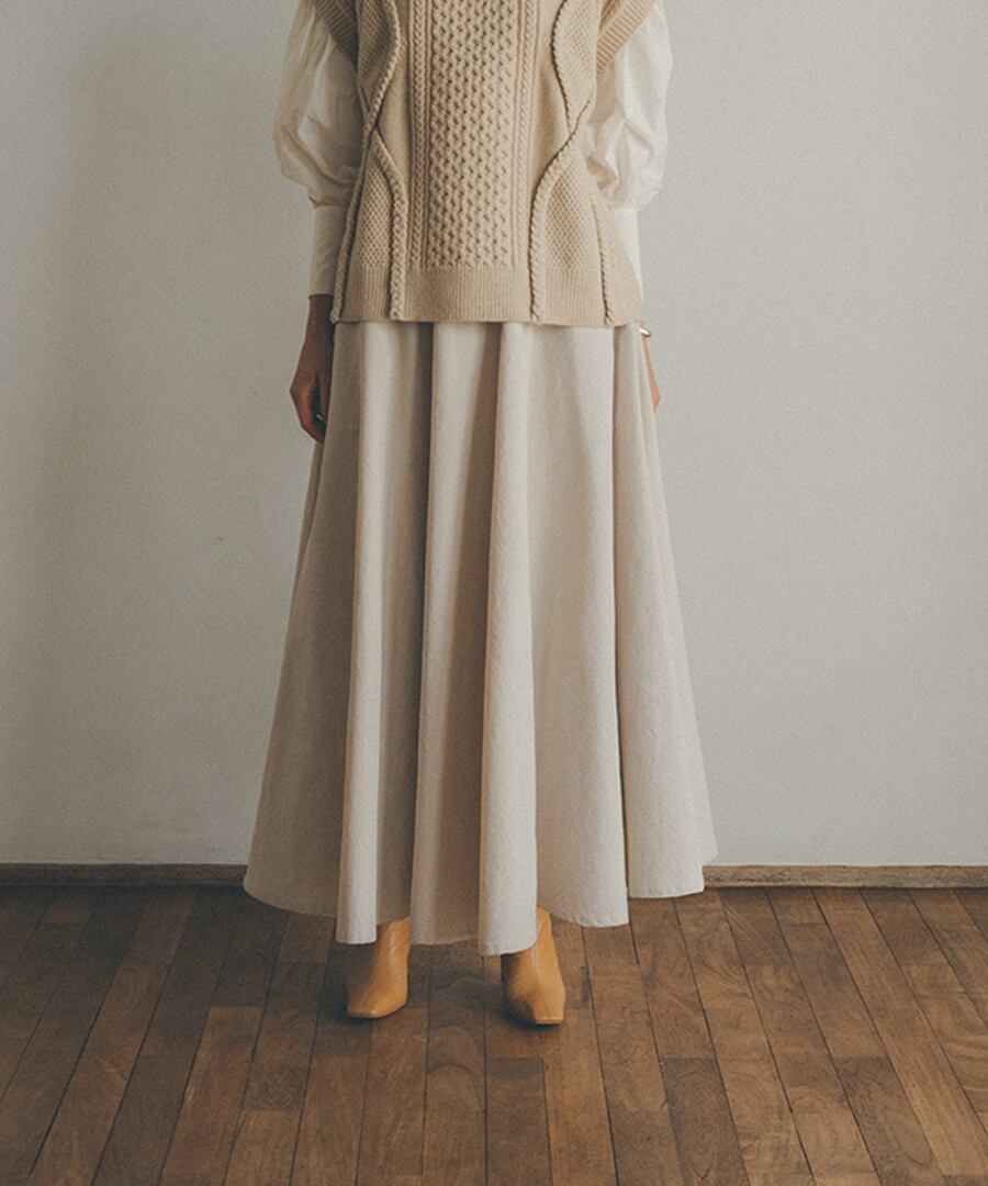 たっぷりのフレアが動くたびに揺れる、Aラインロングスカート