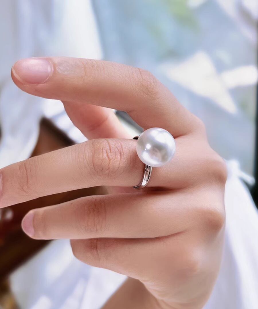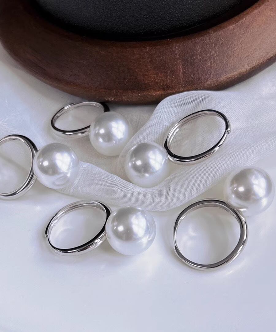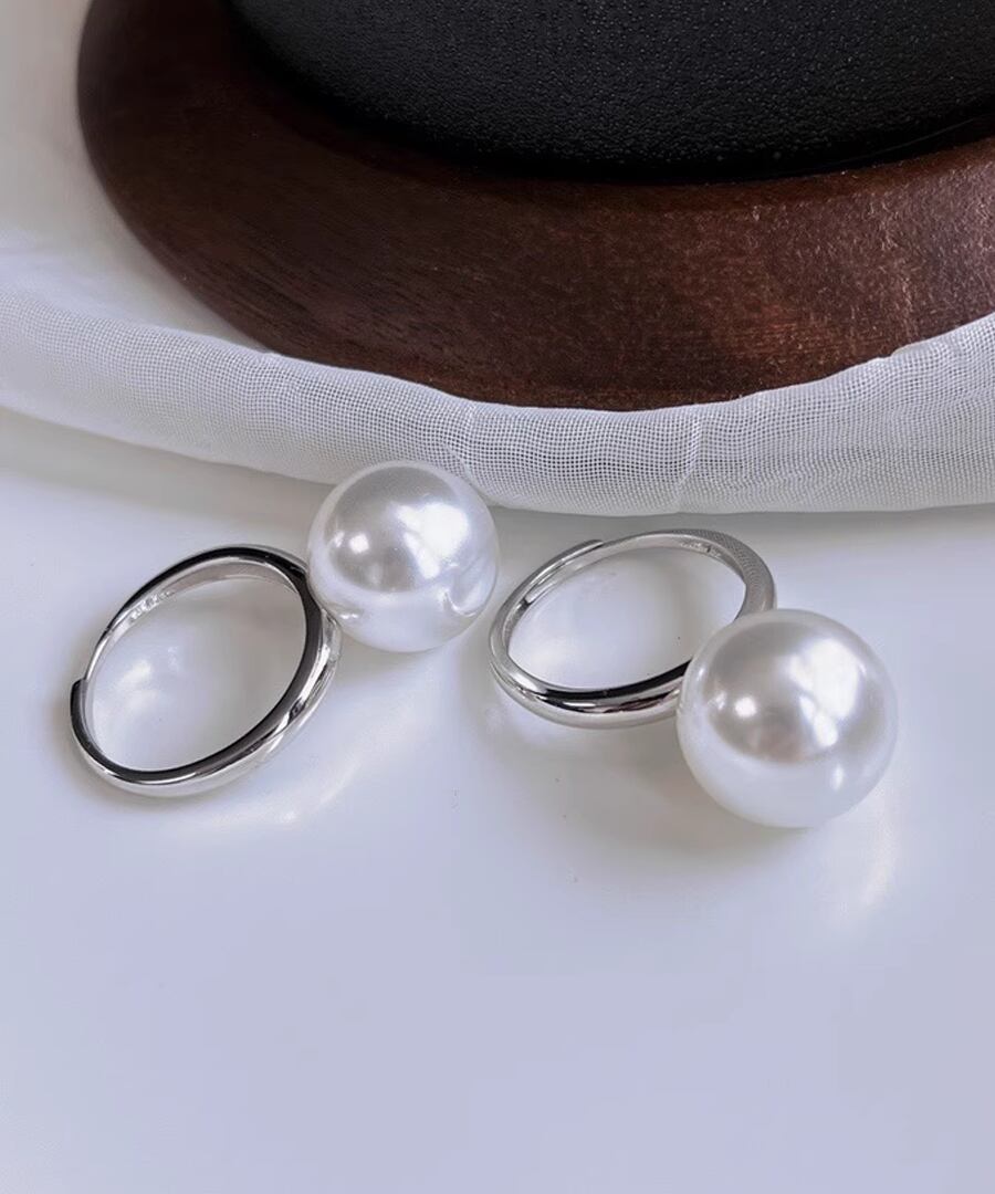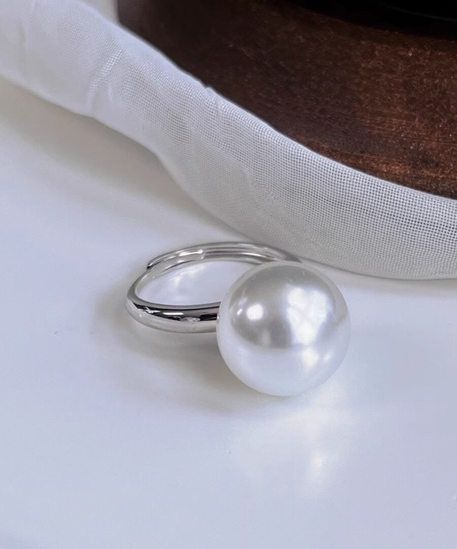 フリーサイズS925◆14㎜パールリング【e-70262】