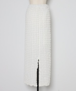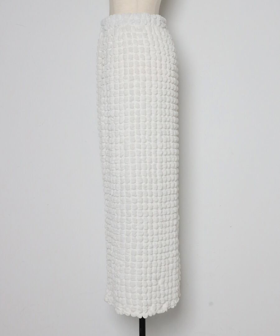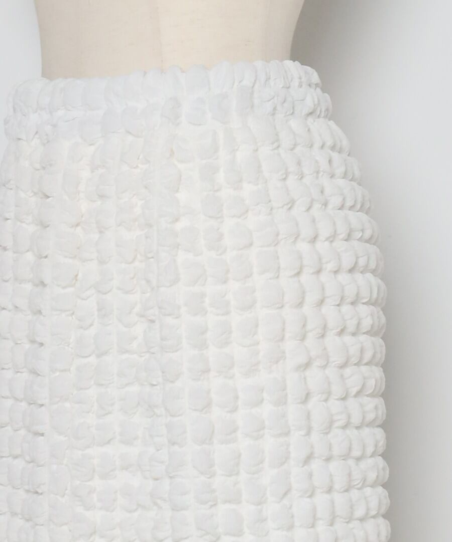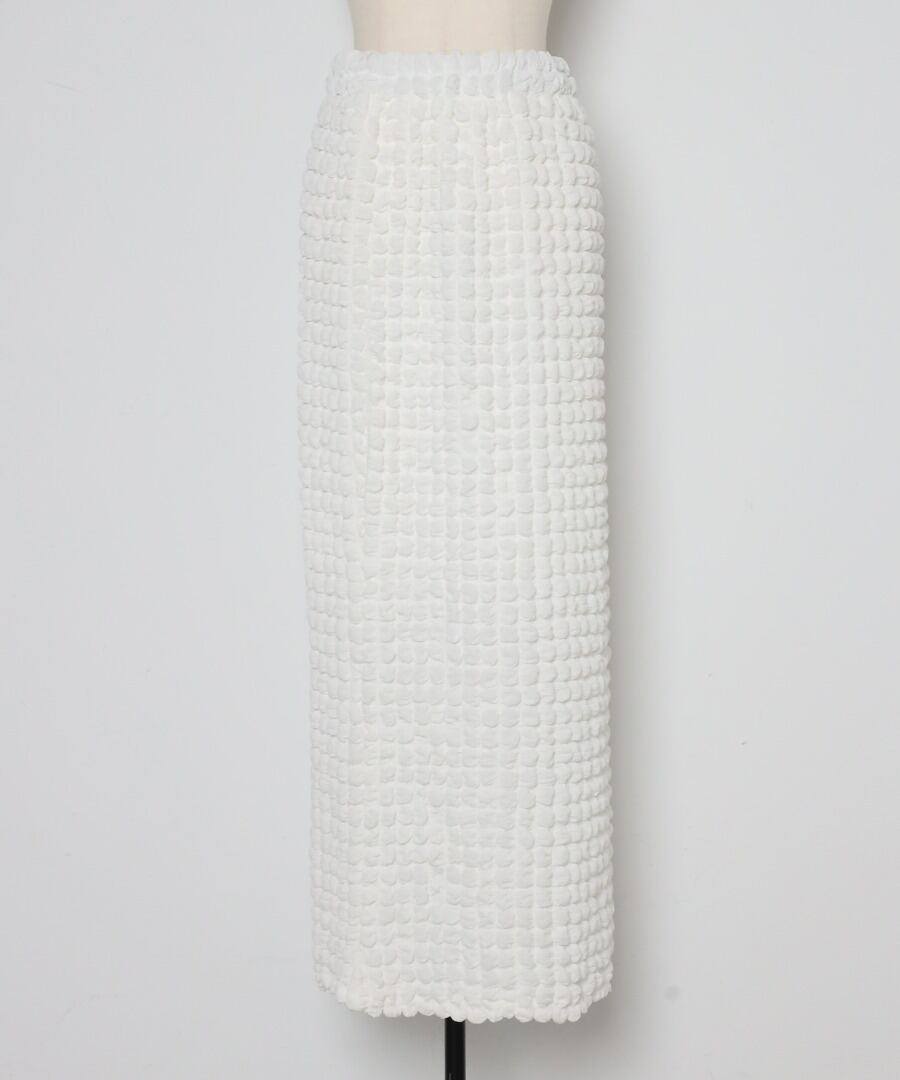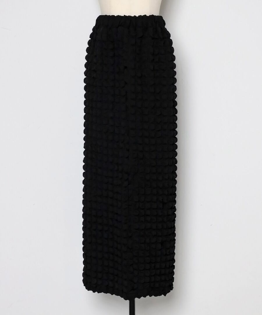 デザイン性のあるスカートなのでシンプルなトップスとのコーデがおすすめ。