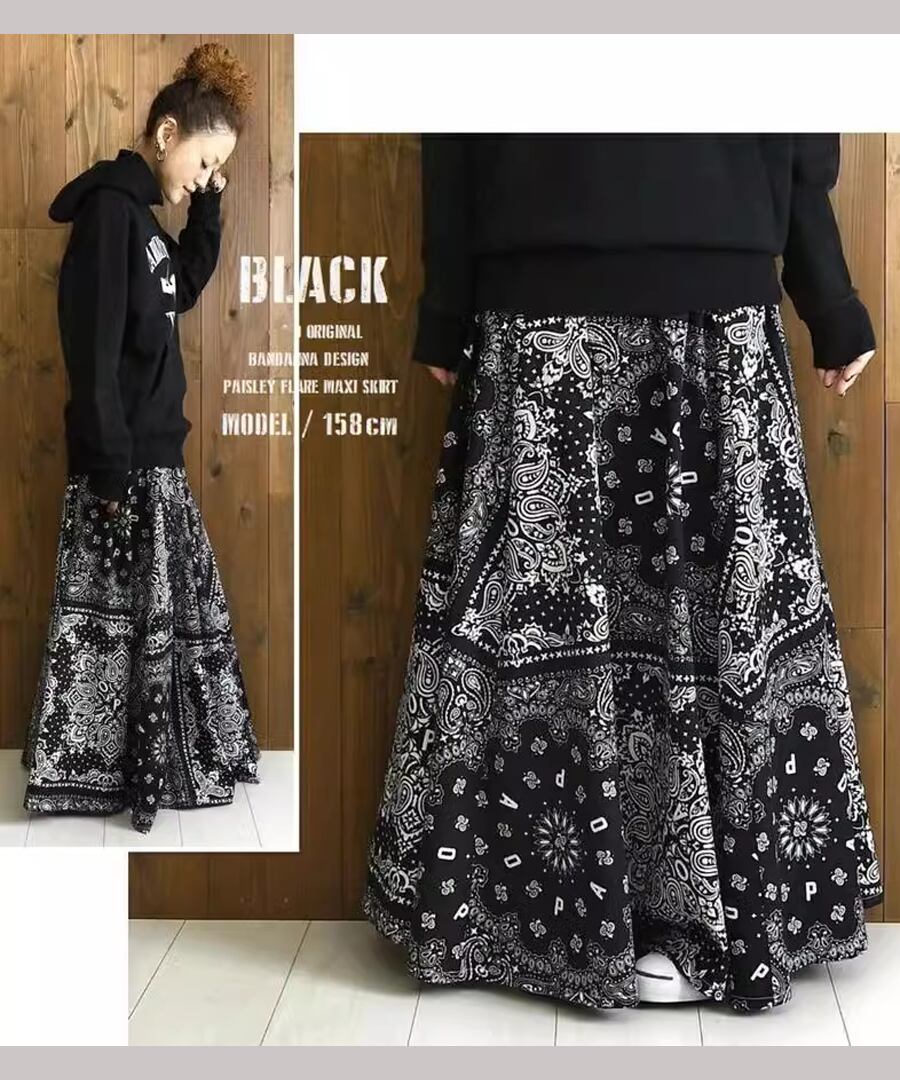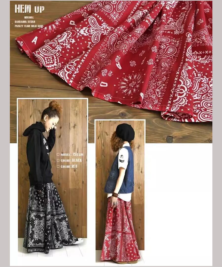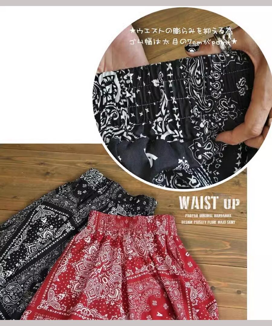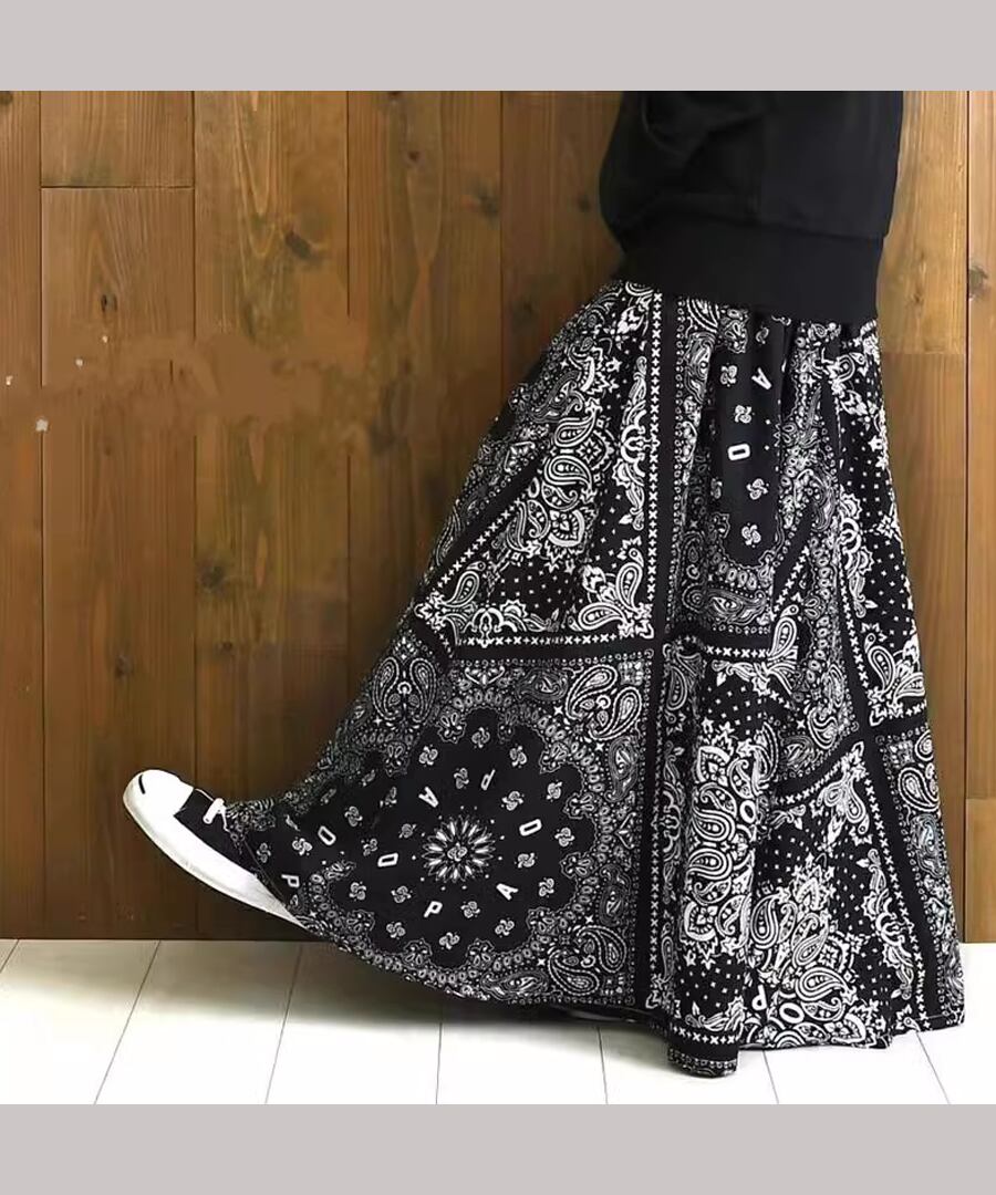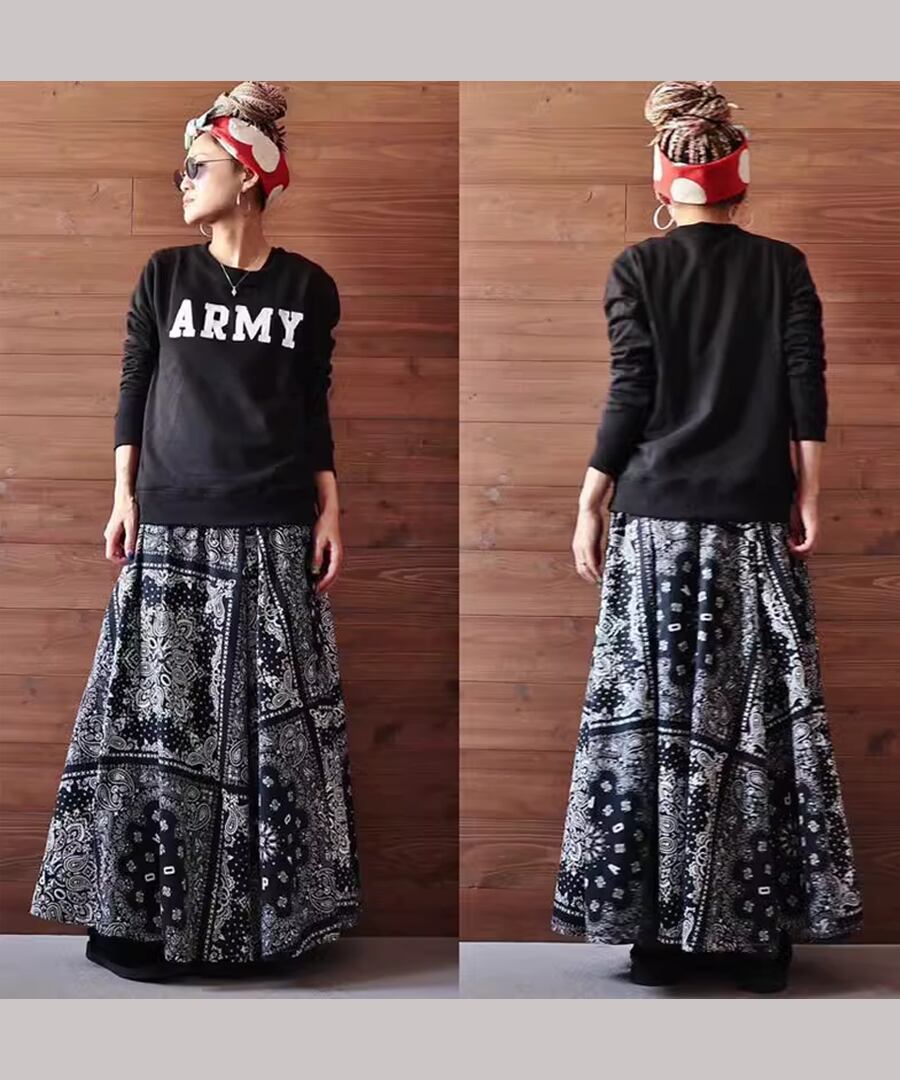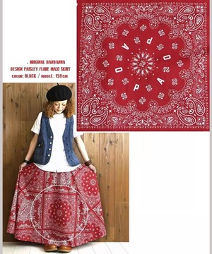 バンダナ柄◆ロングフレアスカート【s-60171】