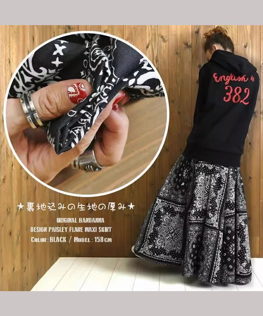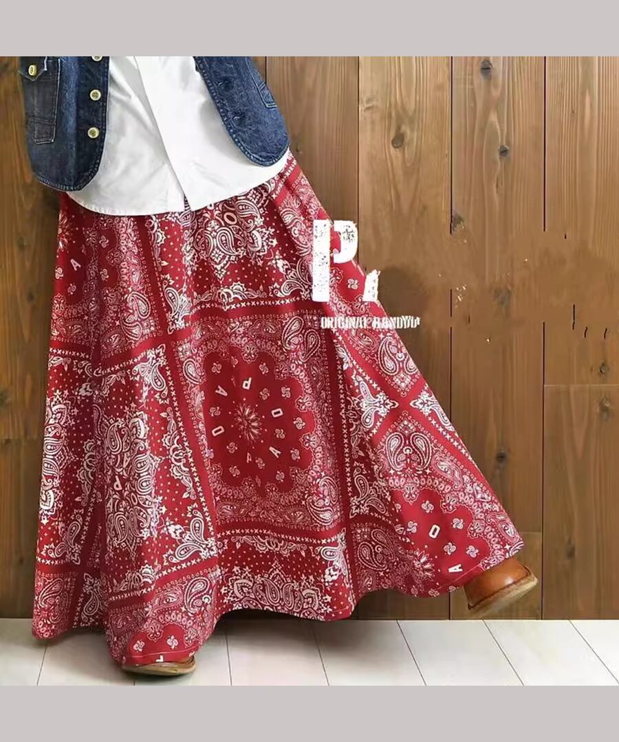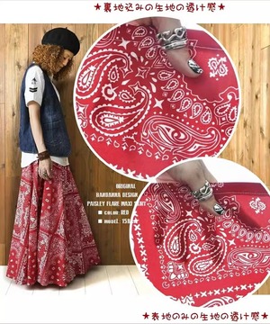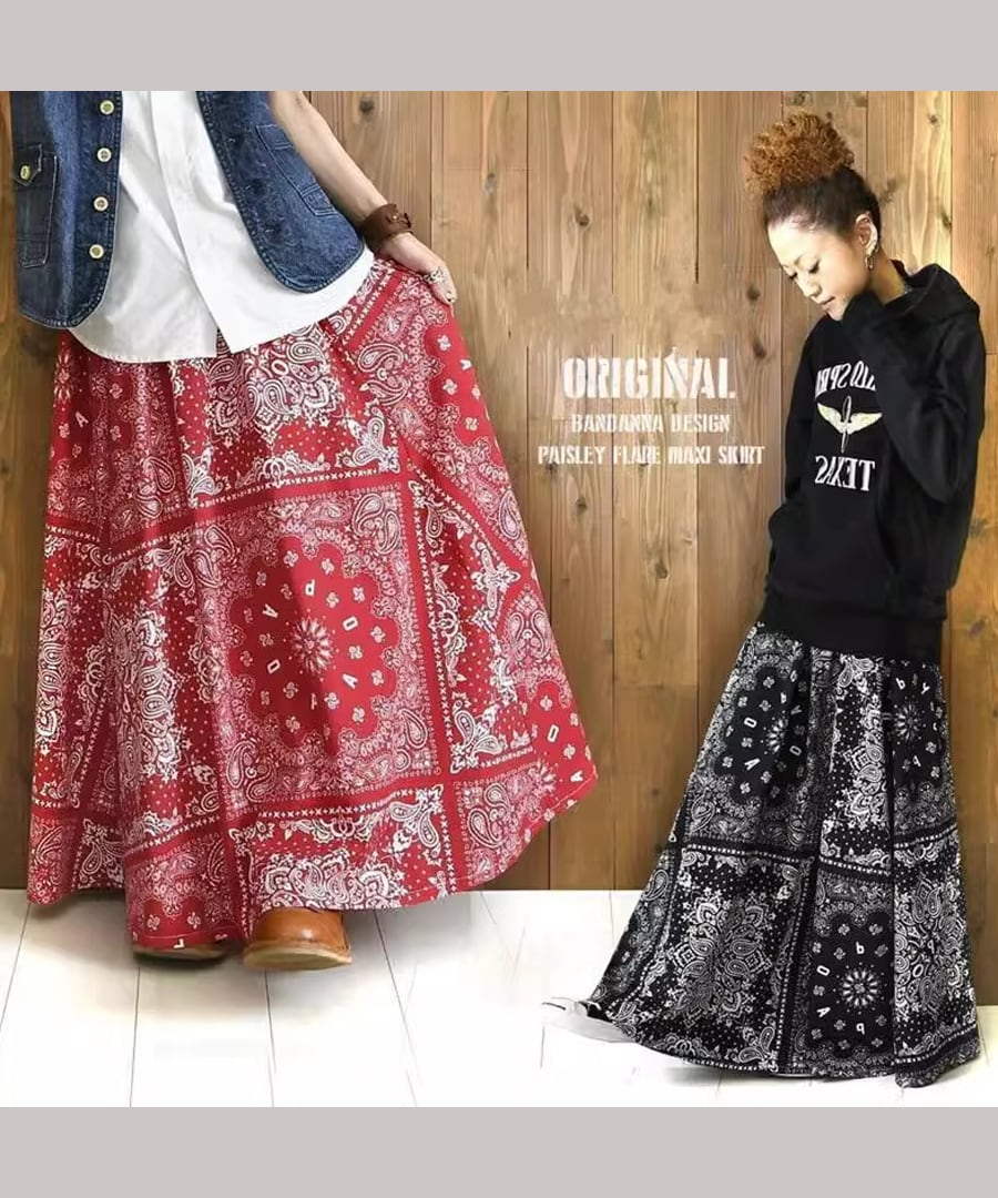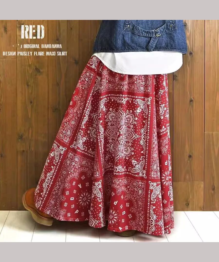 バンダナ柄◆ロングフレアスカート【s-60171】