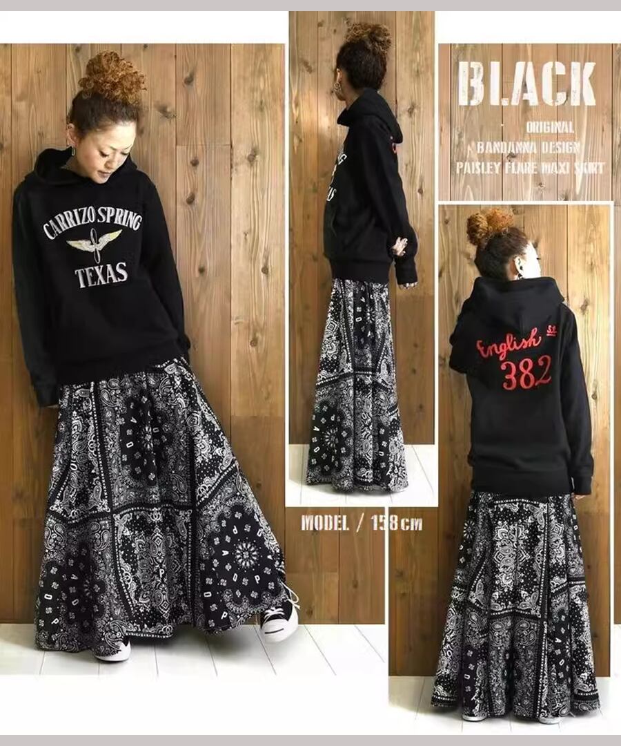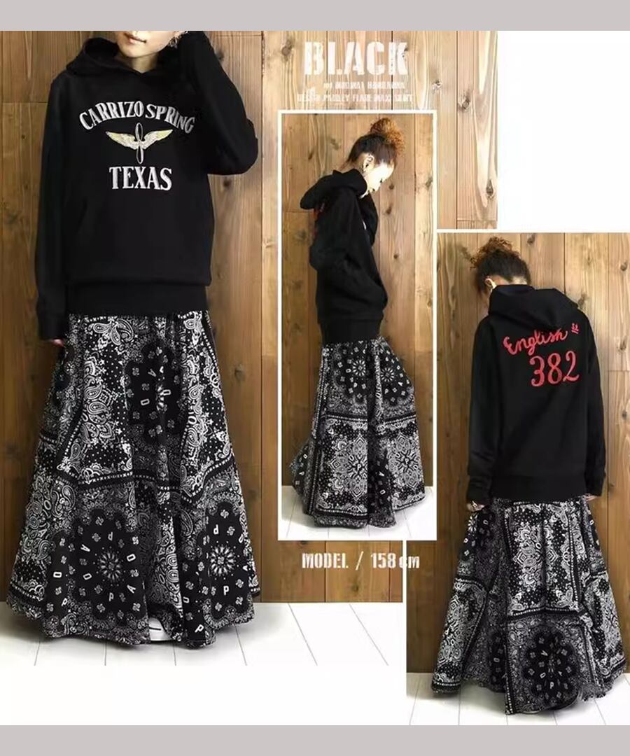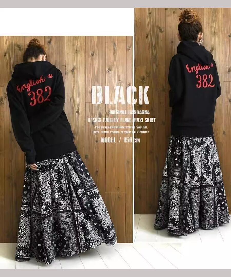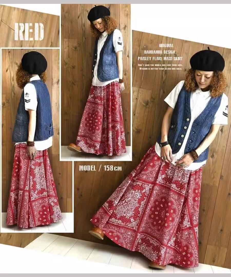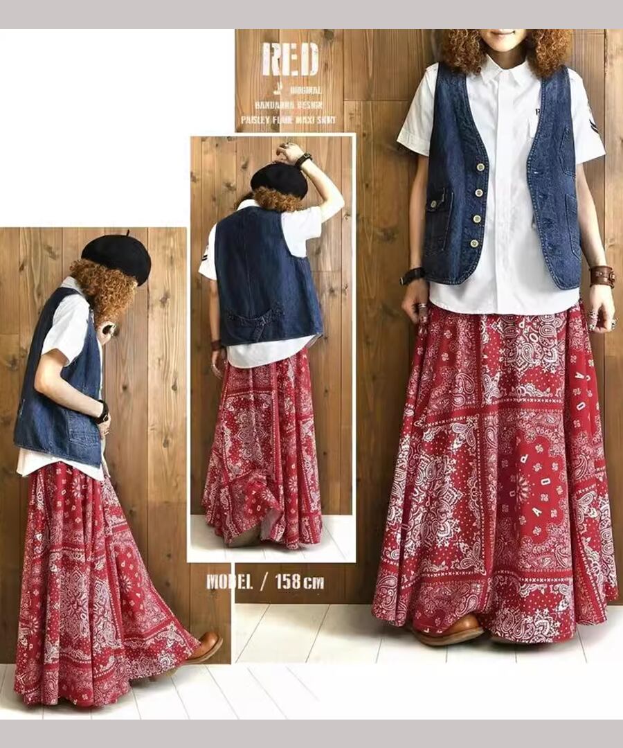 バンダナ柄◆ロングフレアスカート【s-60171】