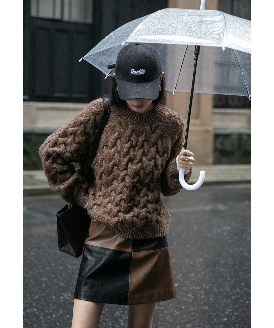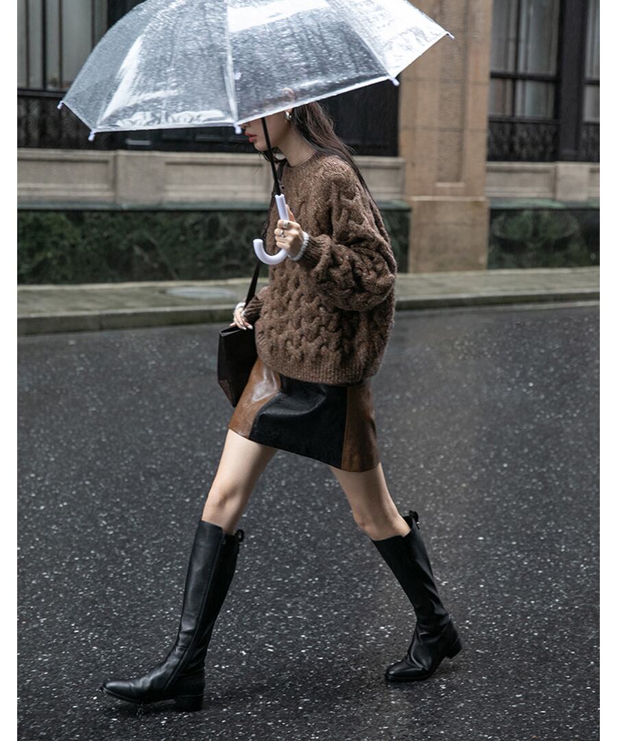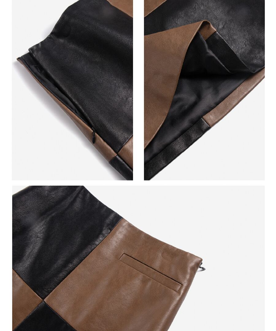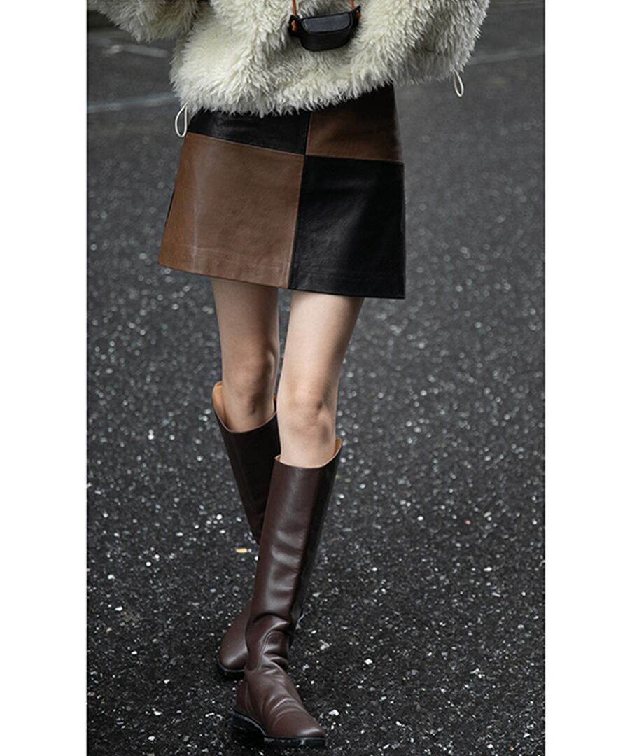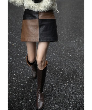 ブロックステッチレザースカート【s-60176】