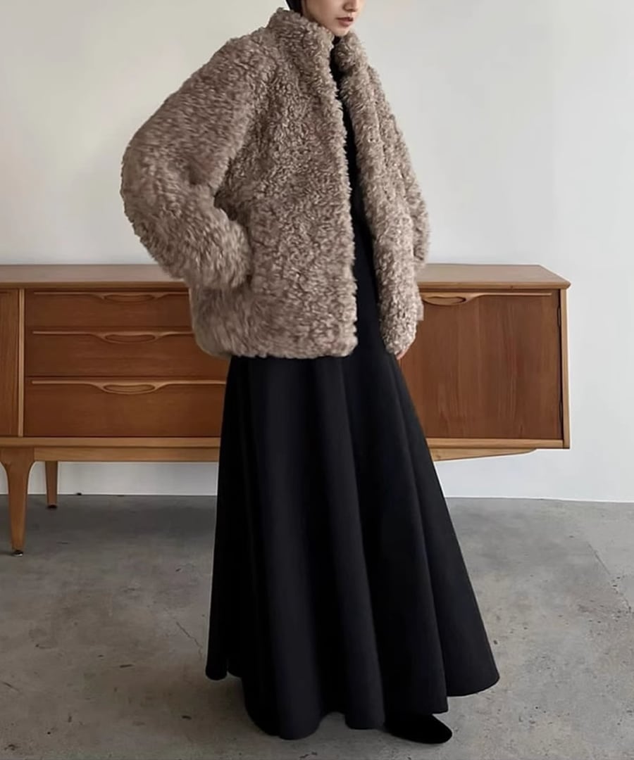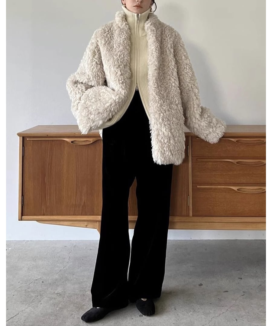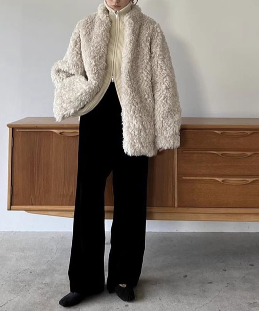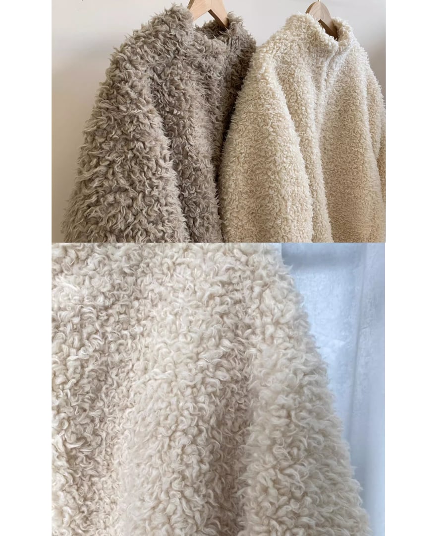 柔らかなテディベア素材を使用したショートコートは、寒い季節にぴったりのアイテムです。