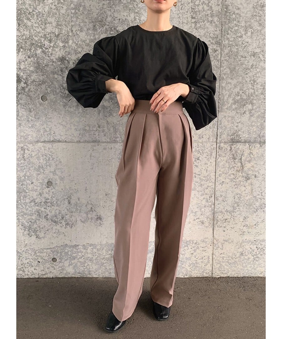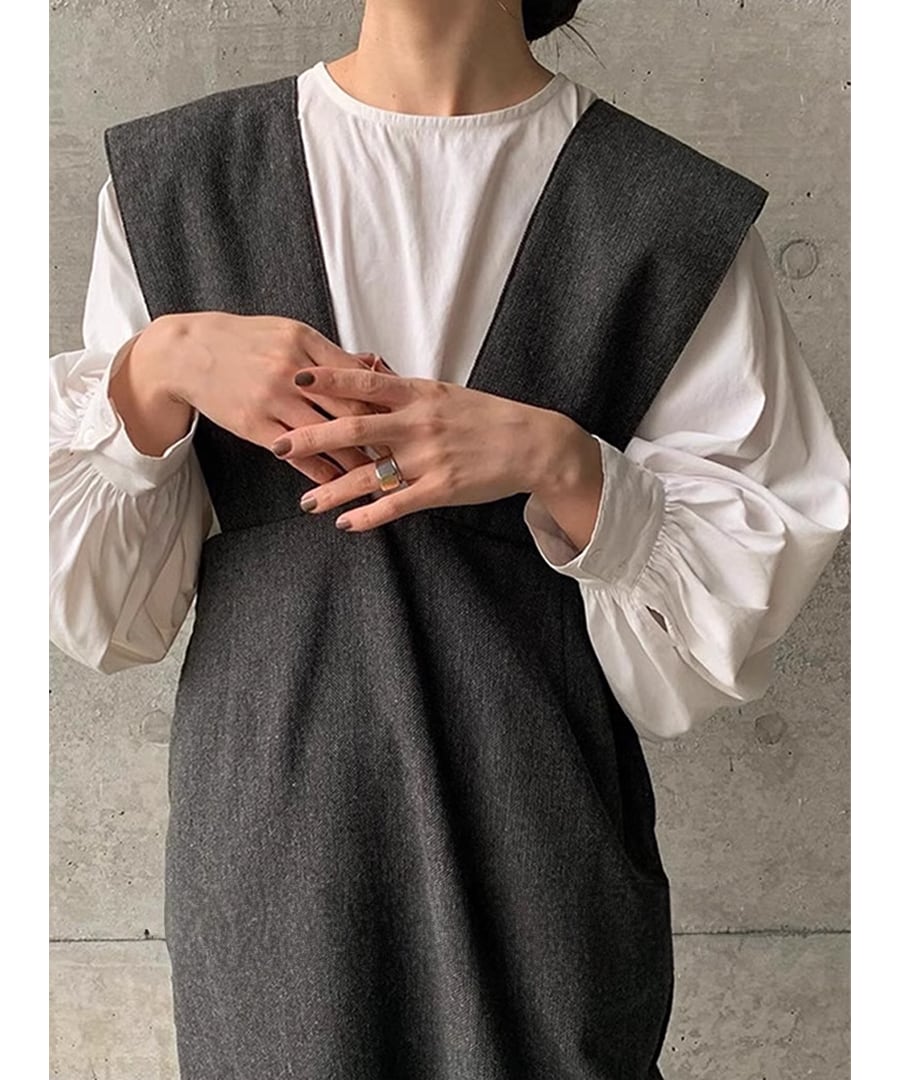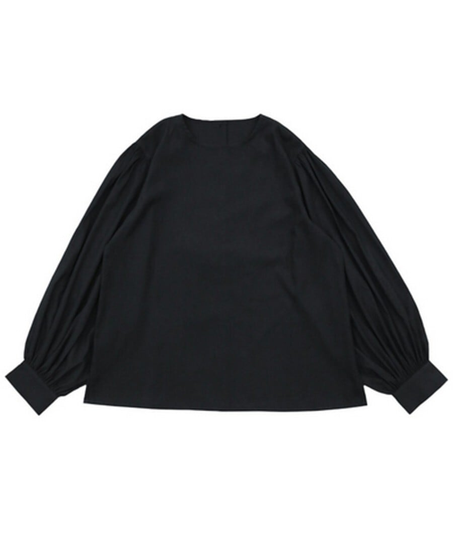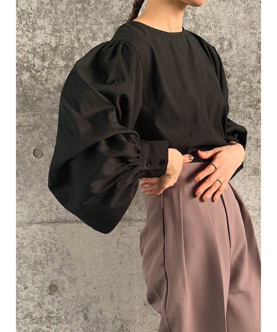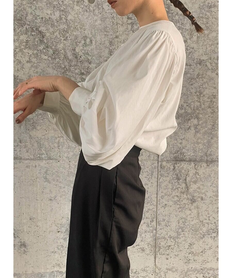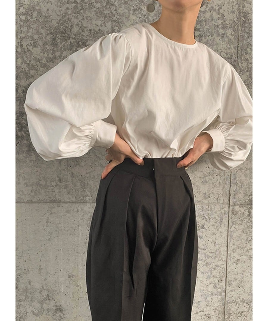 エレガントさを引き立てるバルーンスリーブ◆ノーカラーシャツ。