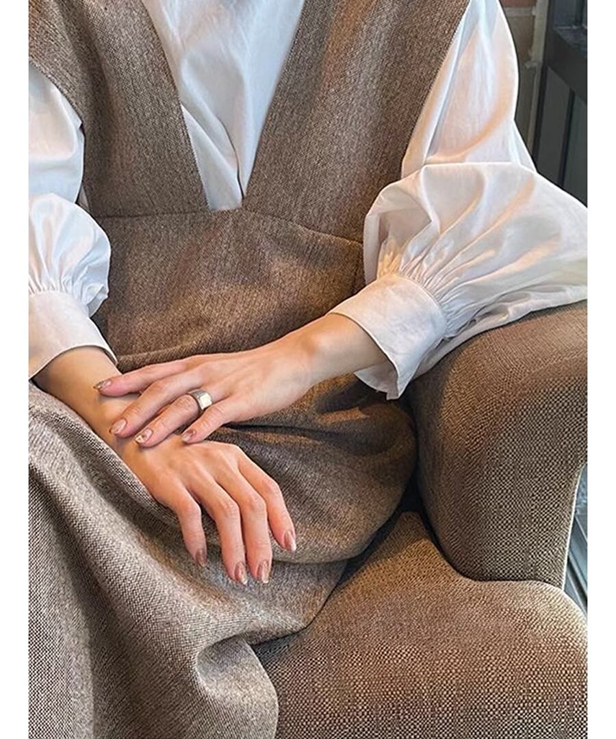 バルーンスリーブ◆ノーカラーシャツ【t-10491】