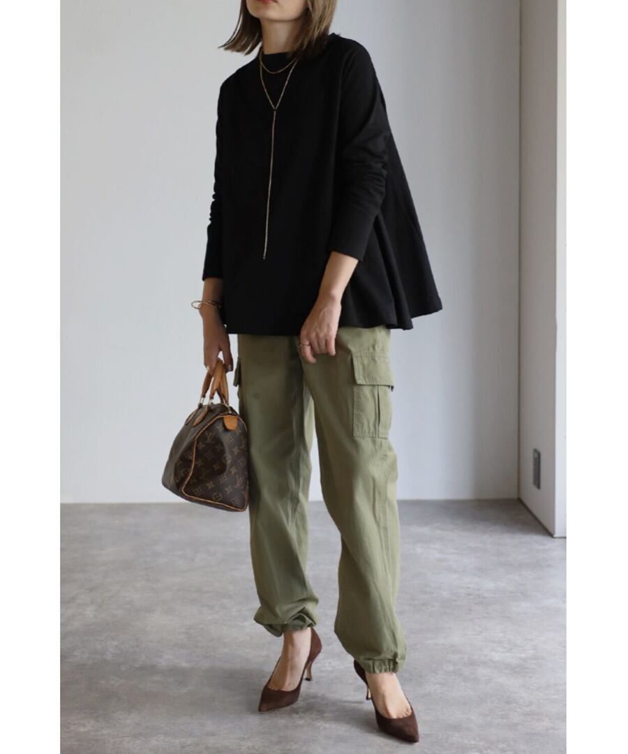 トップスと同色のボトムと合わせてセットアップ風に。