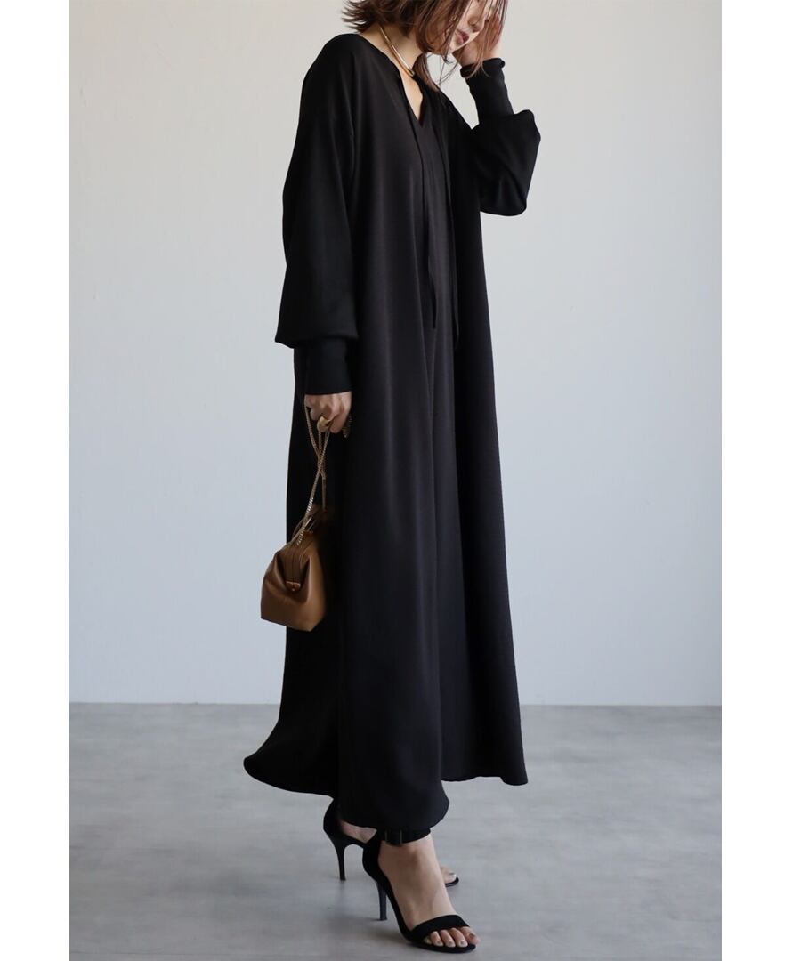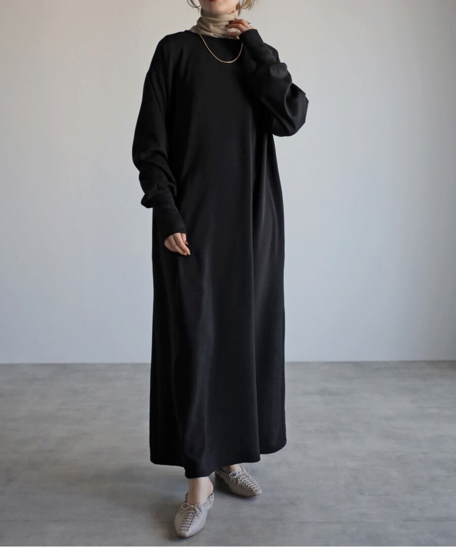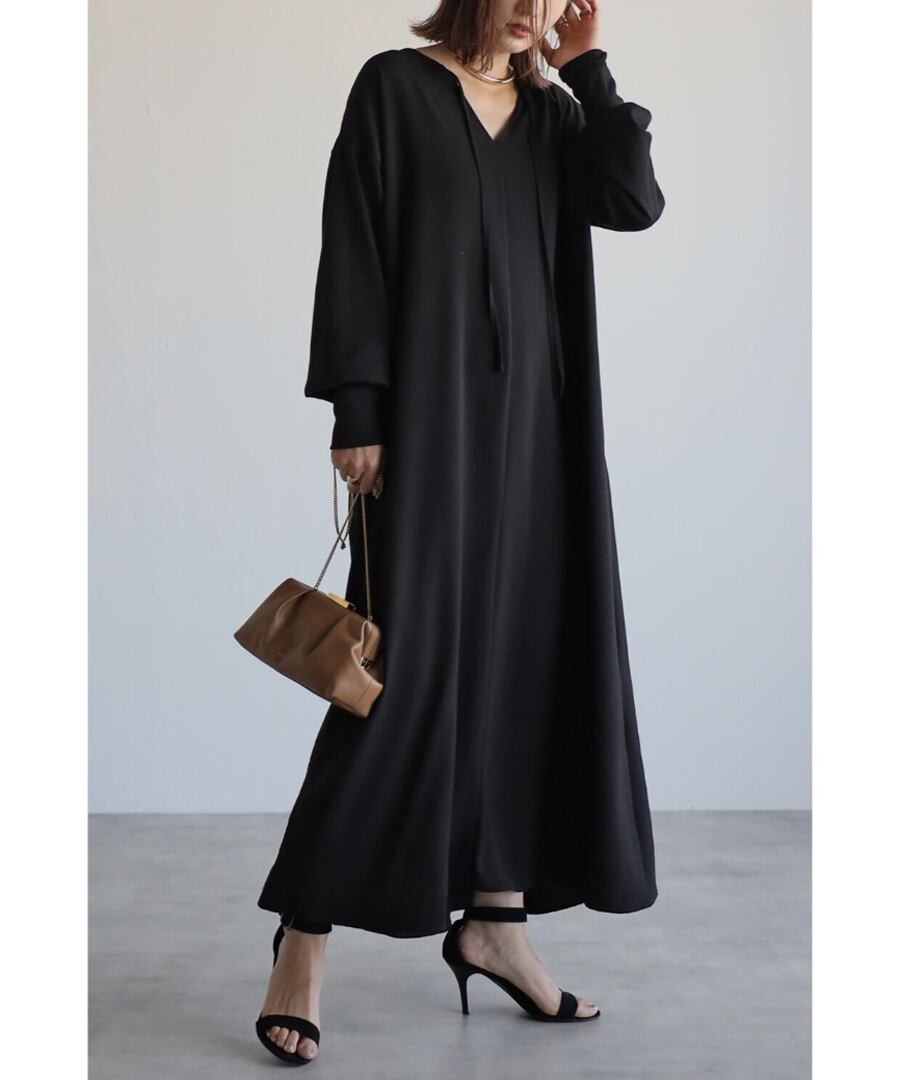 1枚で着るだけで決まるワンピースはブラックのワントーンコーデが特にオススメです。