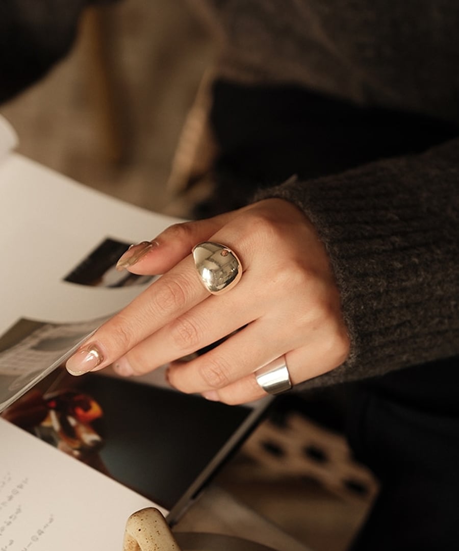 大ぶりなリングが目を惹く。