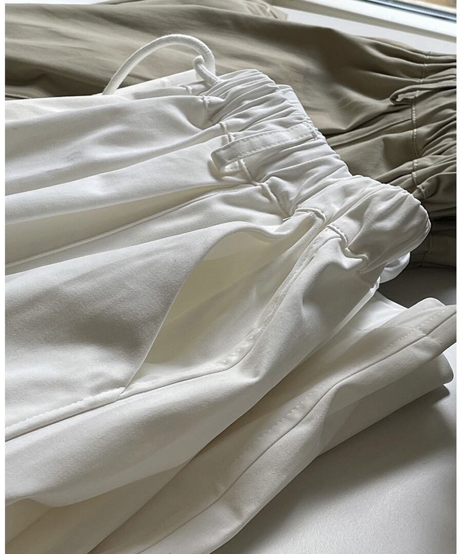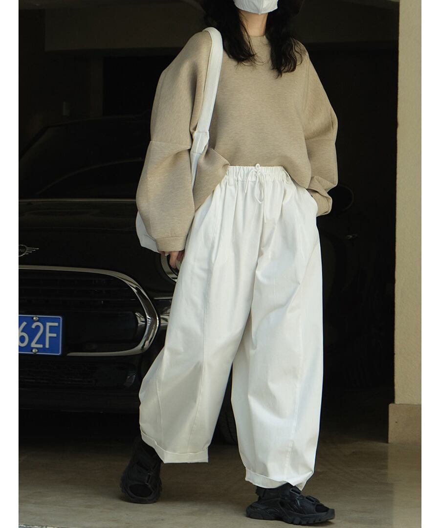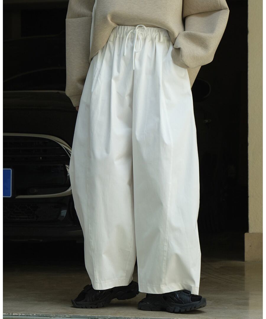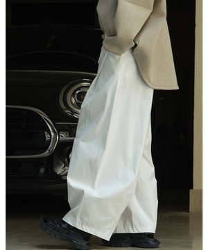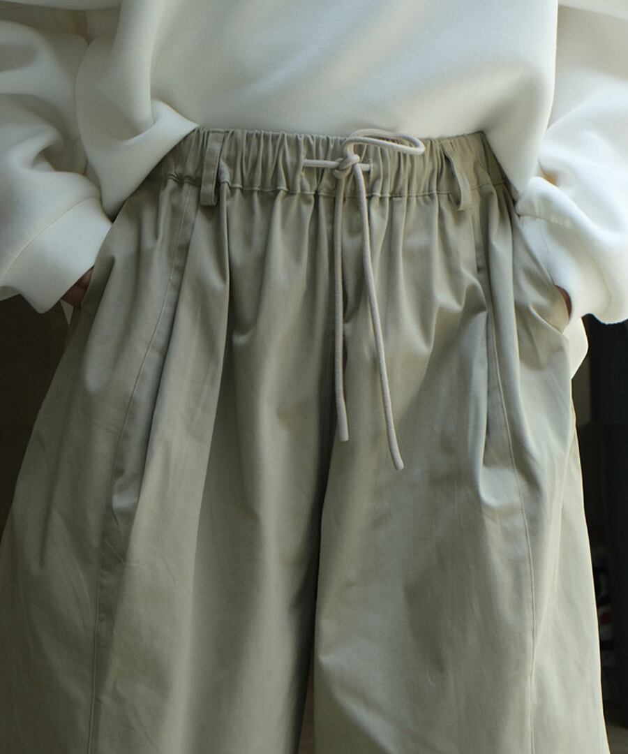 適度な伸縮性を兼ね備えたワイドパンツ。