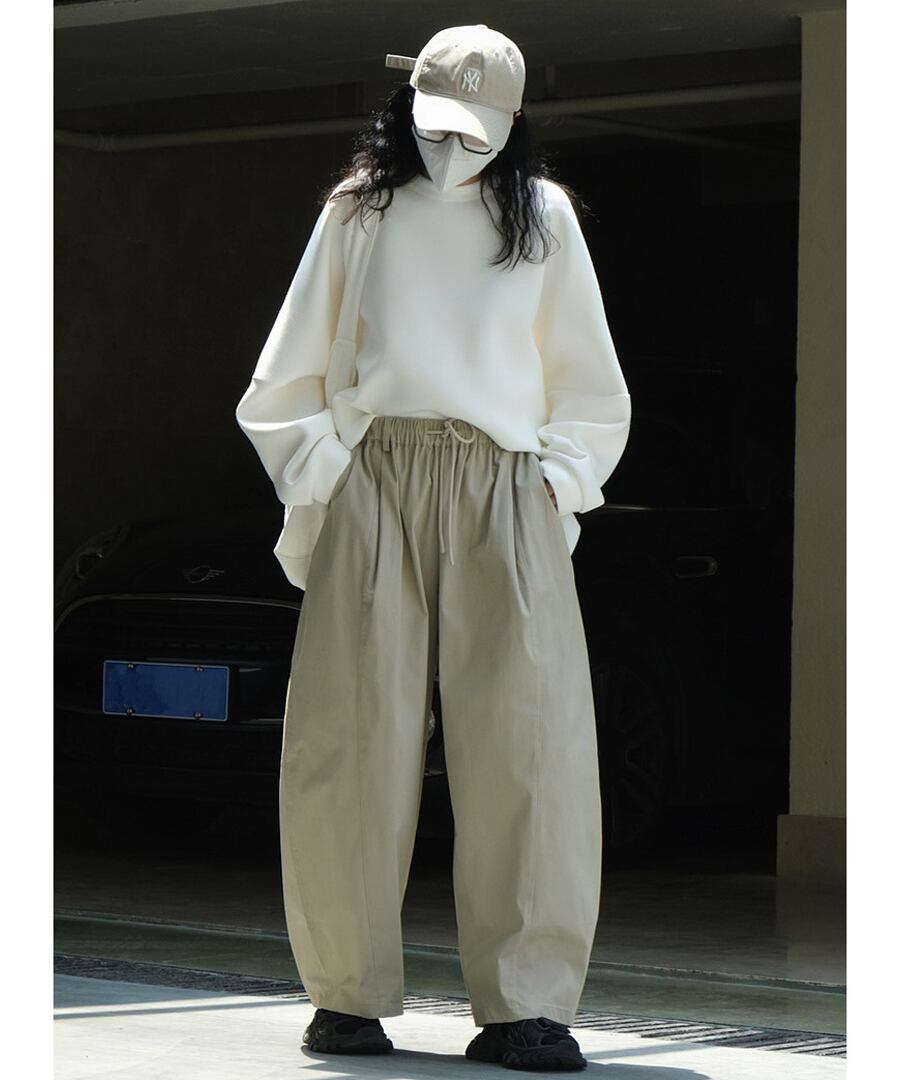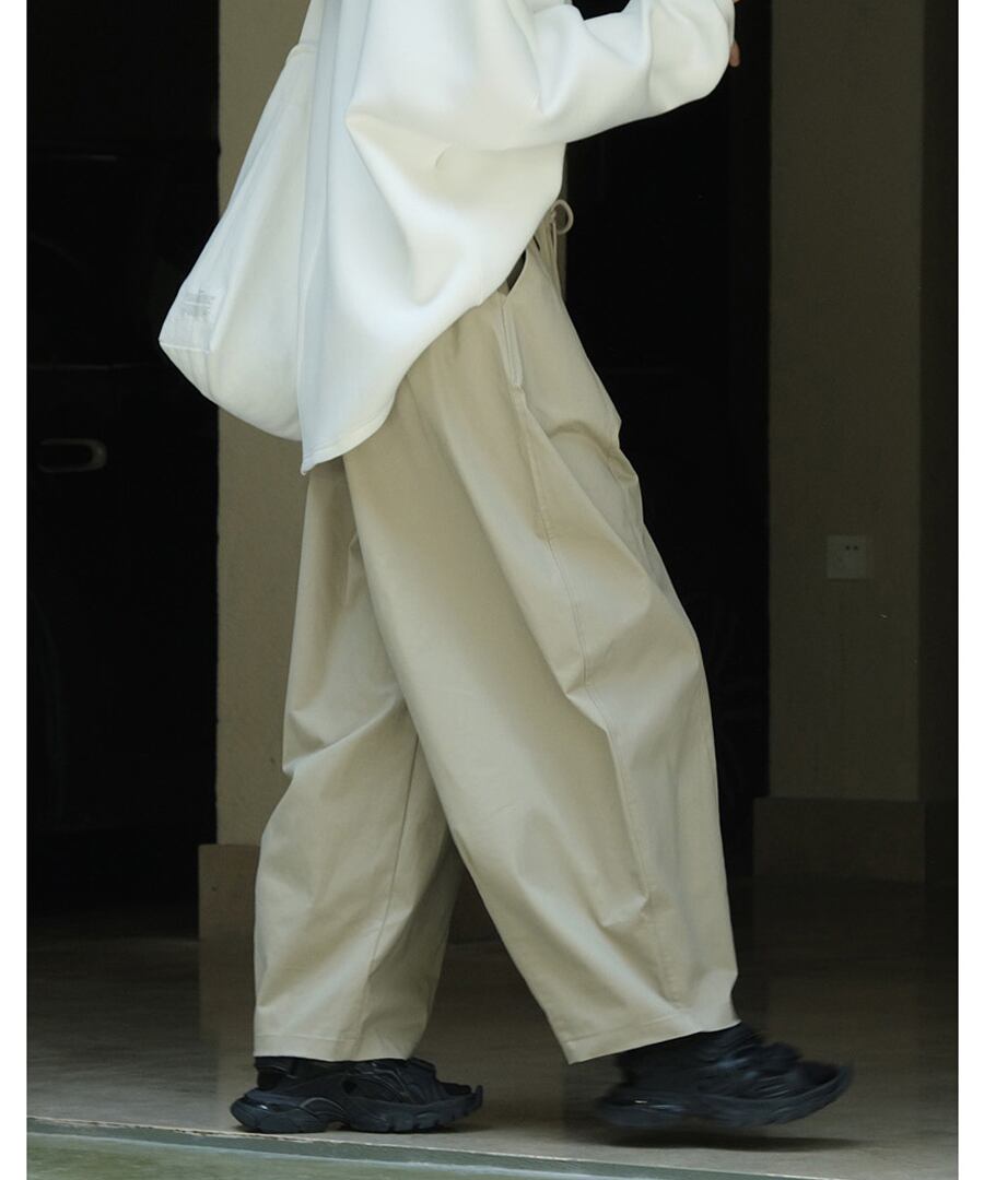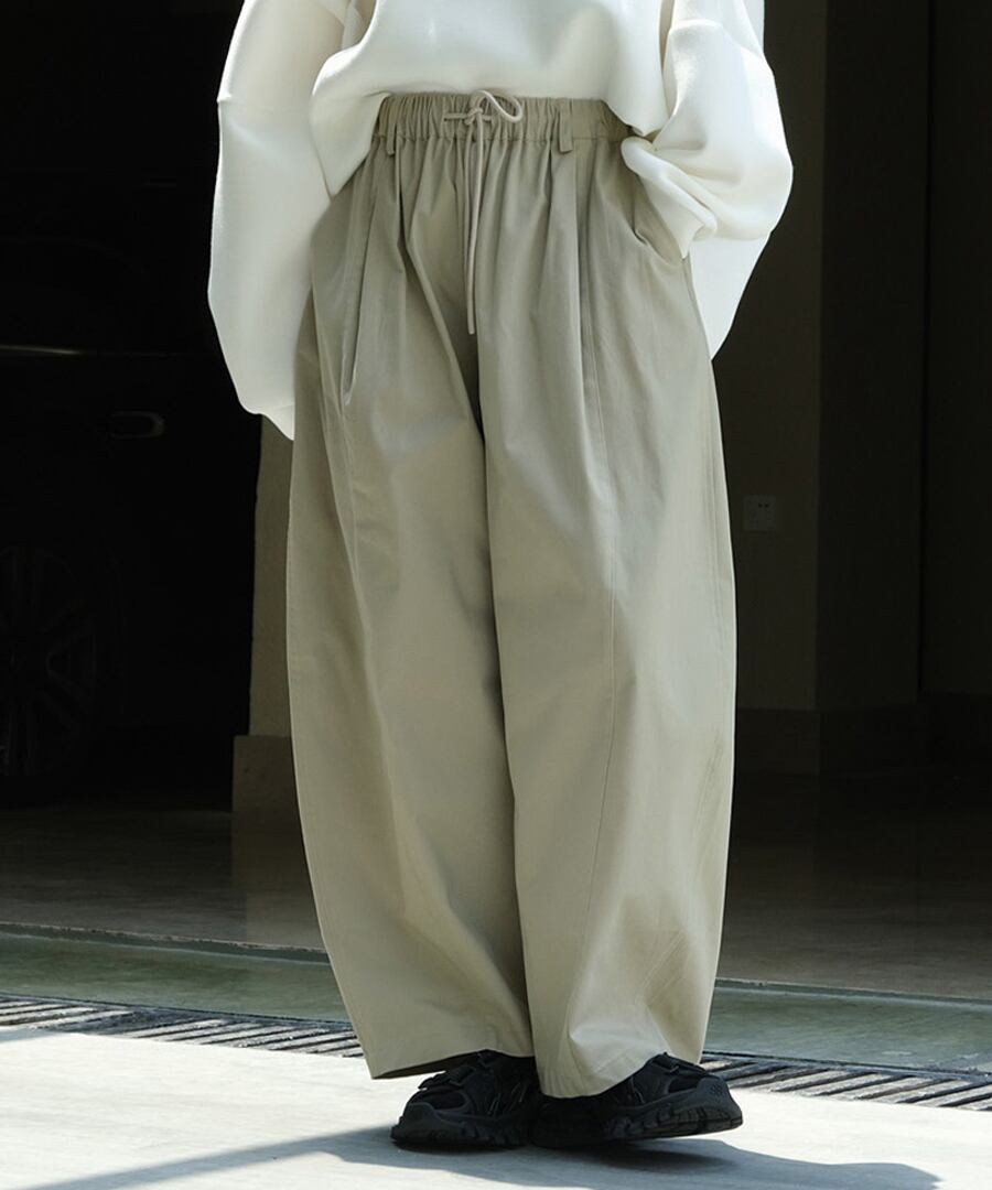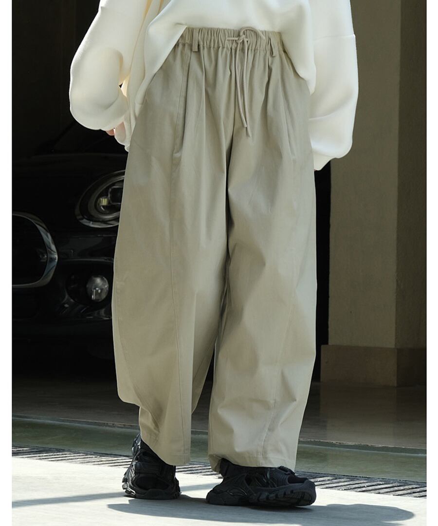 適度な伸縮性を兼ね備えたワイドパンツ。