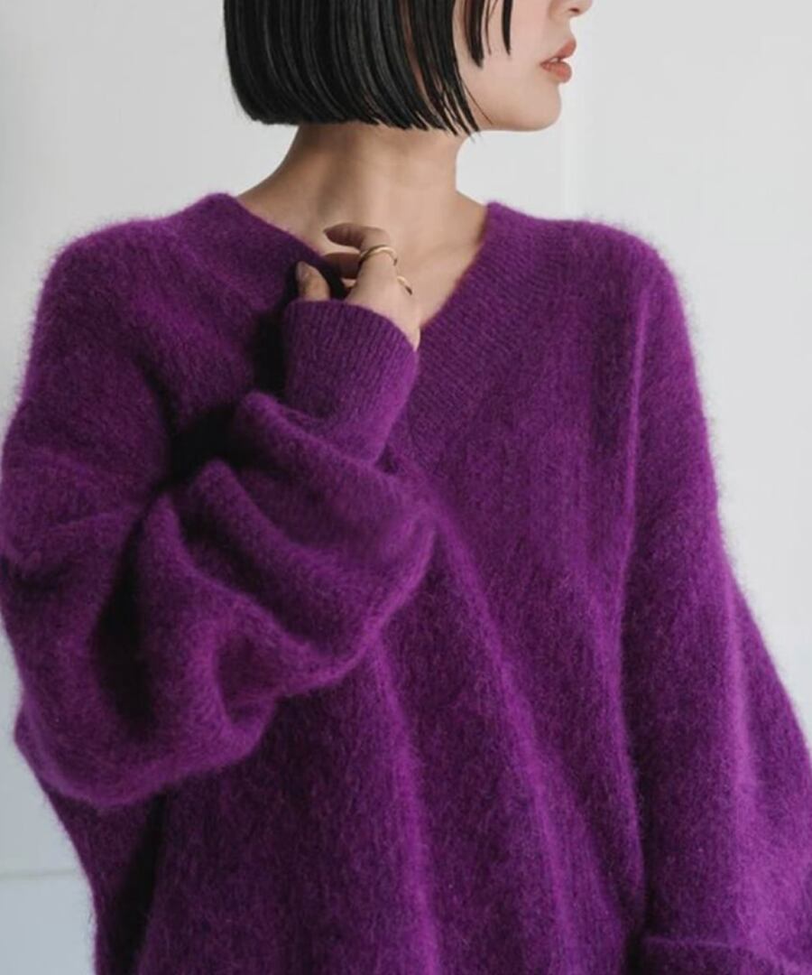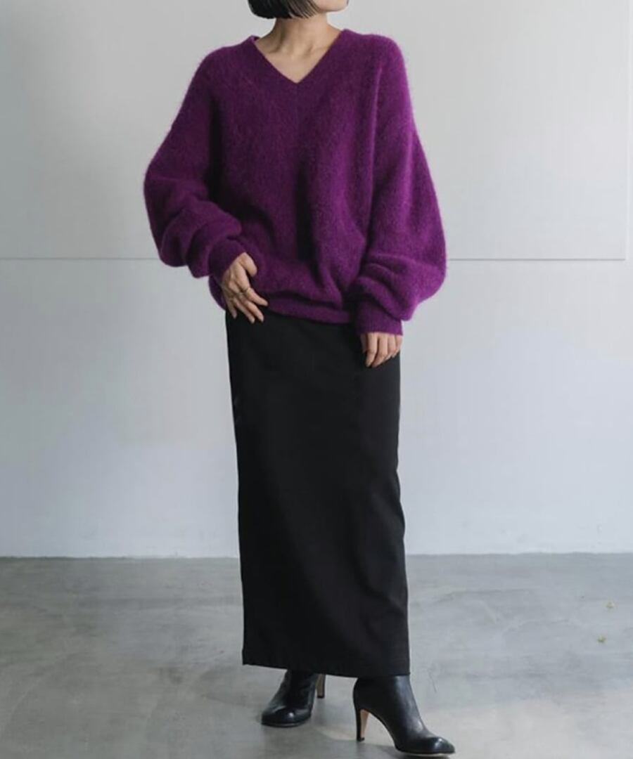 モヘア混ならではのふんわり感が、フォルムに柔らかなニュアンスを与えます。