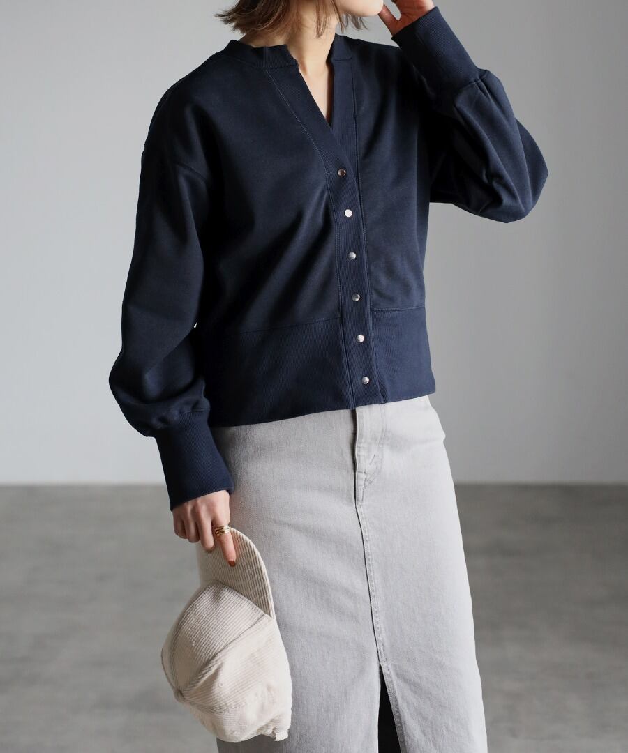 アップサイクルキーネックスナップカーディガン【t-10610】.
