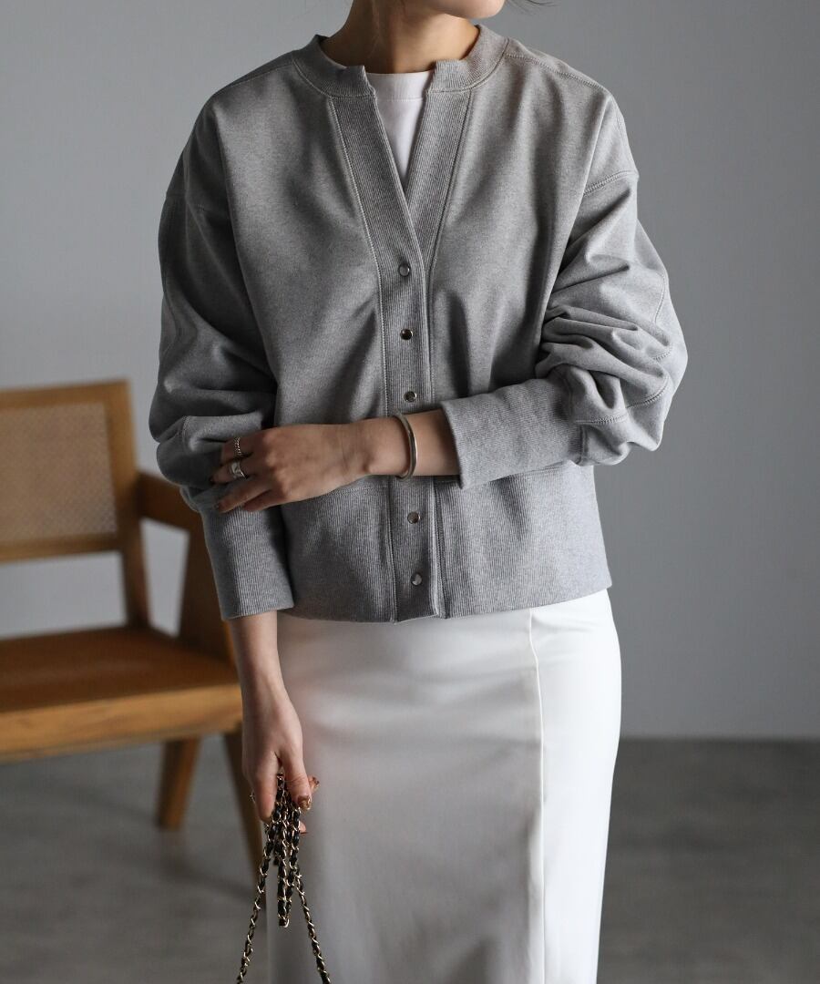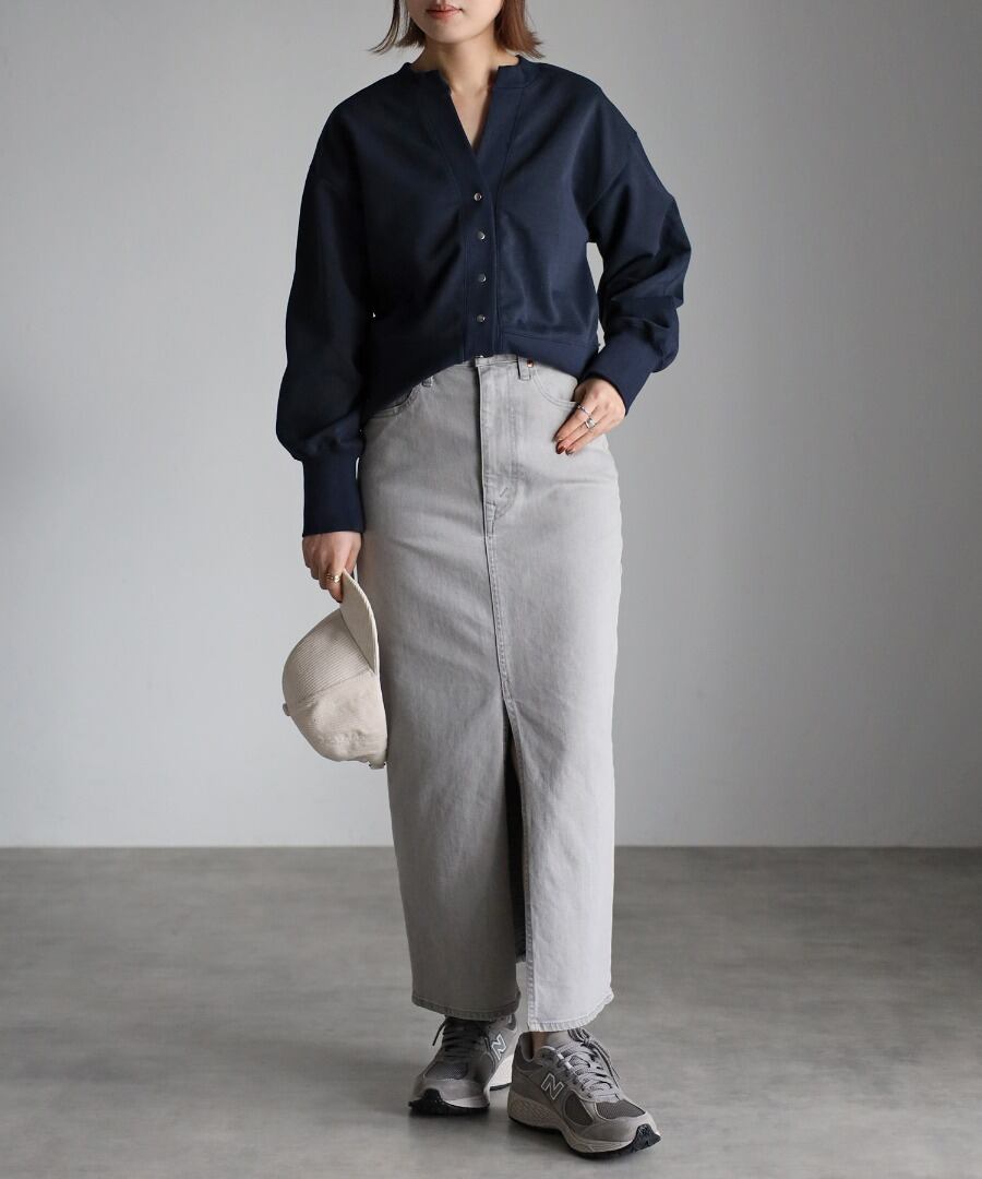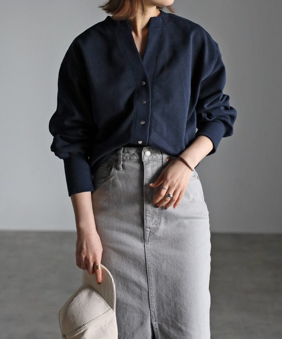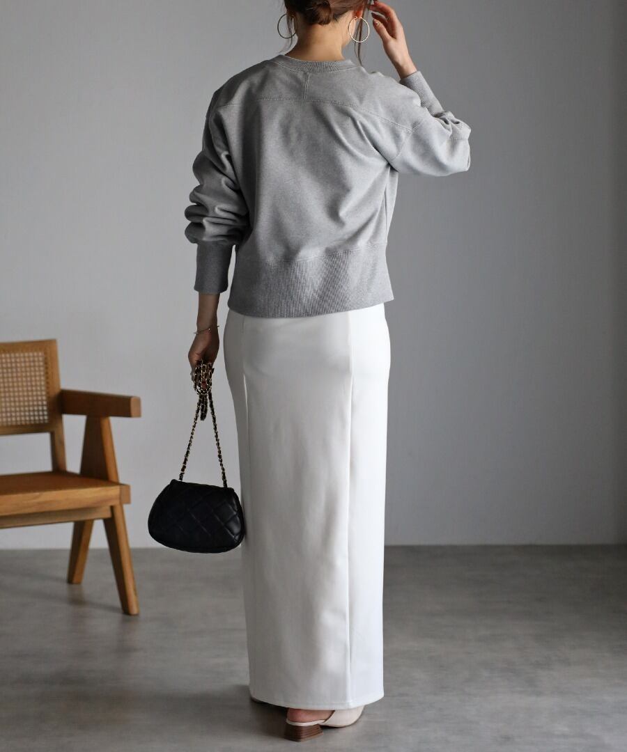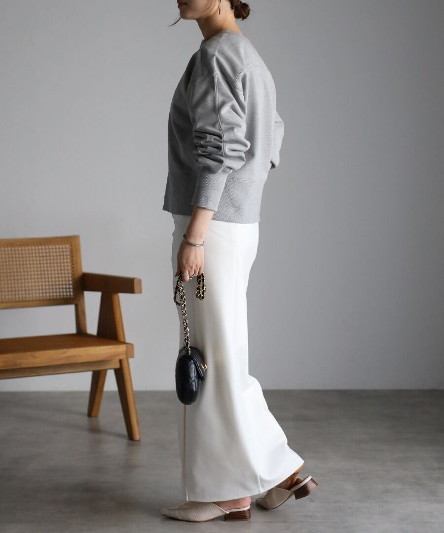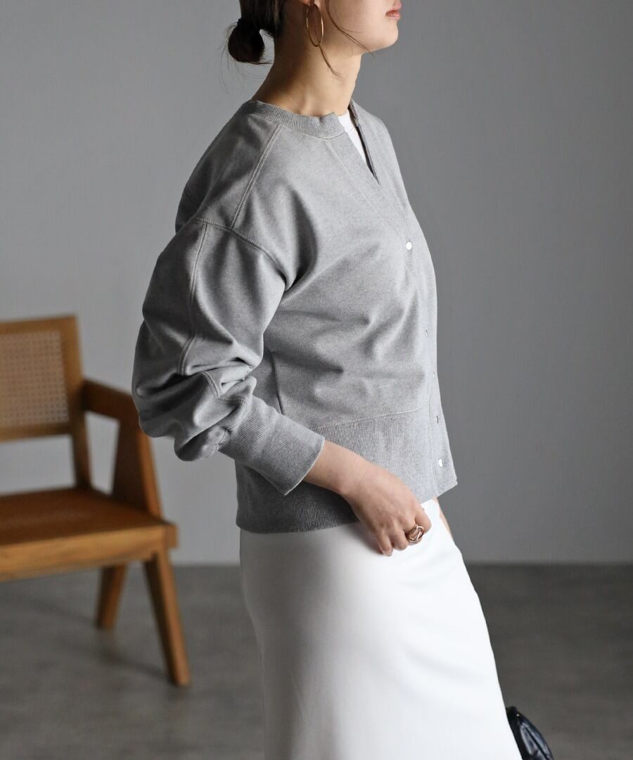 着回しやすいスウェット素材で、大人カジュアルに着こなせる万能アイテムです。