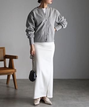 デコルテを綺麗に見せてくれるキーネックデザインのカーディガン