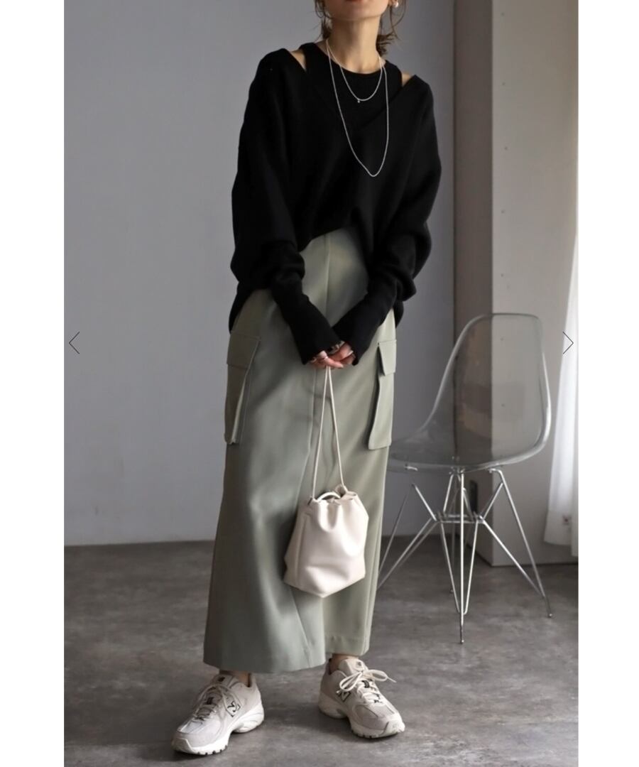 セットで着用した時のさり気ない肌見せが女性らしい着こなしに仕上がるポイントです。