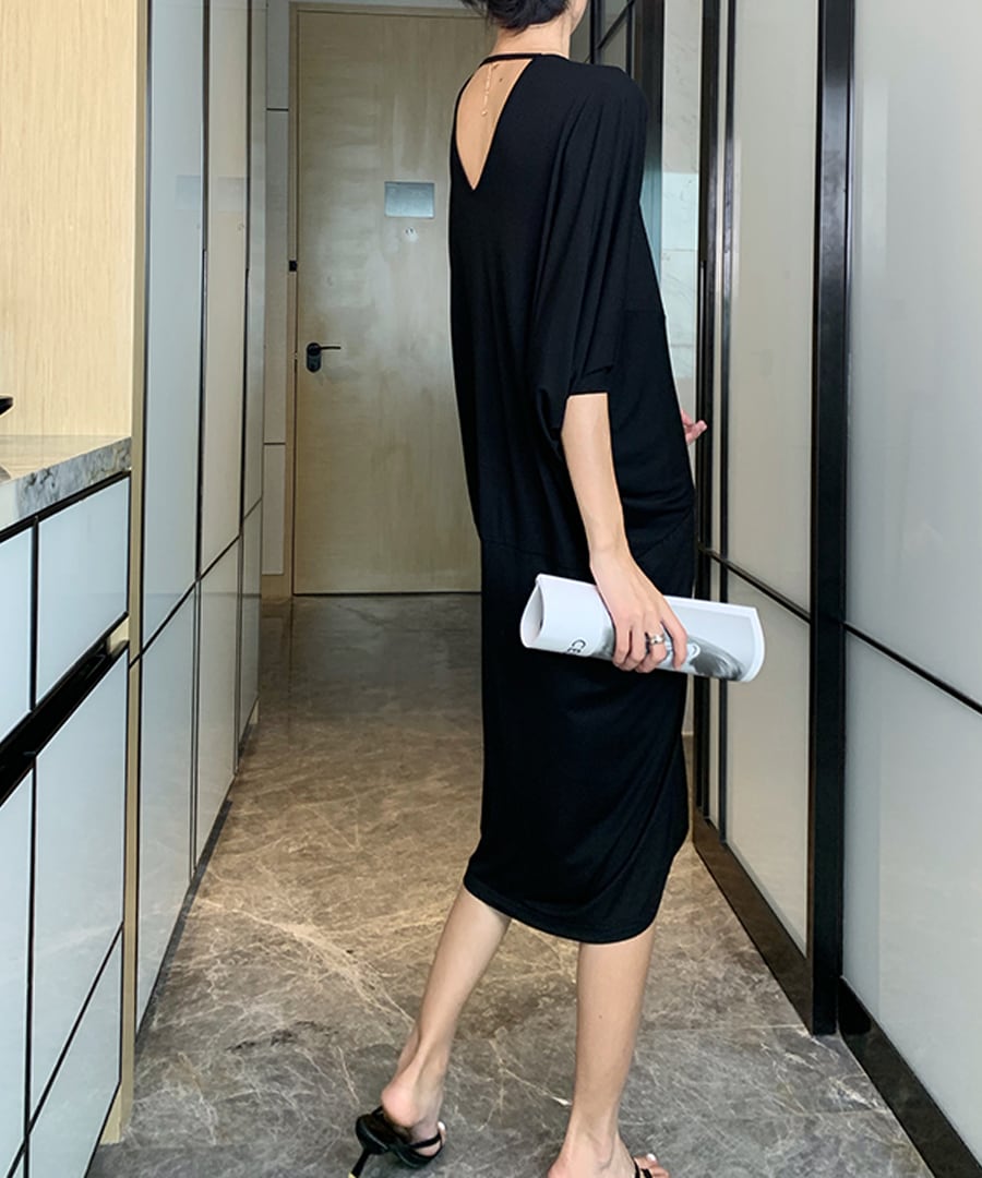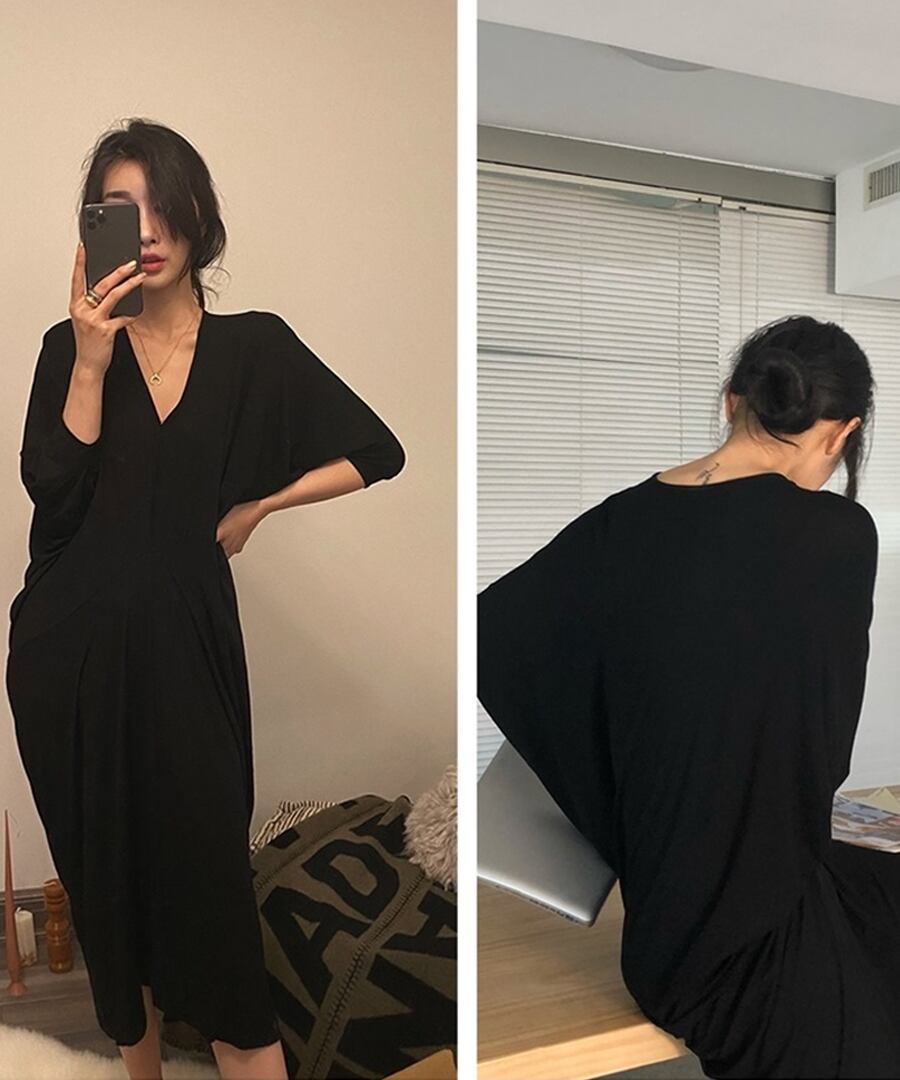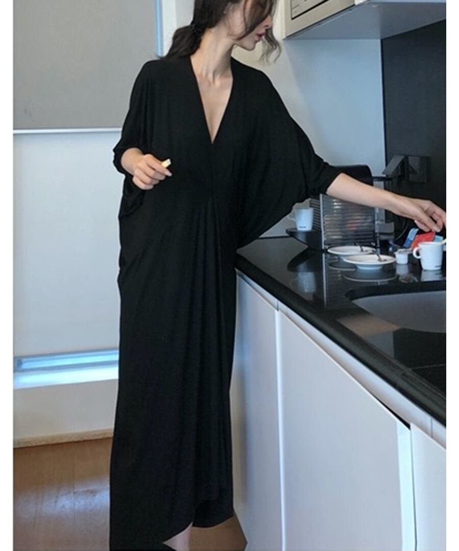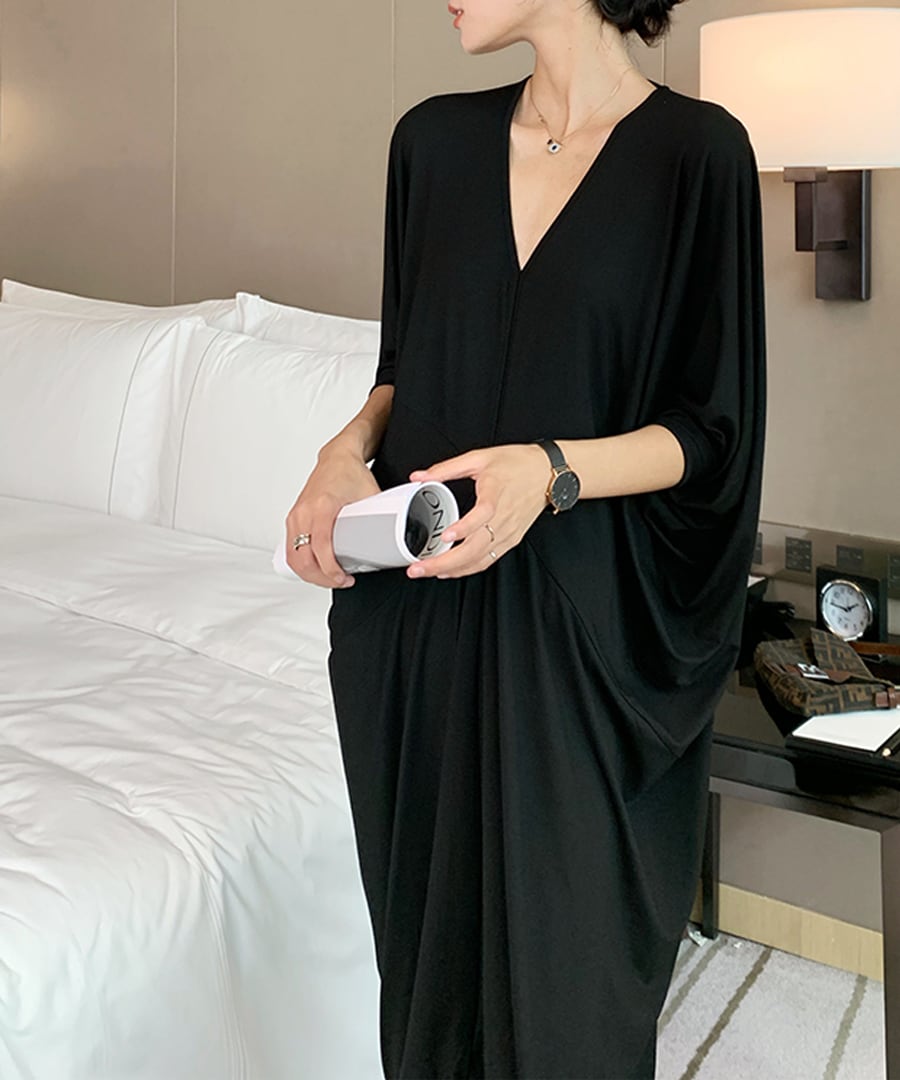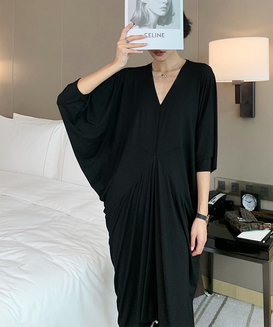 ドルマンスリーブVネックワンピース◆2タイプ【w-30289】