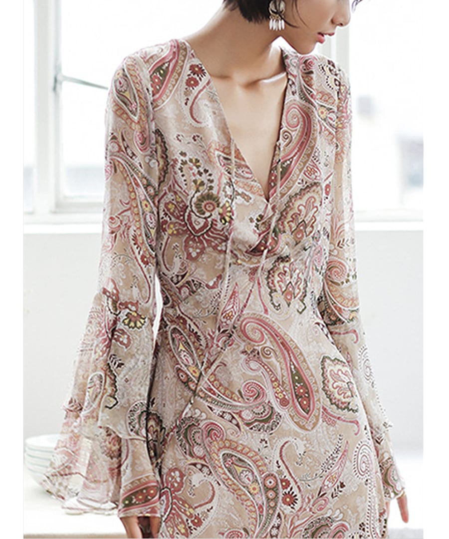 ペイズリーシフォンワンピース◆チュニック【w-30290】