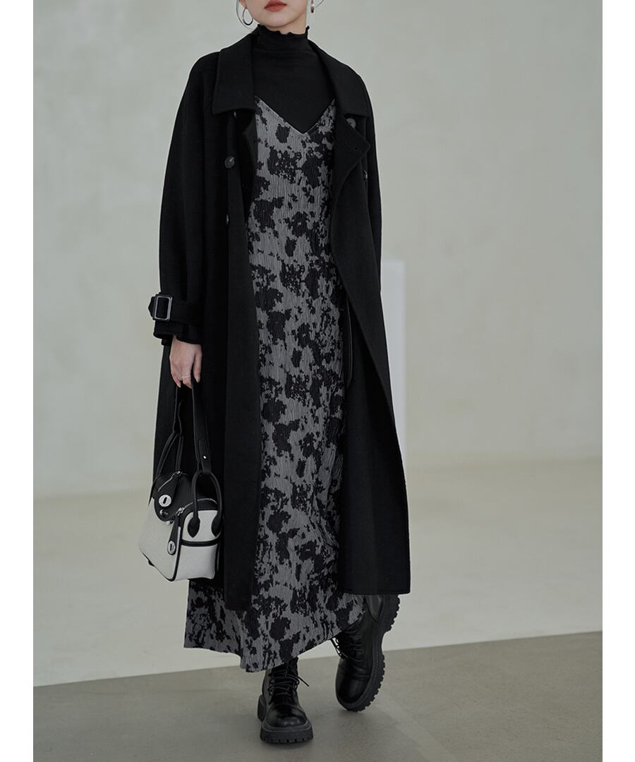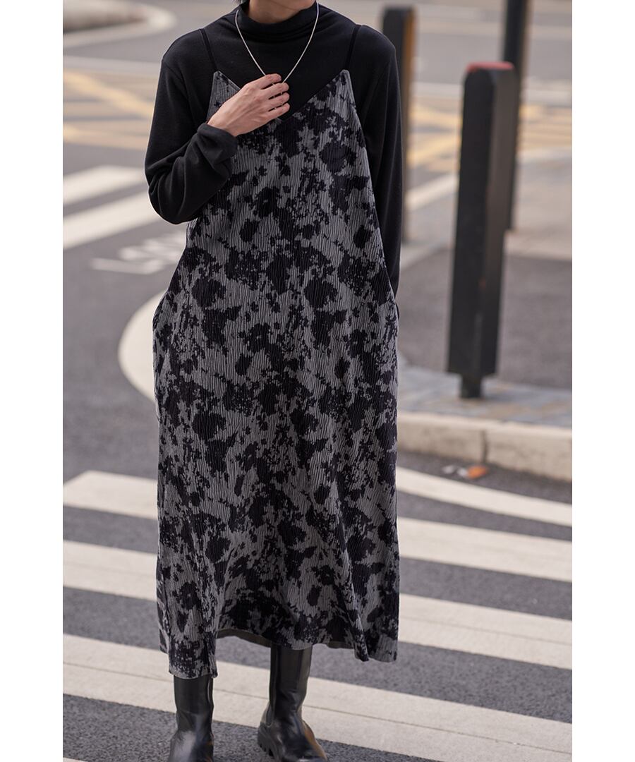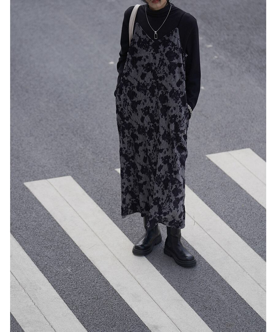 シックなVネックデザインのキャミワンピ