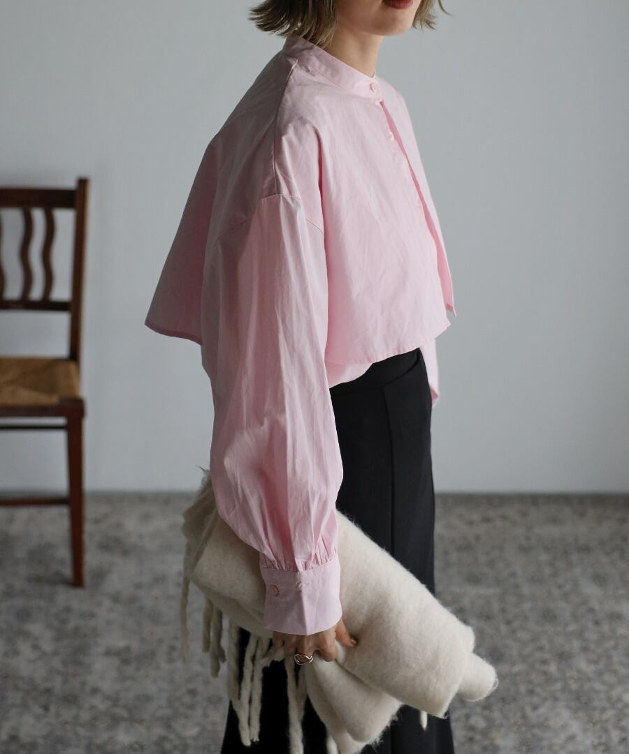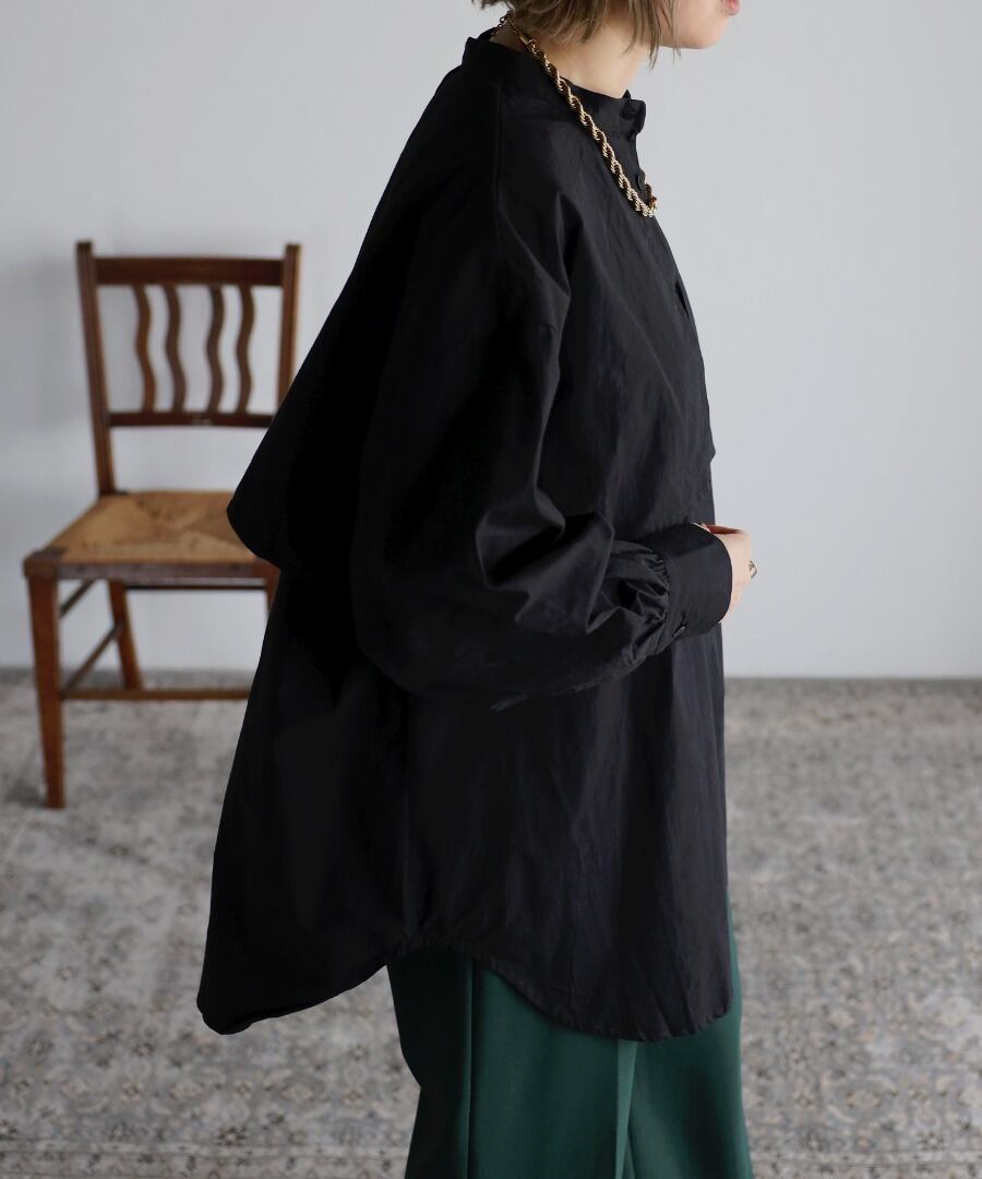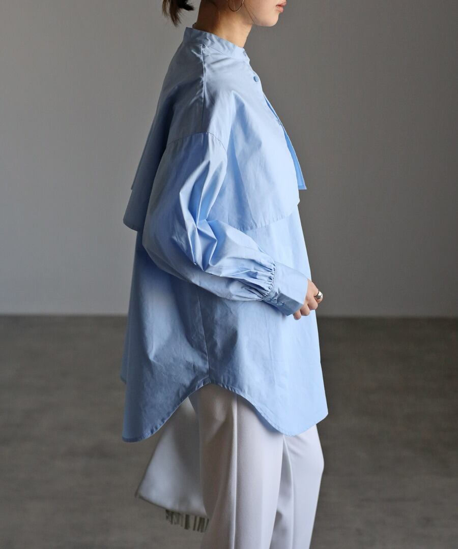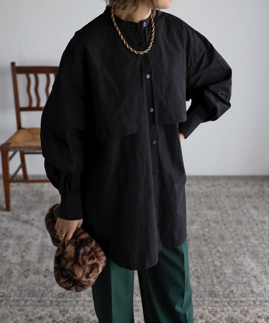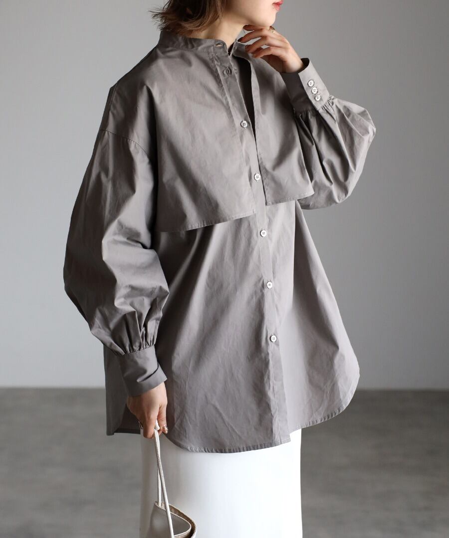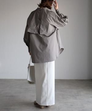 すっきりしたスタンドカラーにあしらったケープデザインで今年らしさ抜群。