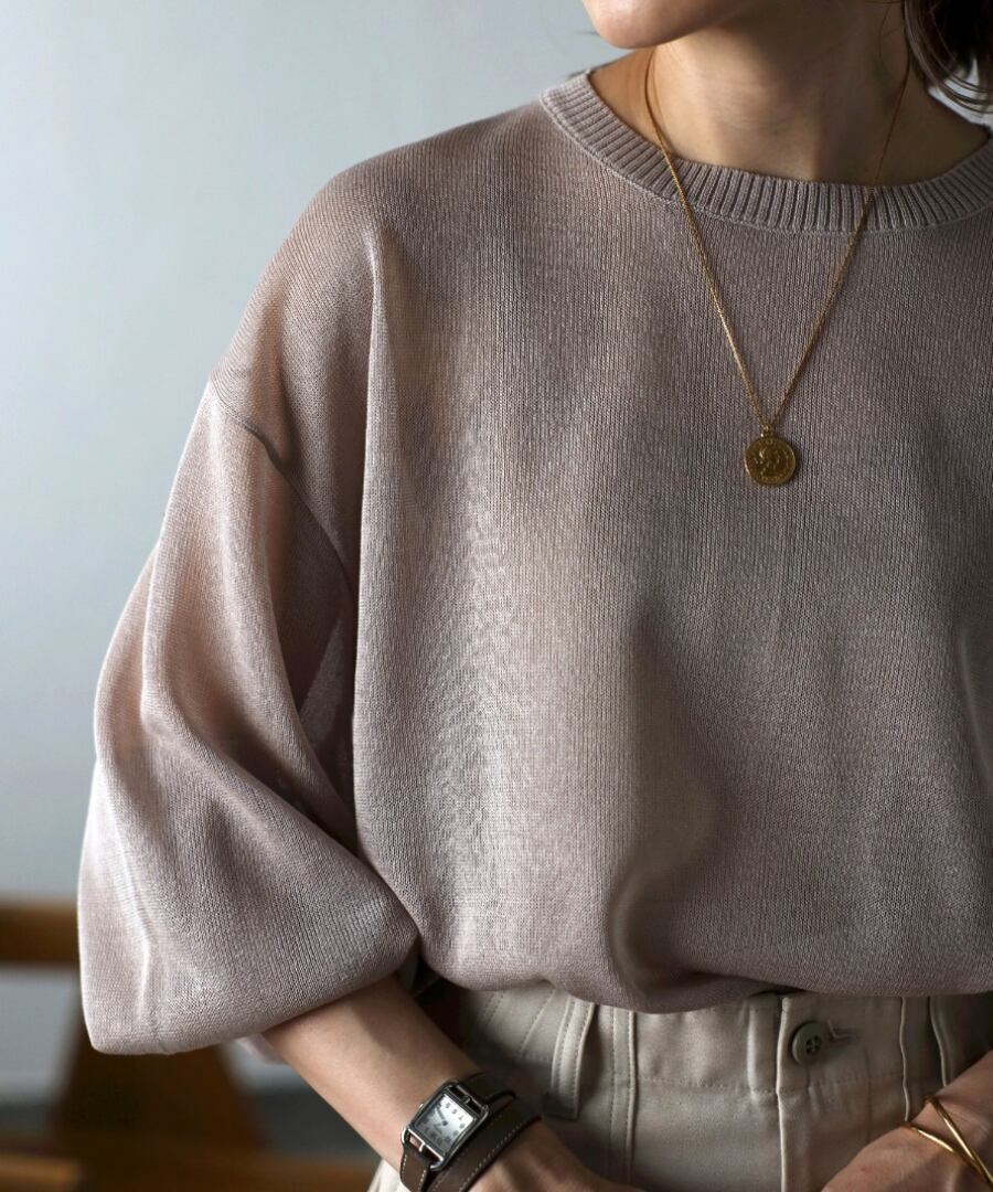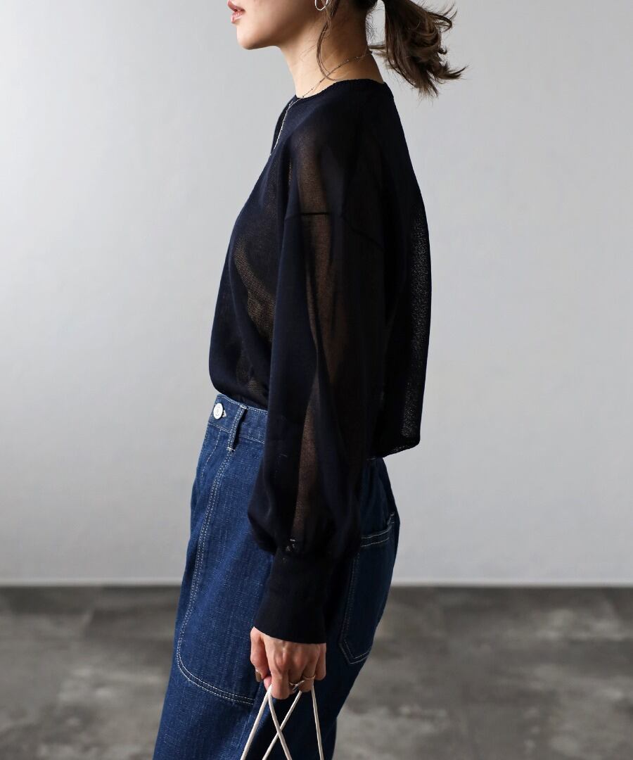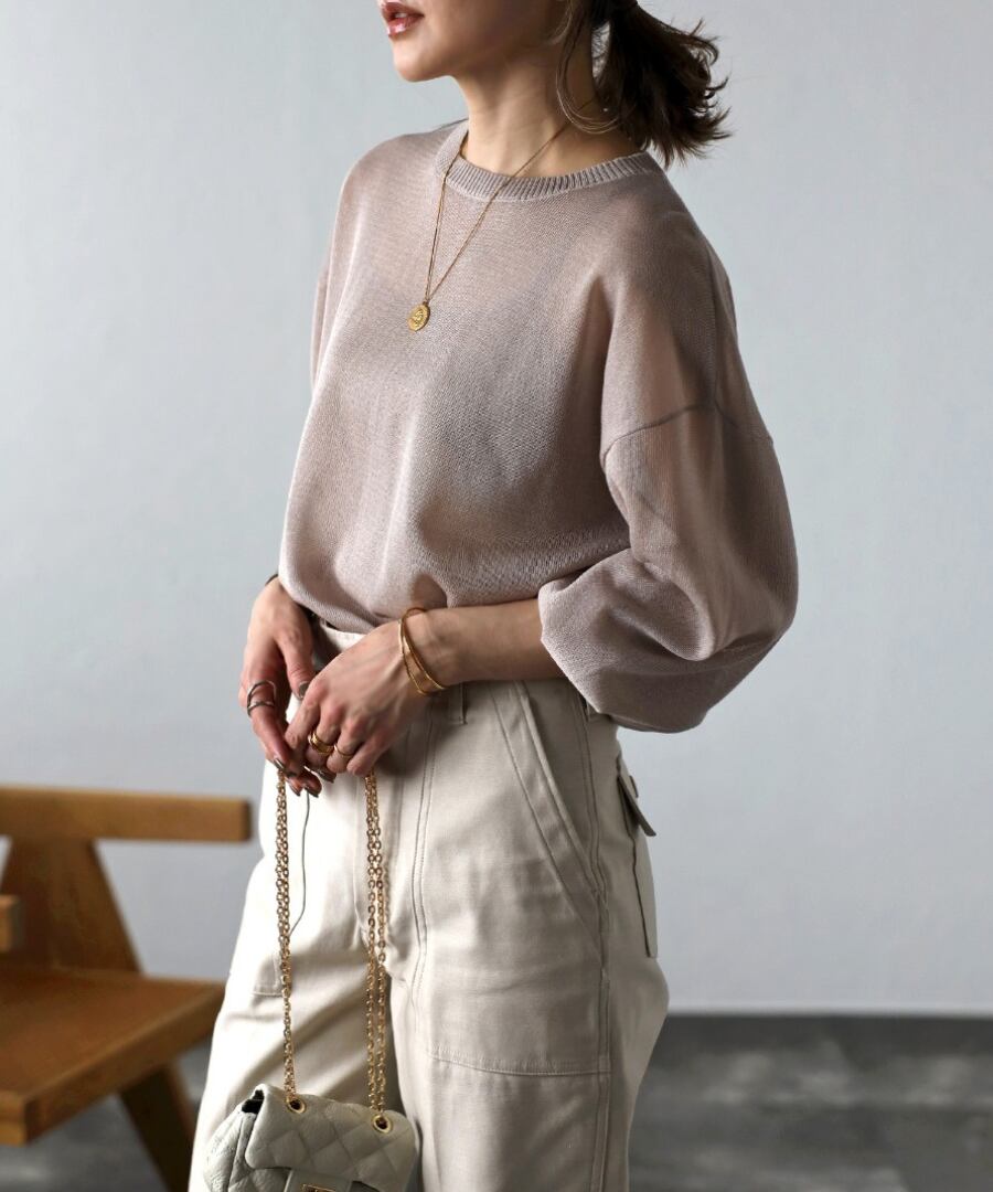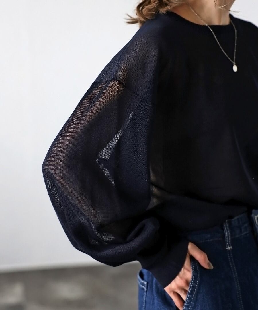 程よい透け感が大人っぽい、着回し力抜群のシアーニットプルオーバー