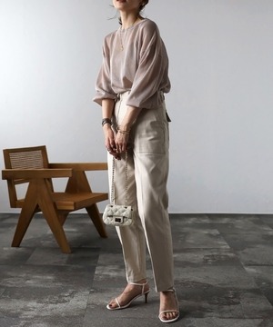 トレンド感のあるシアー素材で、インナーにキャミやタンクをレイヤードするだけでヘルシーなスタイルに。