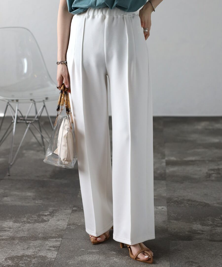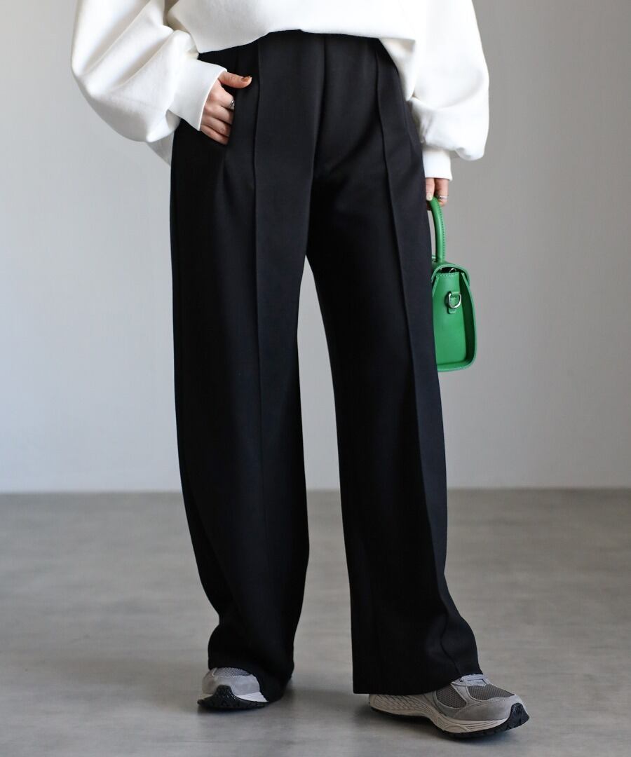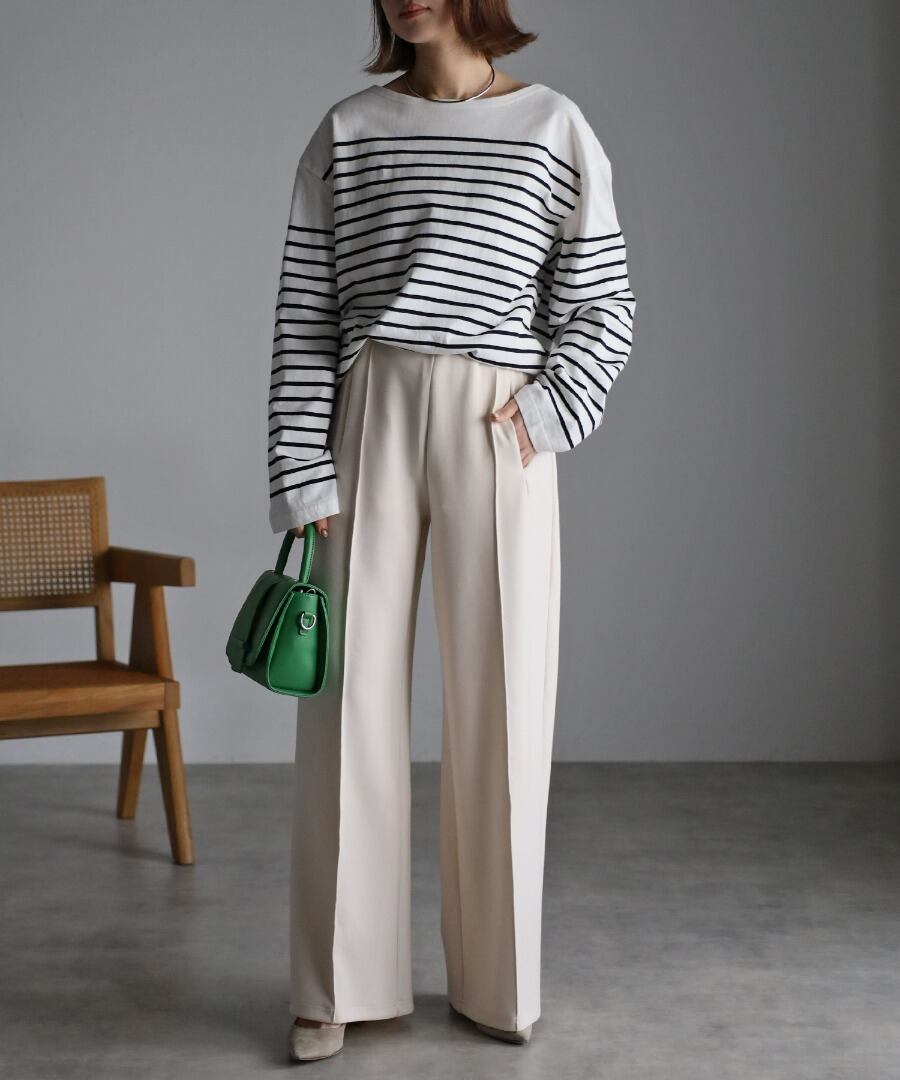 程よいサイズ感でストンとしたストレートシルエットの大人パンツ。