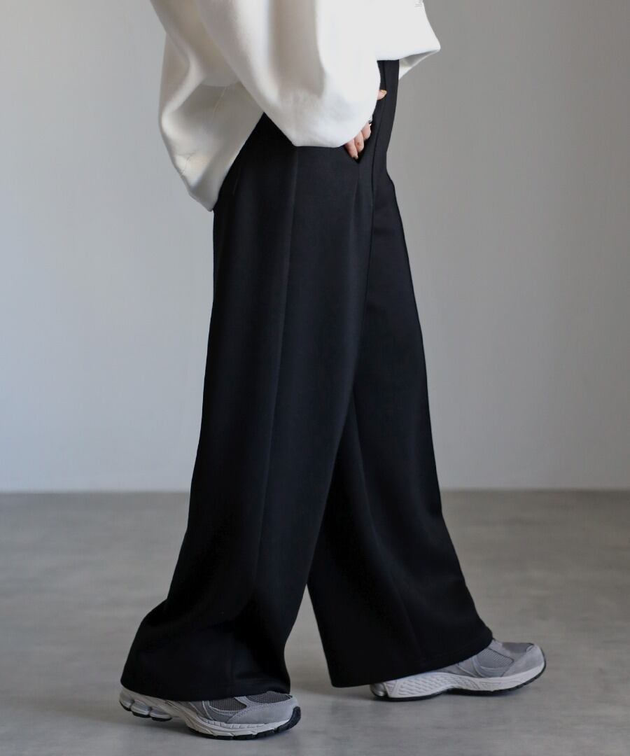 センタープレスと脇のスラッシュポケットが上品な印象です。