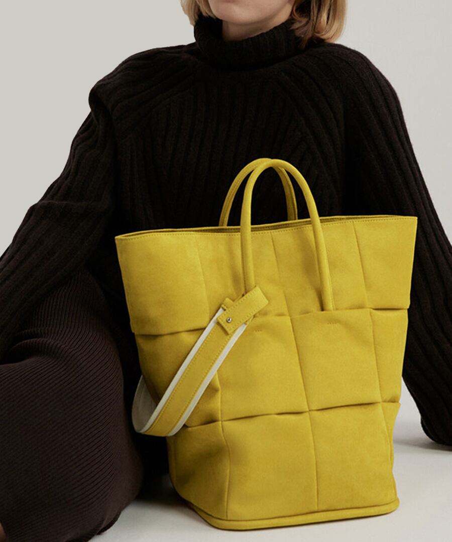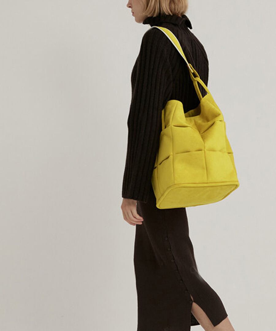 カラーが楽しめるバケットバッグ。