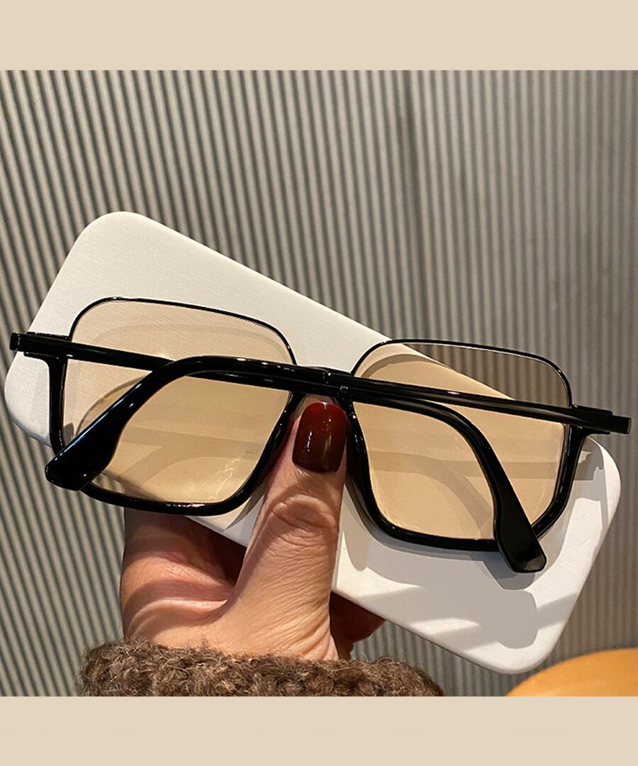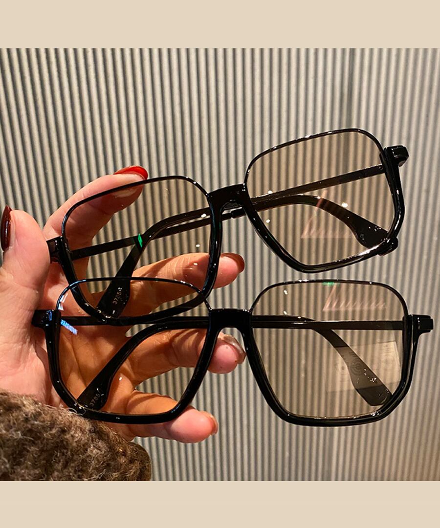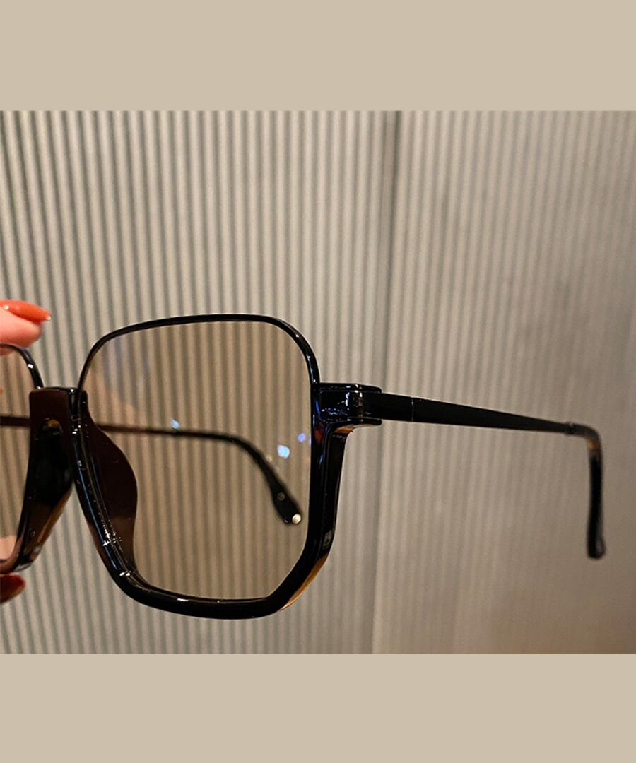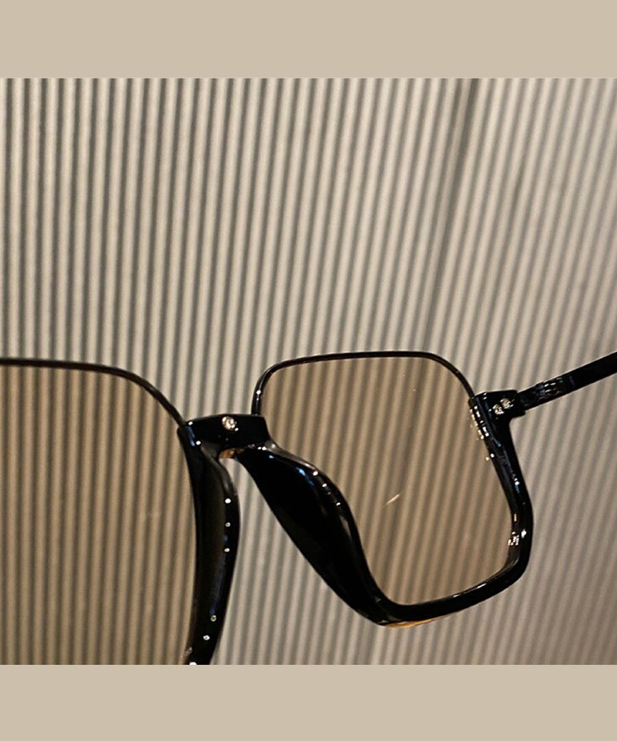 ブラックフレームがクールな雰囲気を演出し、スクエア型のレンズが顔をすっきりと見せてくれます。
