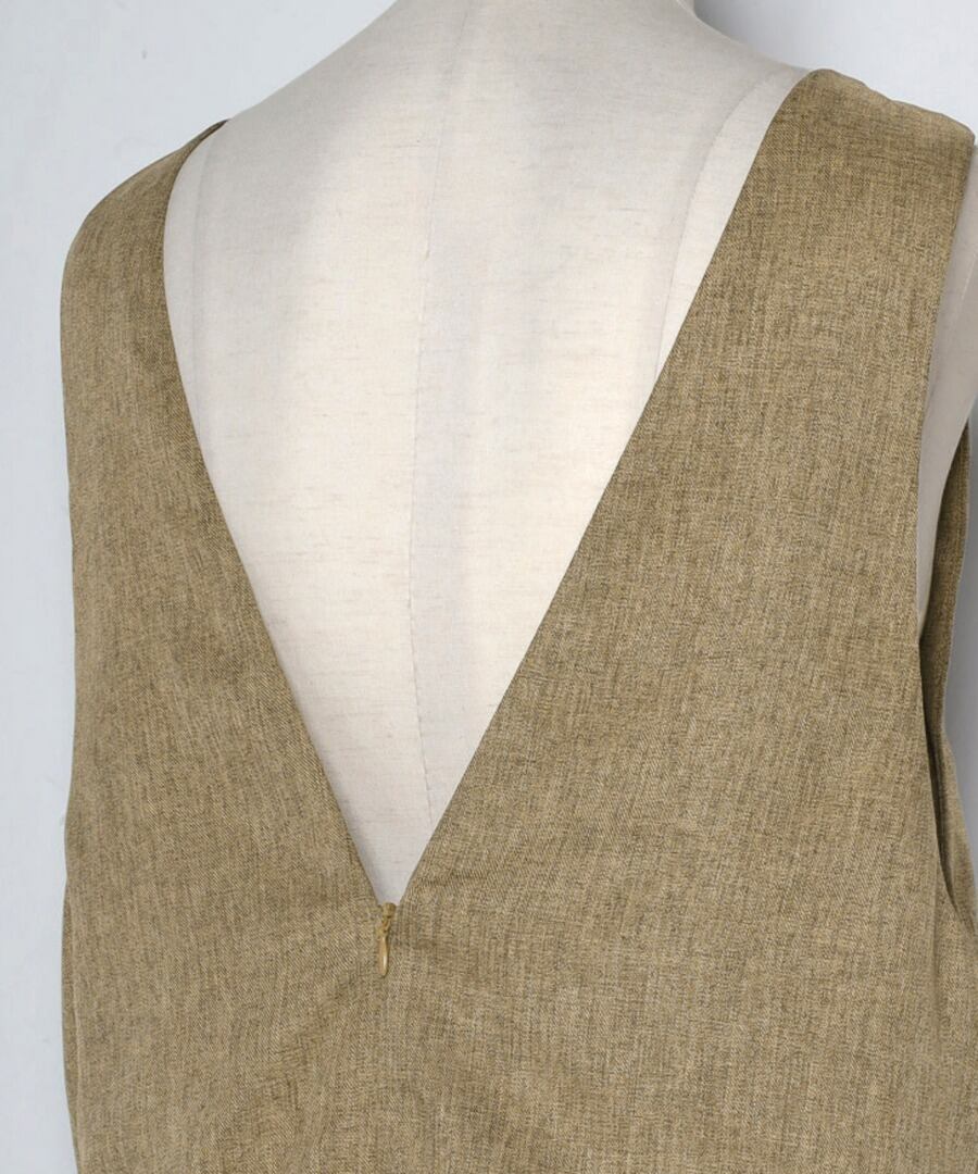 バックスタイルは大きく開いたVネックで、バッククロスのインナーを見せると大人可愛いスタイルでおすすめ◎