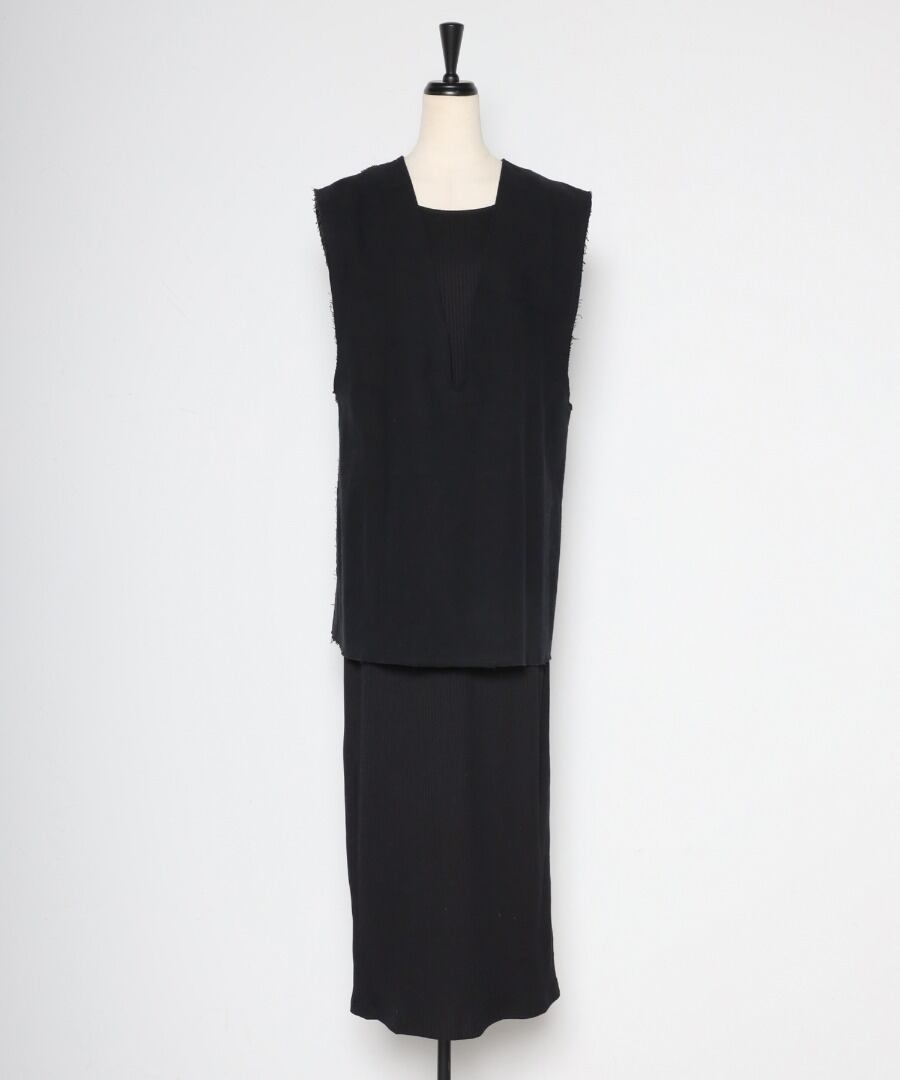 リネン混のVネックベストとリブワンピースがセットになった、嬉しいセットアイテム。