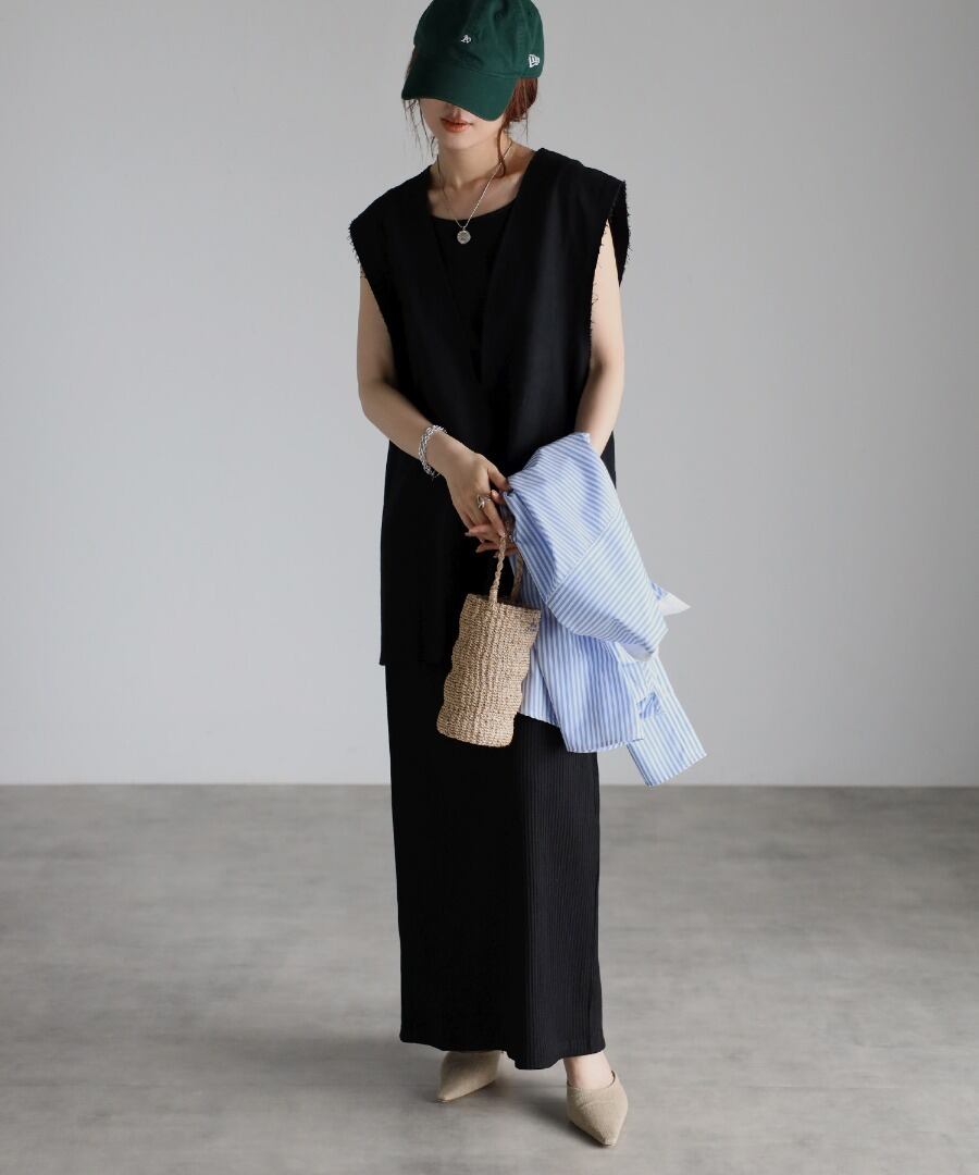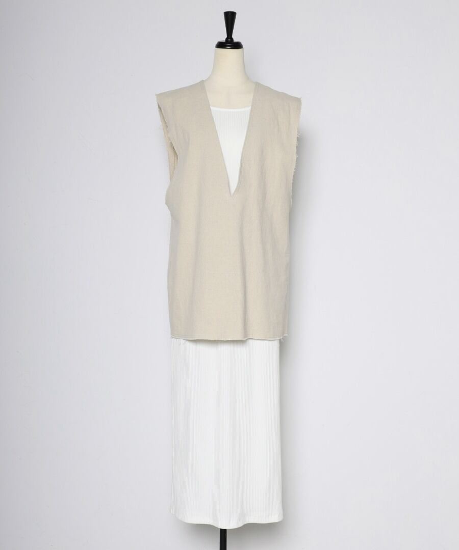 リネン混ディープVベスト×リブタンクワンピース【s-40023】.