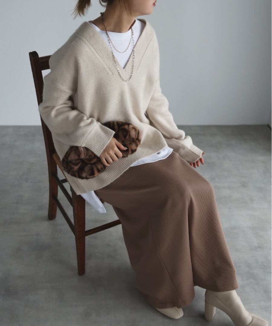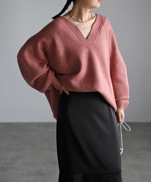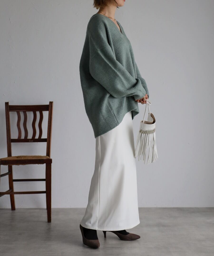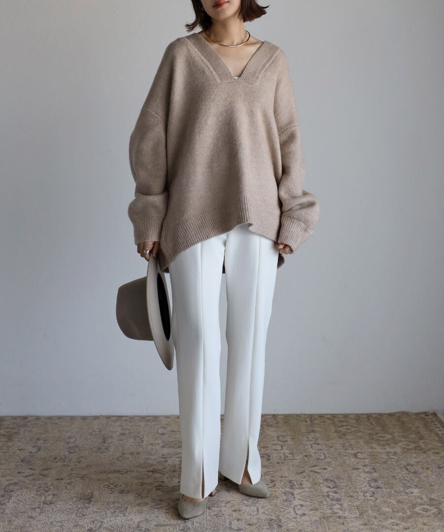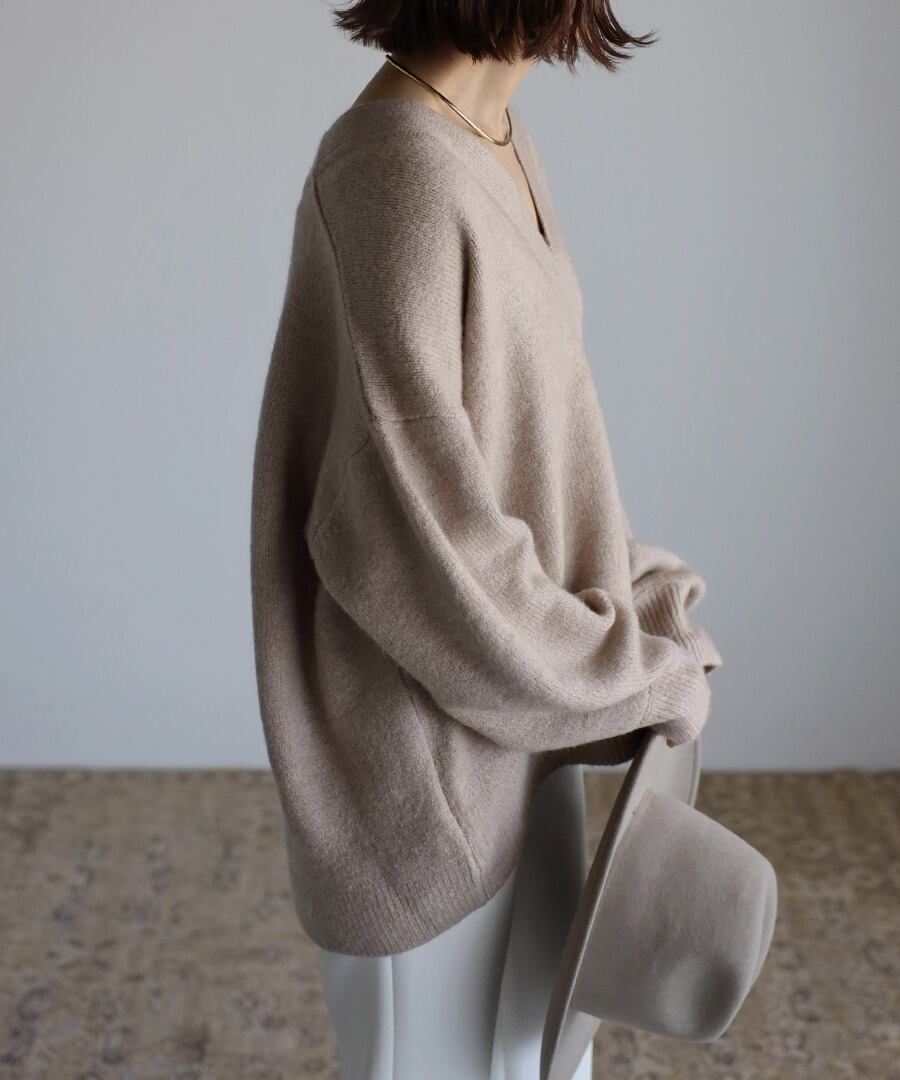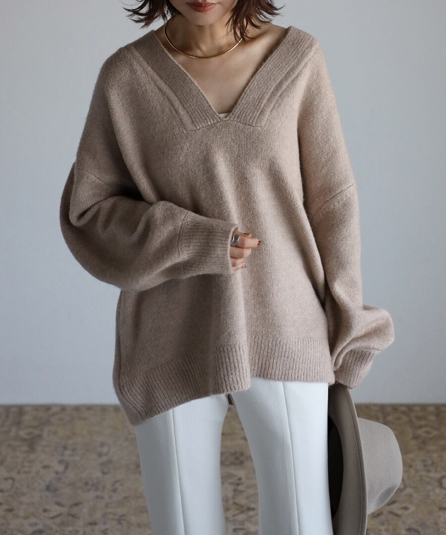 深めのVネック開きでオーバーサイズの抜け感のあるシルエット。