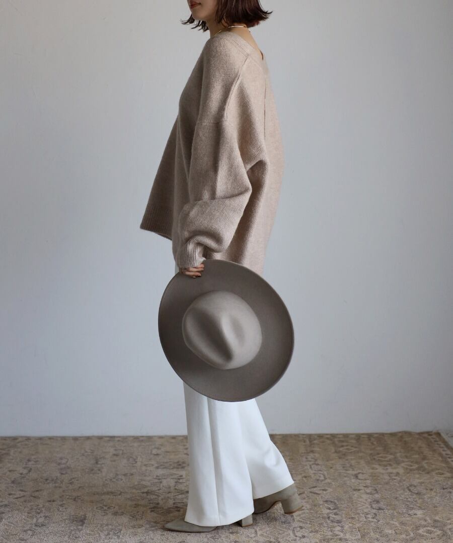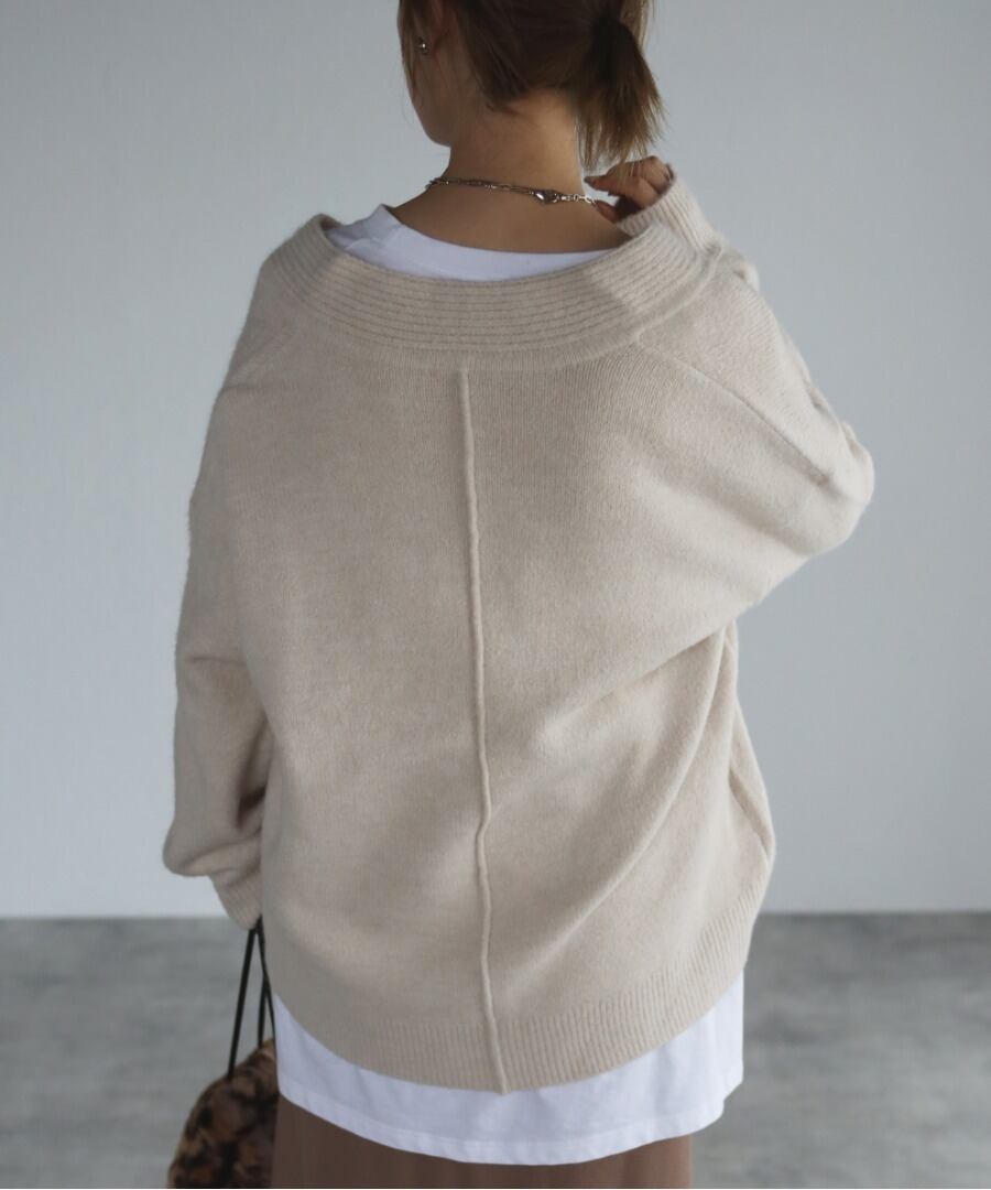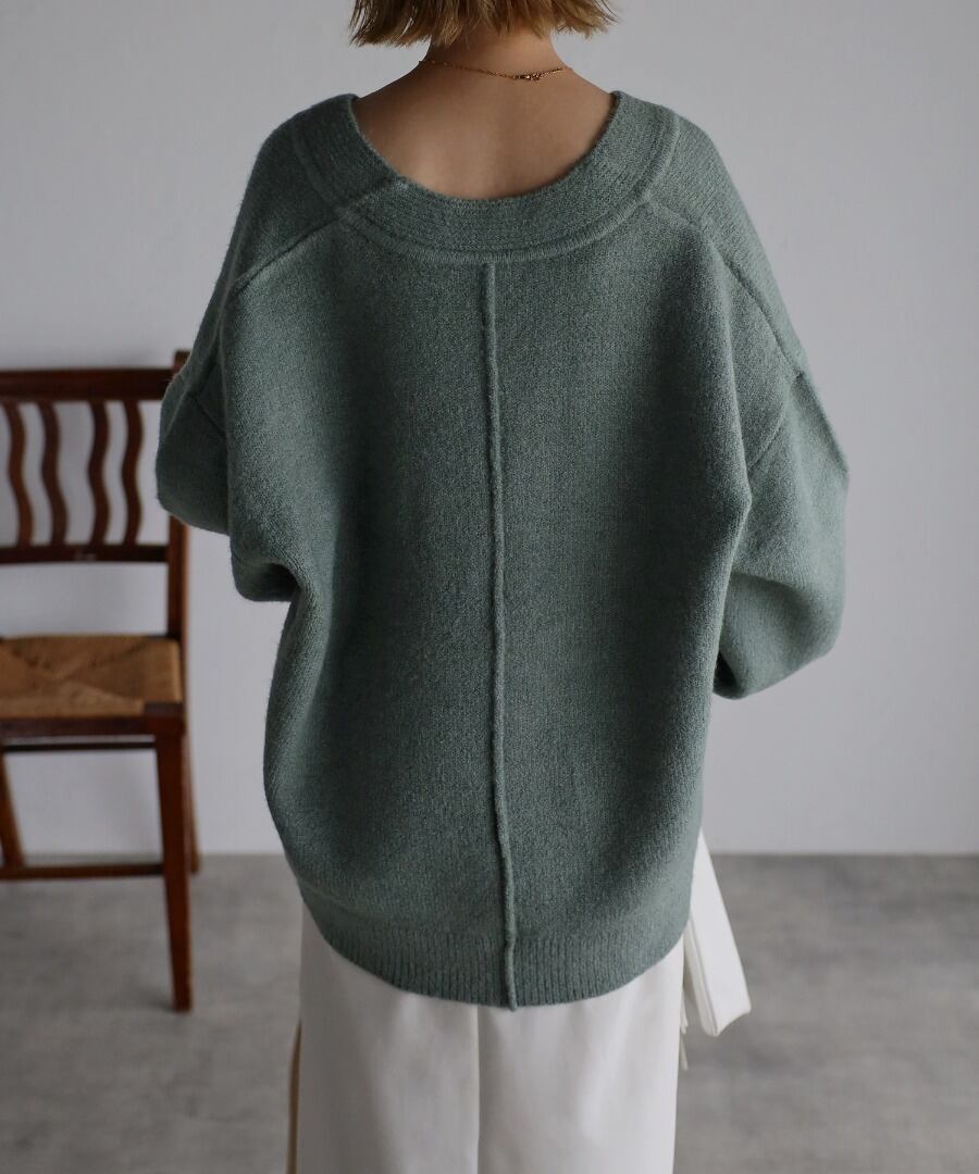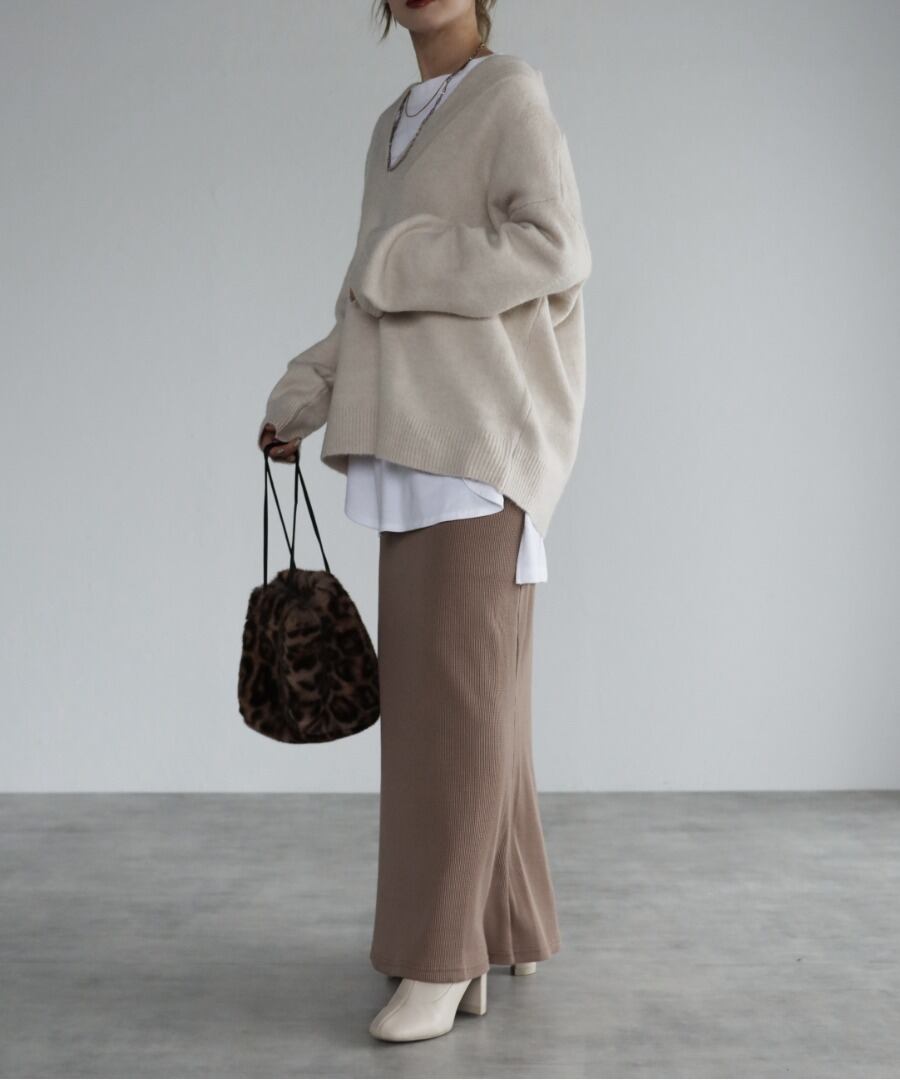 深めのVネック開きでオーバーサイズの抜け感のあるシルエット。