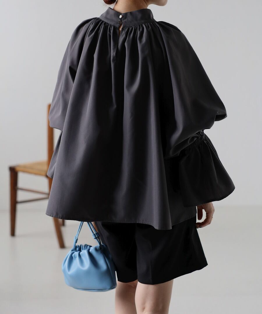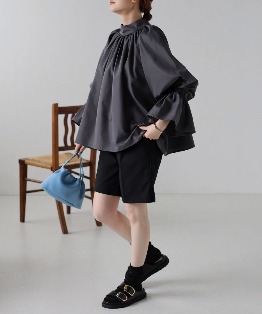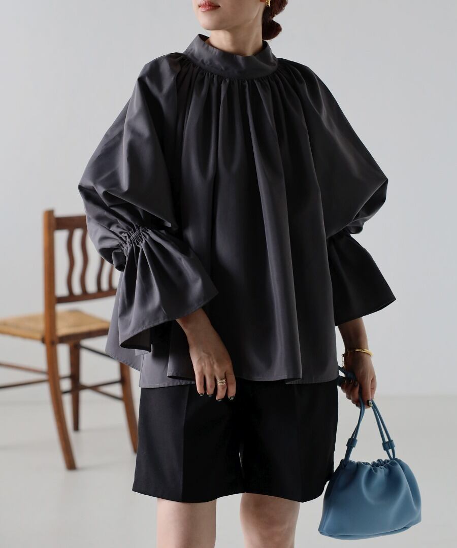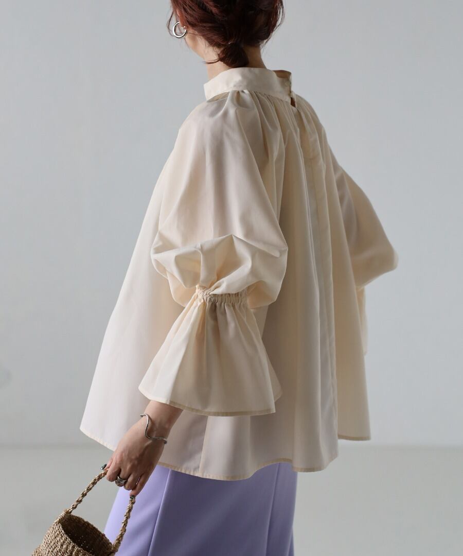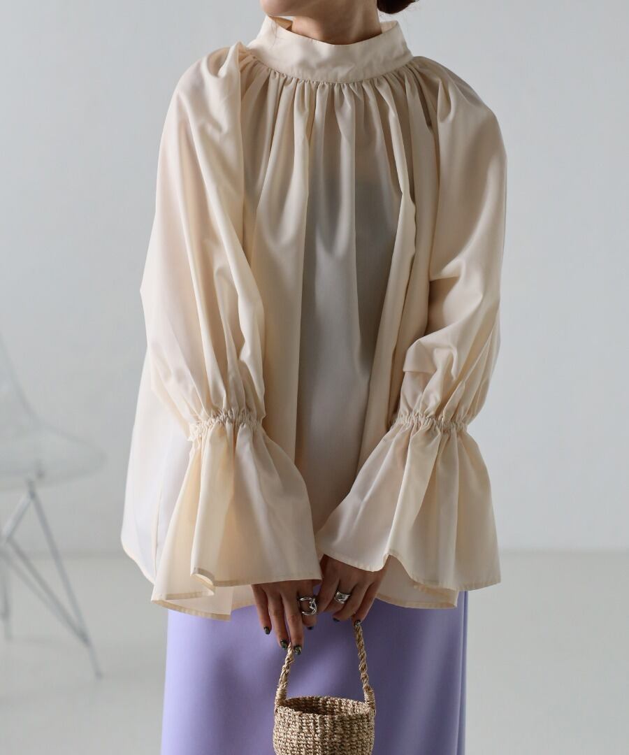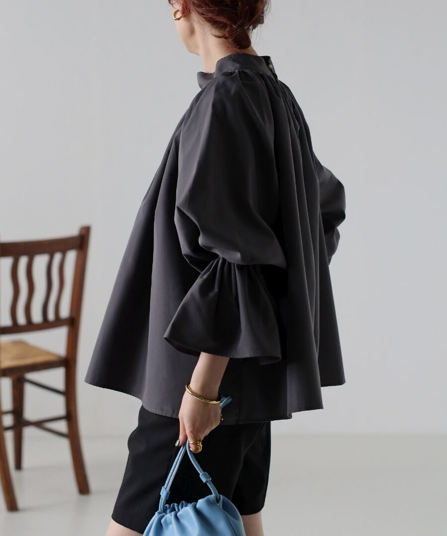 たっぷりのギャザーが大人フェミニン。キャンディースリーブが魅力のブラウス