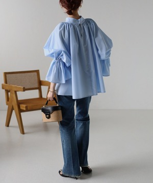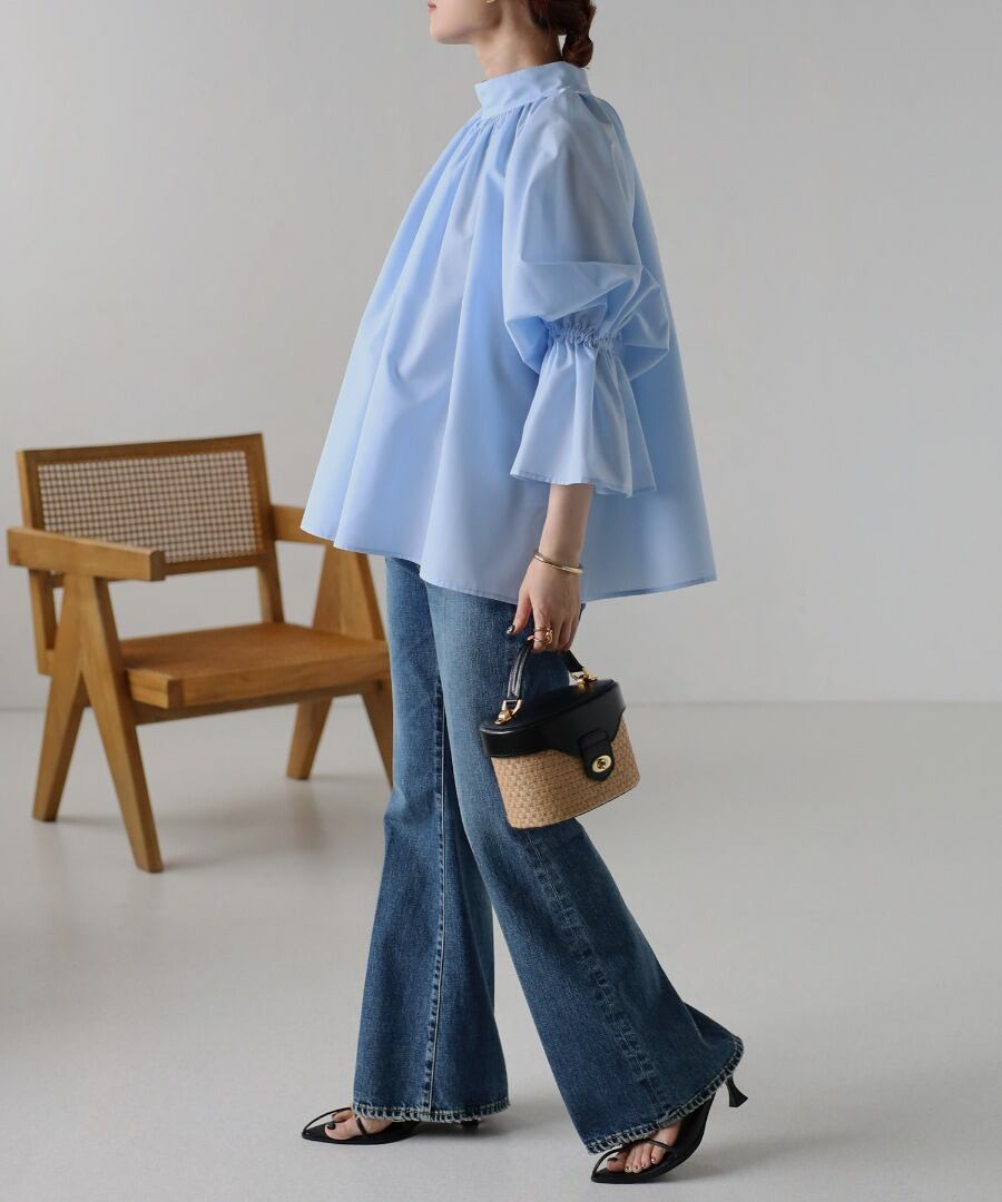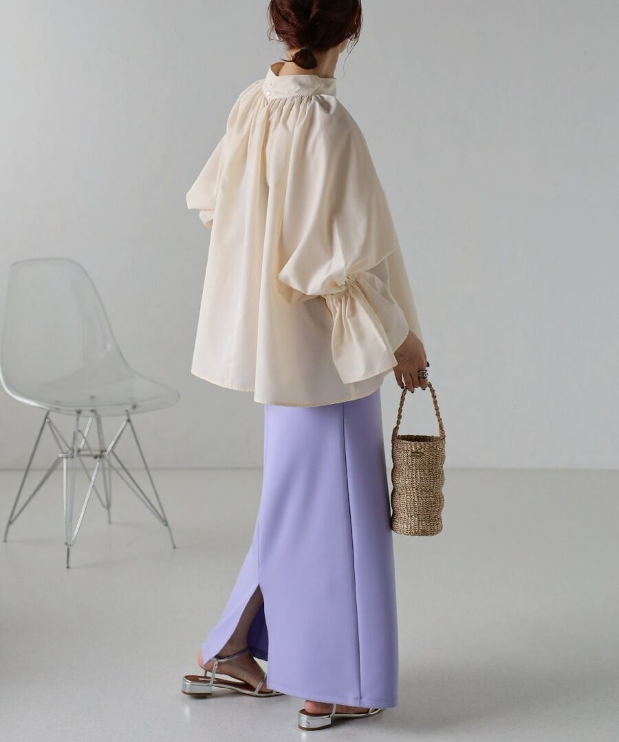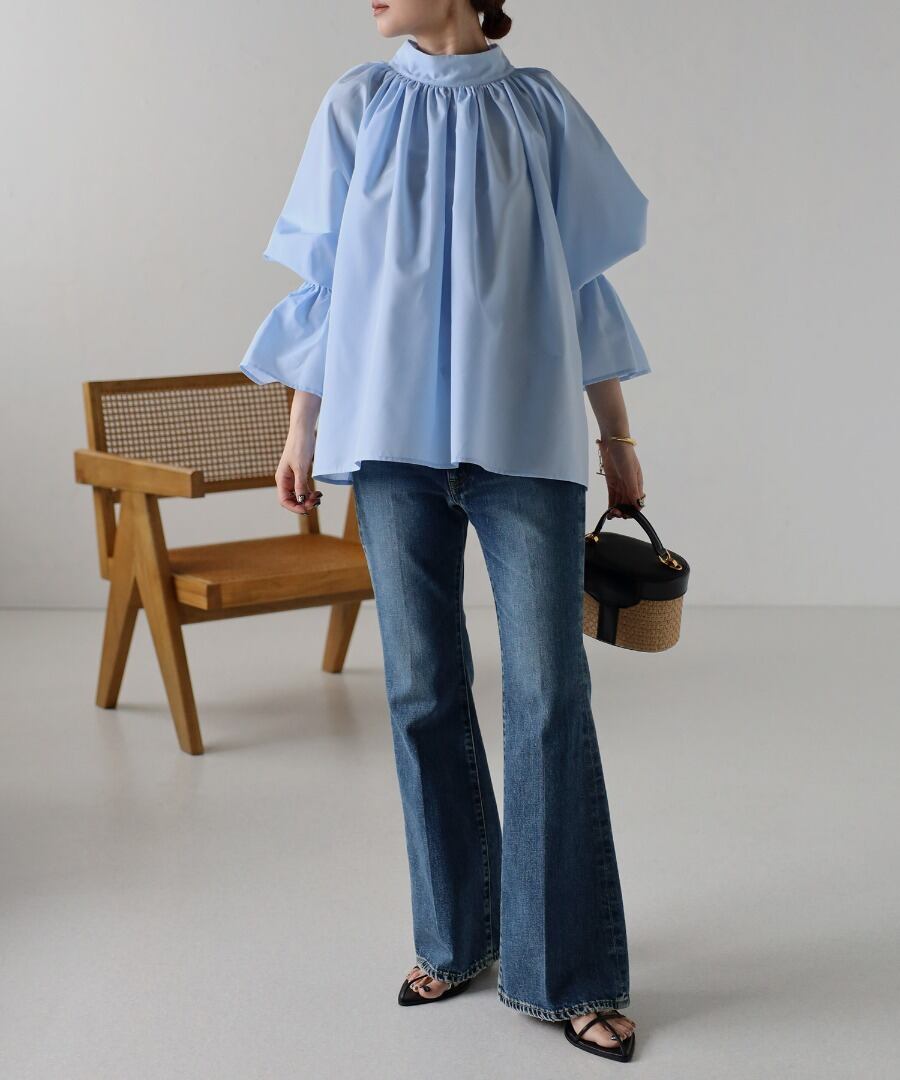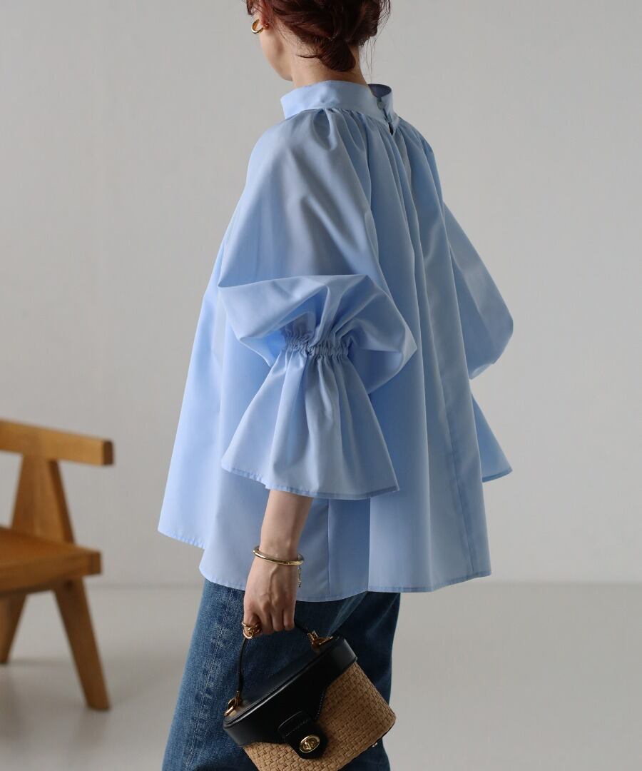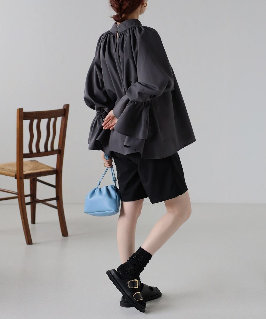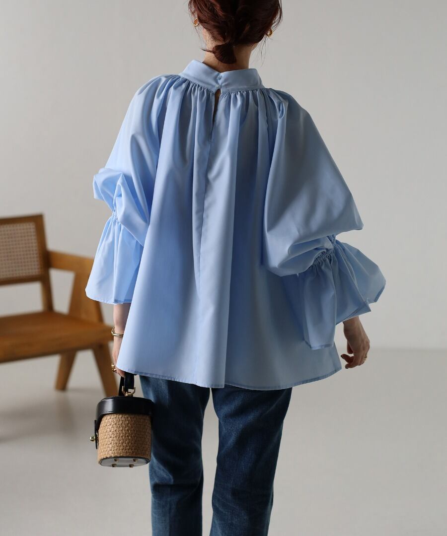 たっぷりのギャザーが大人フェミニン。キャンディースリーブが魅力のブラウス