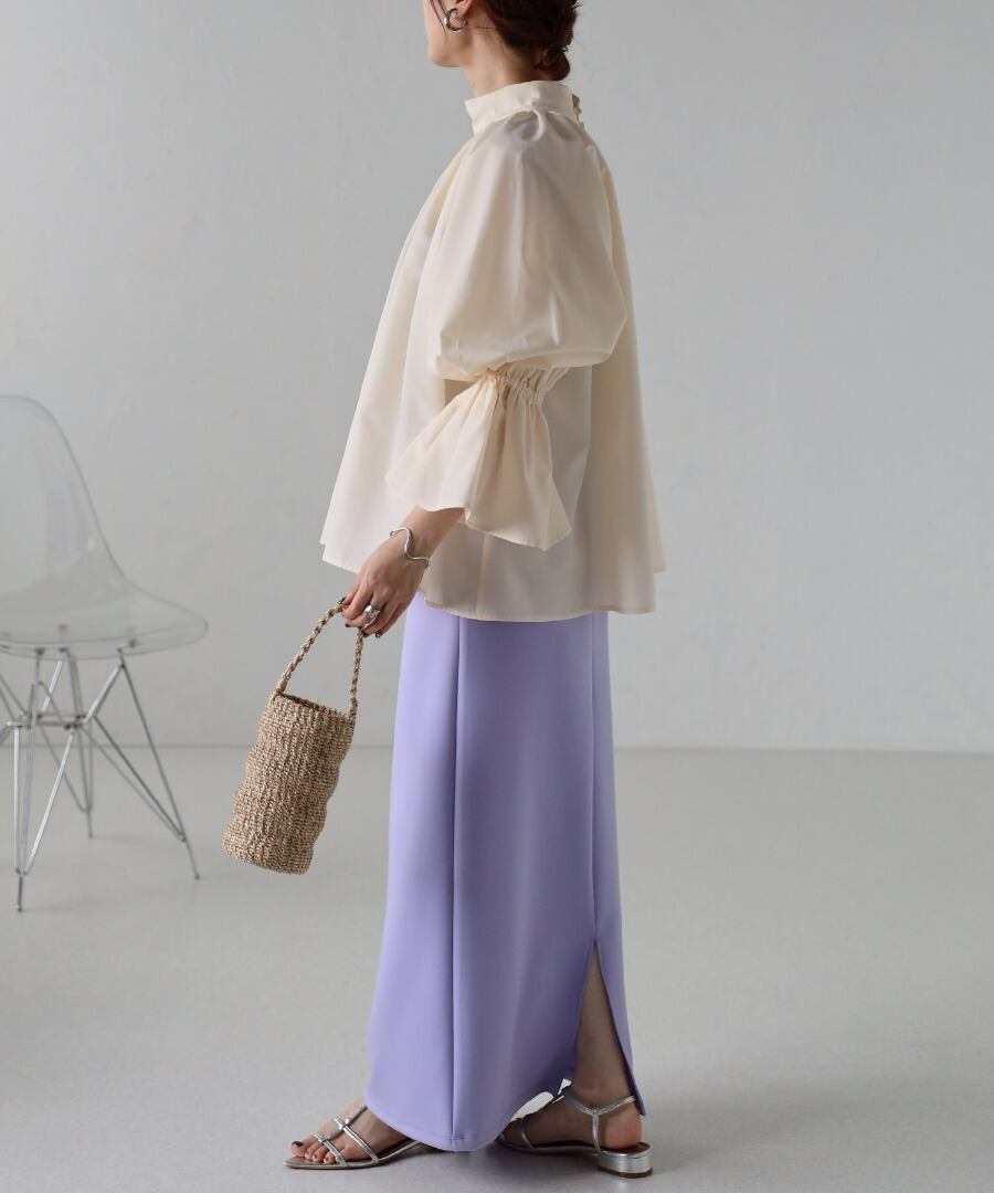 バンドカラーとキャンディスリーブでトレンド感のある大人可愛いアイテムです。