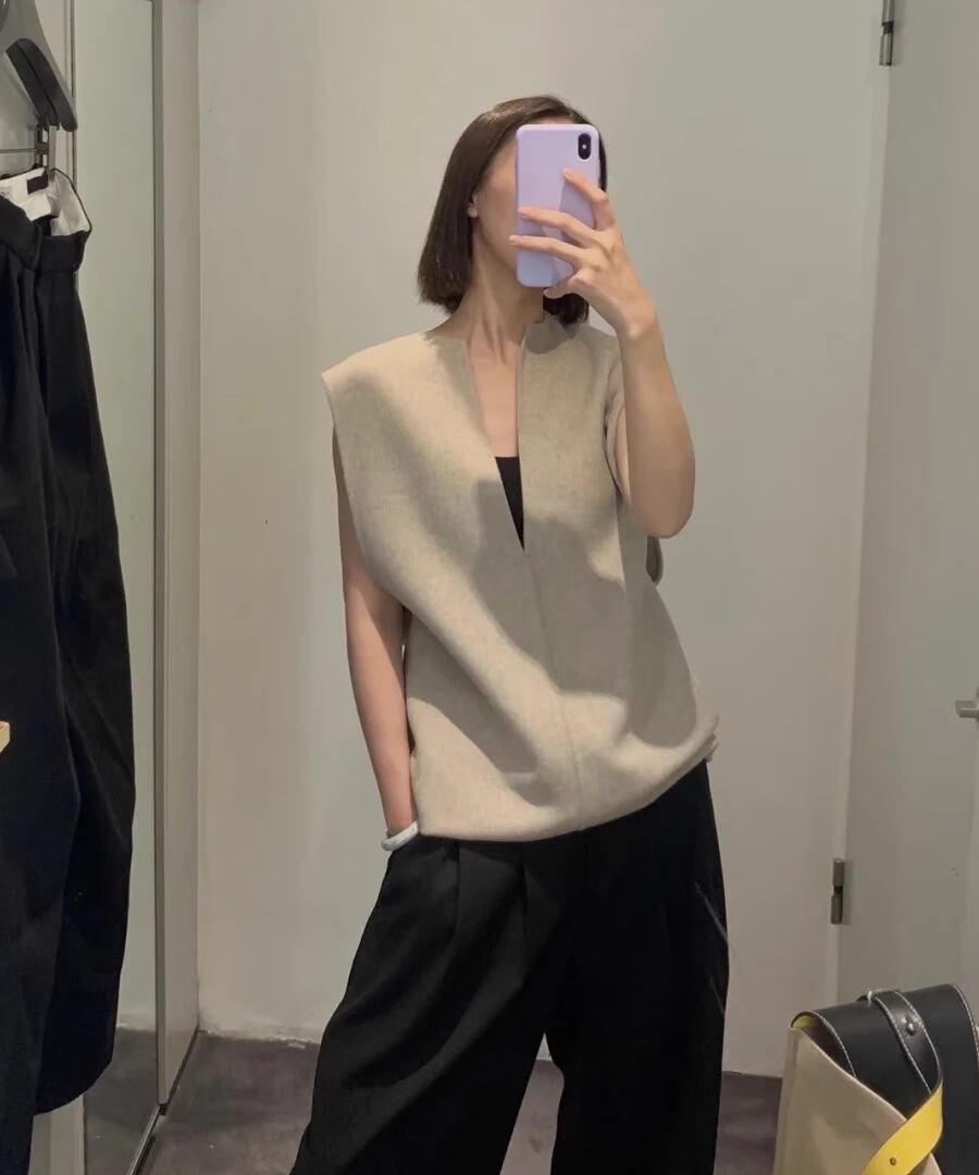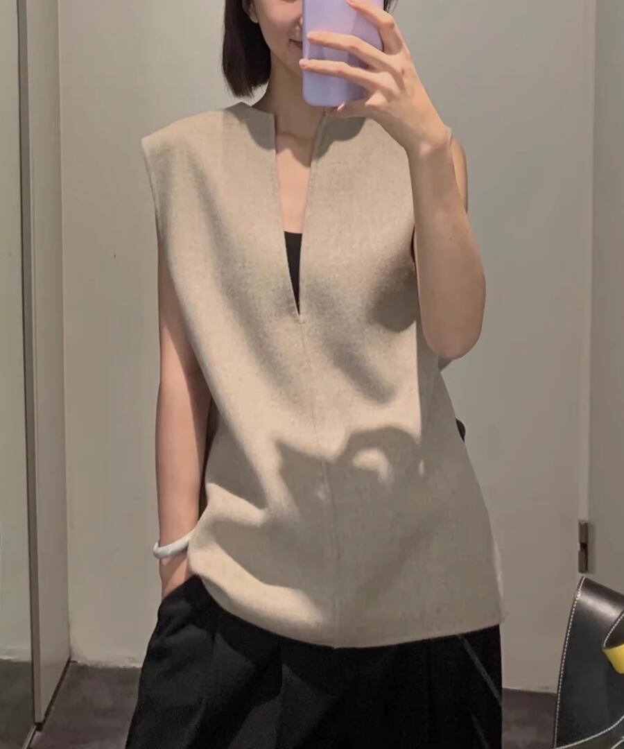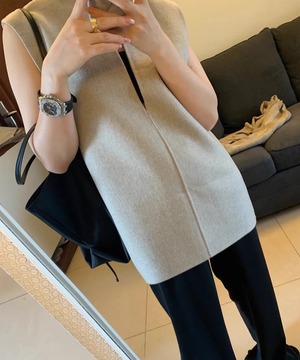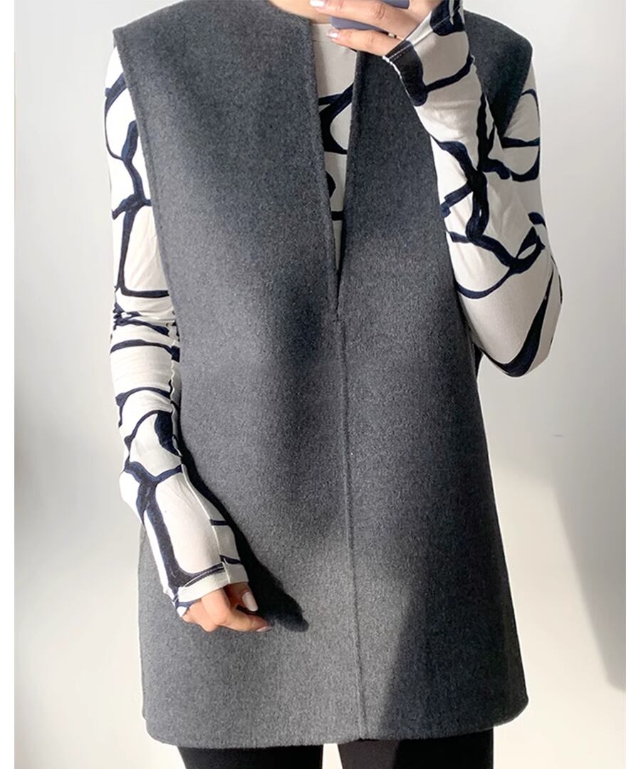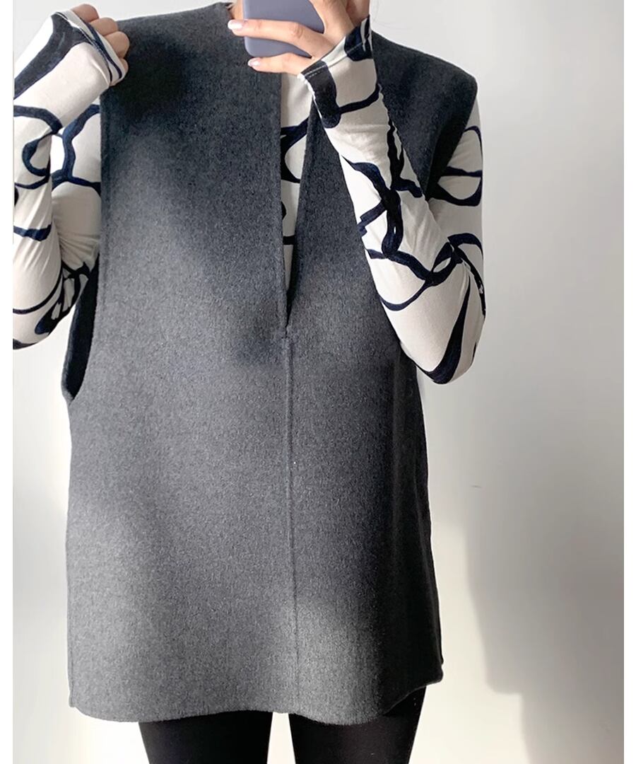 ウール素材のVネックベストは、寒い季節にピッタリのアイテムです。